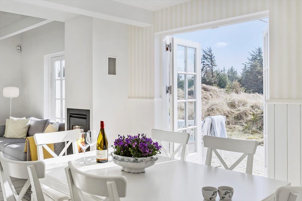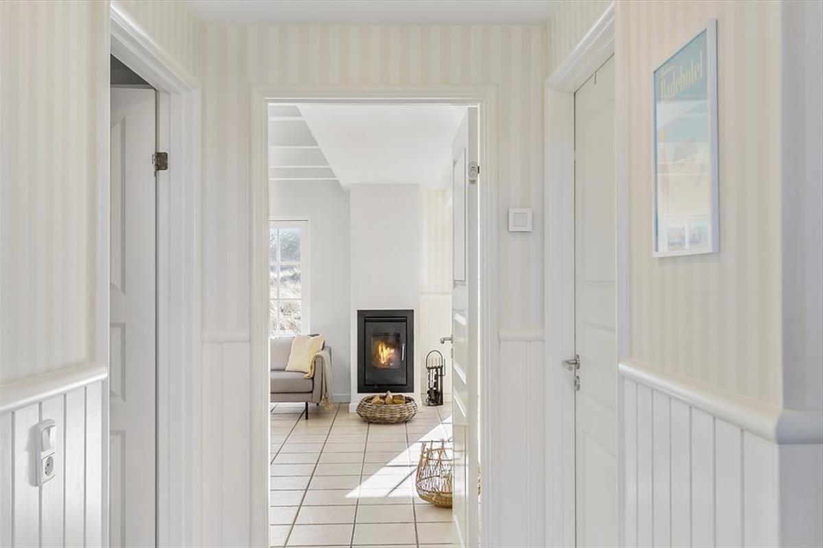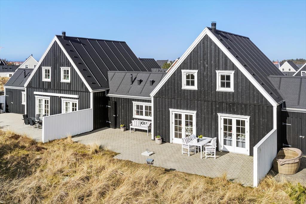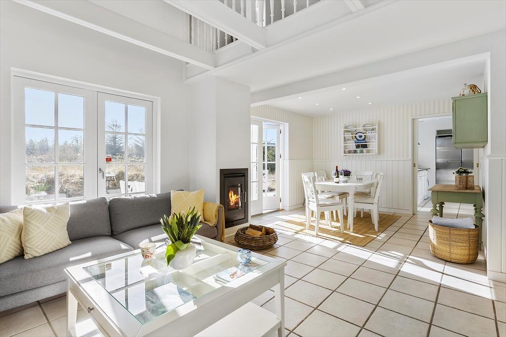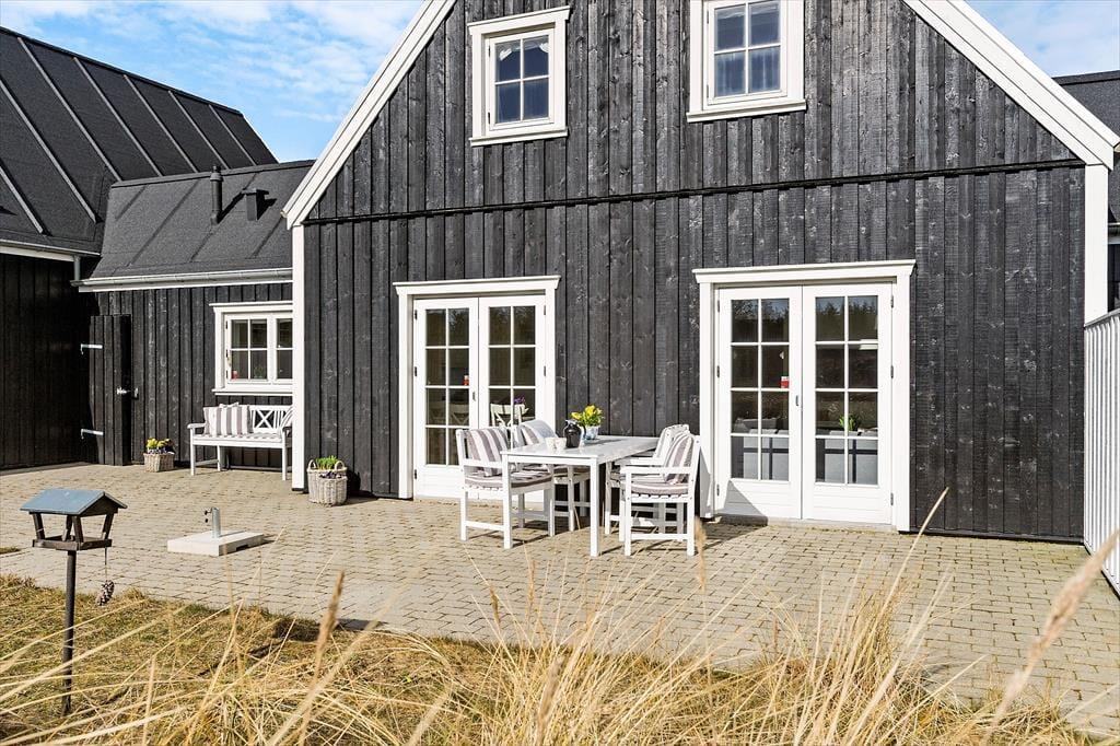 Im Inneren, hinter der schwarz gestrichenen Holzfassade, erwartet Sie ein helles und einladendes Ferienhaus, das sechs Erwachsenen und zwei Kindern Platz bietet. Die Einrichtung wurde sorgfältig ausgewählt, damit Sie sich wie in einem eleganten Hotel am Meer fühlen - aber hier haben Sie 118 Quadratmeter ganz für sich allein! Und der Komfort ist erstklassig, mit allem, was dazugehört: Waschmaschine, schnelles Wi-Fi, zwei Flachbildfernseher und eine voll ausgestattete Küche im Haus. Im größeren der beiden Bäder des Ferienhauses, welches im Erdgeschoss liegt, befinden sich der Whirlpool und eine Sauna. Der untere Bereich ist außerdem mit der bereits erwähnten Küche, einem Schlafzimmer und einem schönen Wohnzimmer mit eingebautem Kamin ausgestattet. Vom Wohnzimmer mit der hohen Decke aus haben Sie direkten Zugang zur Sonnenterrasse. Über die Treppe gelangen Sie in den ersten Stock, wo ein kleineres Wohnzimmer mit Schlafsofa, zwei Schlafzimmer und das zweite Badezimmer auf Sie warten.