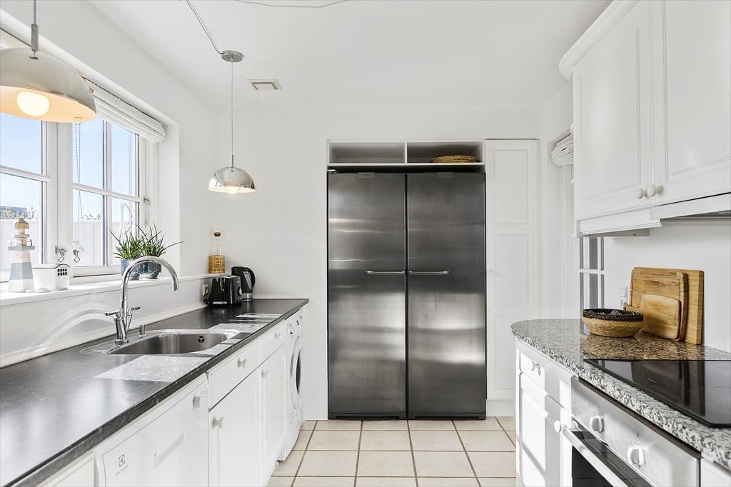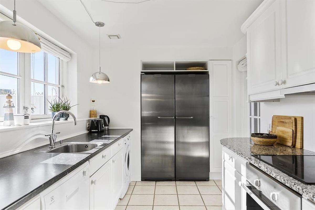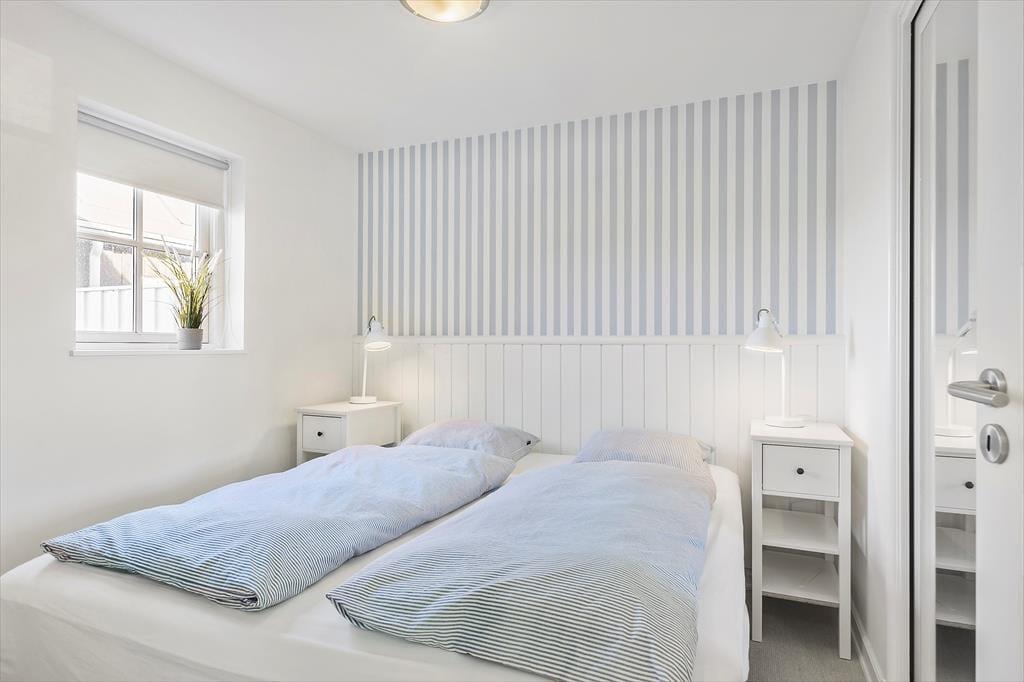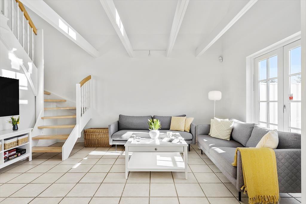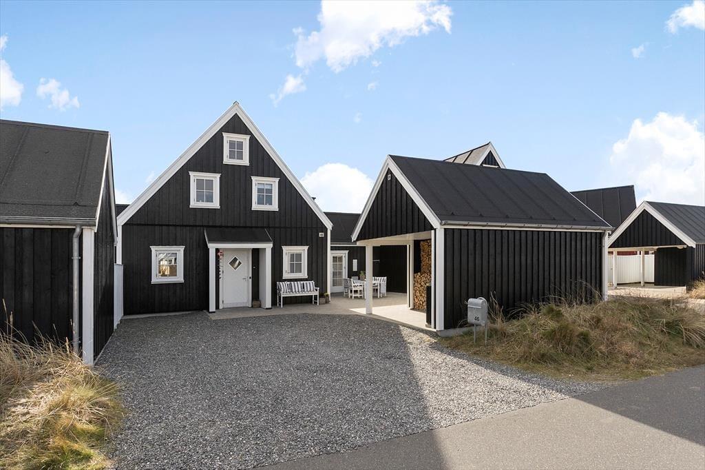 Im Inneren, hinter der schwarz gestrichenen Holzfassade, erwartet Sie ein helles und einladendes Ferienhaus, das sechs Erwachsenen und zwei Kindern Platz bietet. Die Einrichtung wurde sorgfältig ausgewählt, damit Sie sich wie in einem eleganten Hotel am Meer fühlen - aber hier haben Sie 118 Quadratmeter ganz für sich allein! Und der Komfort ist erstklassig, mit allem, was dazugehört: Waschmaschine, schnelles Wi-Fi, zwei Flachbildfernseher und eine voll ausgestattete Küche im Haus. Im größeren der beiden Bäder des Ferienhauses, welches im Erdgeschoss liegt, befinden sich der Whirlpool und eine Sauna. Der untere Bereich ist außerdem mit der bereits erwähnten Küche, einem Schlafzimmer und einem schönen Wohnzimmer mit eingebautem Kamin ausgestattet. Vom Wohnzimmer mit der hohen Decke aus haben Sie direkten Zugang zur Sonnenterrasse. Über die Treppe gelangen Sie in den ersten Stock, wo ein kleineres Wohnzimmer mit Schlafsofa, zwei Schlafzimmer und das zweite Badezimmer auf Sie warten.