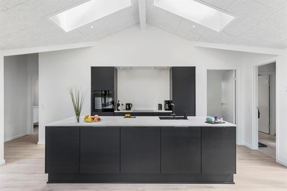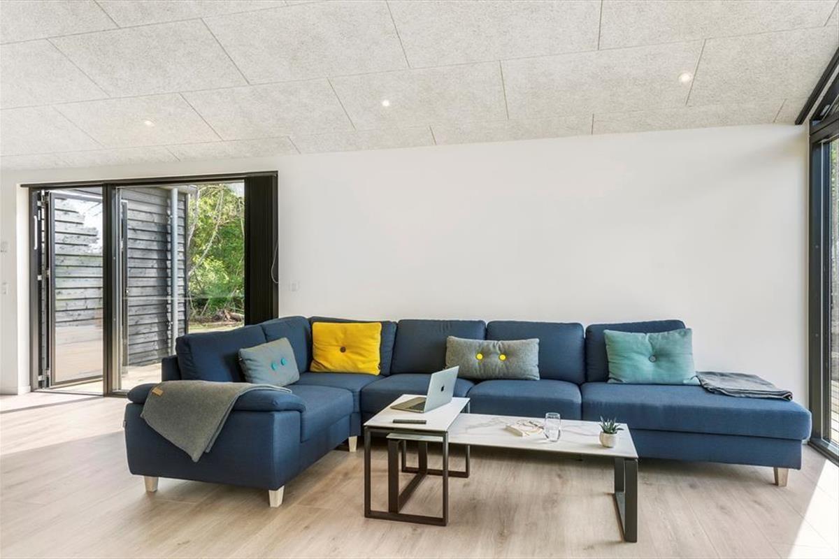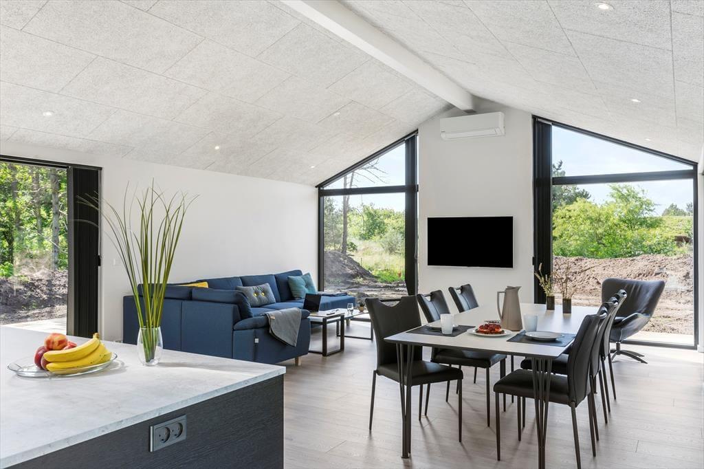Das Ferienhaus ist ein echter Qualitätsbau mit 116 m² Wohnfläche. Erbaut im Jahr 2023, mit einer dunklen Holzfassade und Dachbegrünung, ist die Atmosphäre im Inneren hell und luftig, mit hohen Decken, schönen Böden und großen Fenstern. Mit drei Schlafzimmern und zwei Bädern ist die Raumaufteilung perfekt für sechs Personen, und natürlich gibt es auch ein Wohnzimmer und eine Küche, die zusammen das stilvoll eingerichtete Herz des Hauses bilden. Hier können Sie gemeinsam kochen, am Esstisch Brettspiele spielen oder sich auf der Sofaecke entspannen - vielleicht mit einem guten Film auf dem Flachbildfernseher, der sowohl über Kabelfernsehen als auch über Chromecast verfügt.