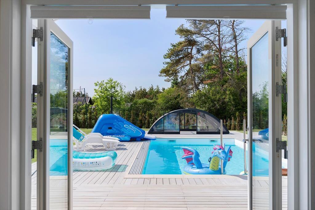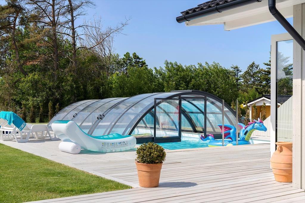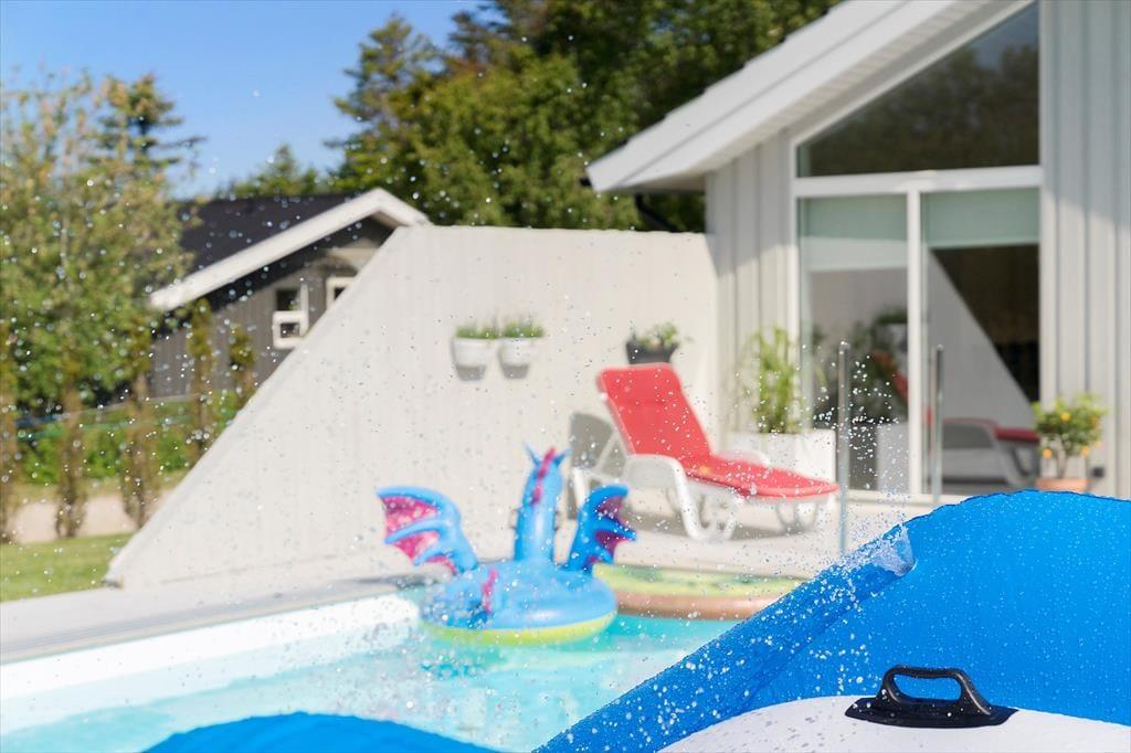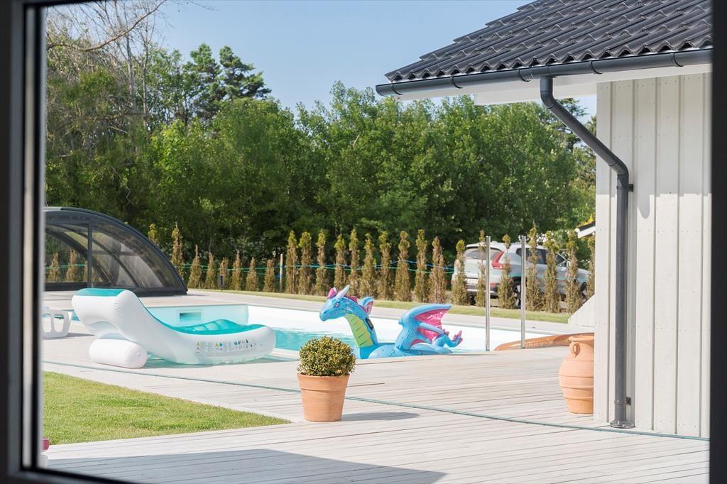 Das 1.259 m² große Grundstück verfügt über all die Dinge, die Sie für vergnügte, entspannte Urlaubstage benötigen. Der schöne Pool bietet bestes Badevergnügen. Er ist beheizt, sodass sich die Badesaison verlängert. Rund um den Pool laden Liegestühle und gepflasterte Bereiche zu kühlen Erfrischungen und zum ein oder anderen Nickerchen an der Wasserkante ein. Die Fußballspieler der Familie dürfen sich auf einen Rebounder und auf Fußballtore inklusive Sicherheitsnetz freuen. Zwischen dem Ferienhaus und dem Nebengebäude erwartet Sie ein herrliches Terrassenareal, auf dem Sie gemütliche Stunden und gesellige Grillabende verleben.