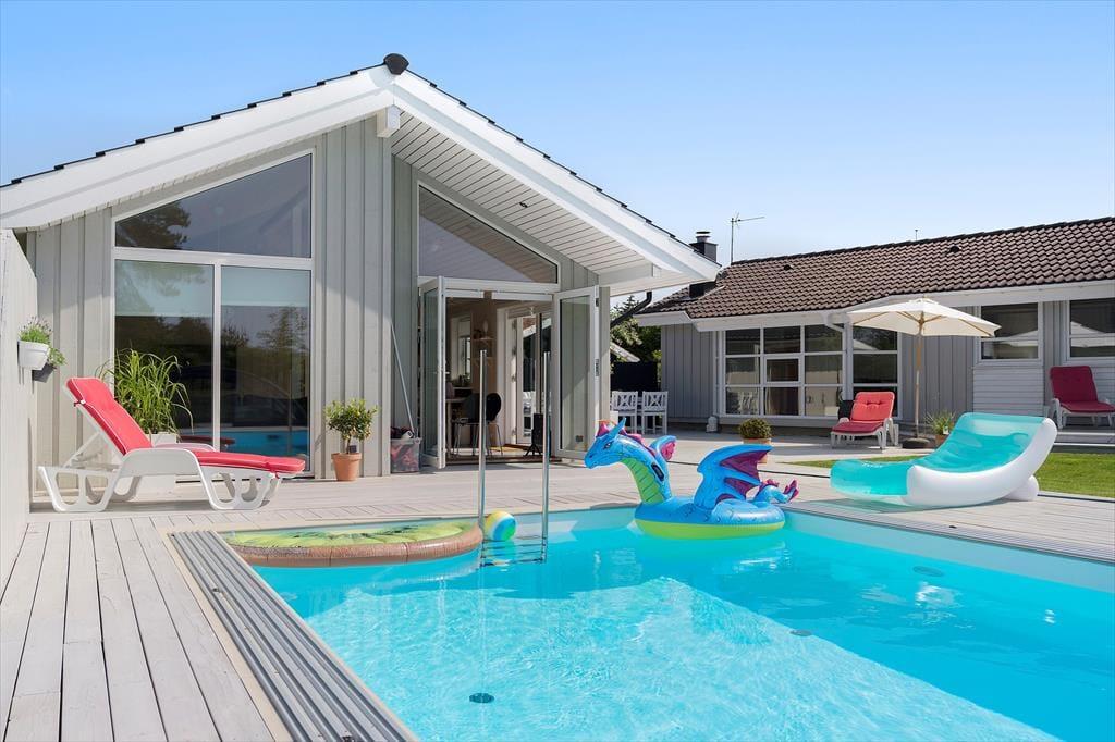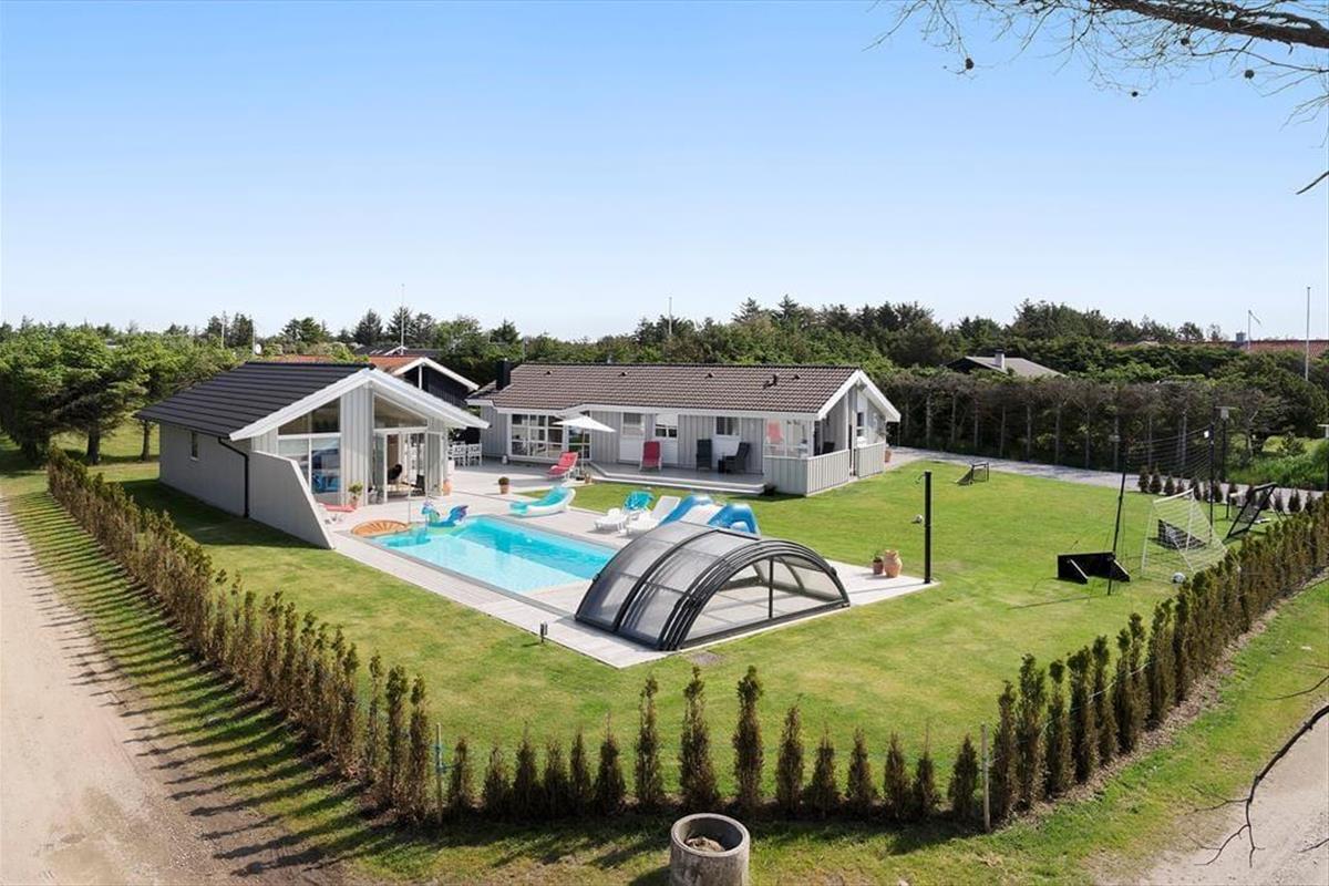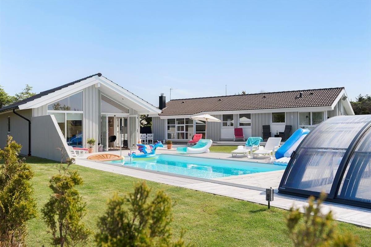 Park Alle 5 ist ein Paradies für diejenigen, die von Urlaubstagen träumen, die mit gemeinsamen Spielen, Wellness und gemütlichen Stunden im Familien- und Freundeskreis gespickt sind. Das zentral in Blokhus gelegene Mietobjekt bietet Platz für zehn Erwachsene und zwei Kinder, die sich auf ein schön renoviertes Ferienhaus und auf ein neu errichtetes Nebengebäude verteilen. Wellnessflair versprühen der Whirlpool und die Sauna sowie der tolle, beheizte Pool im Garten.