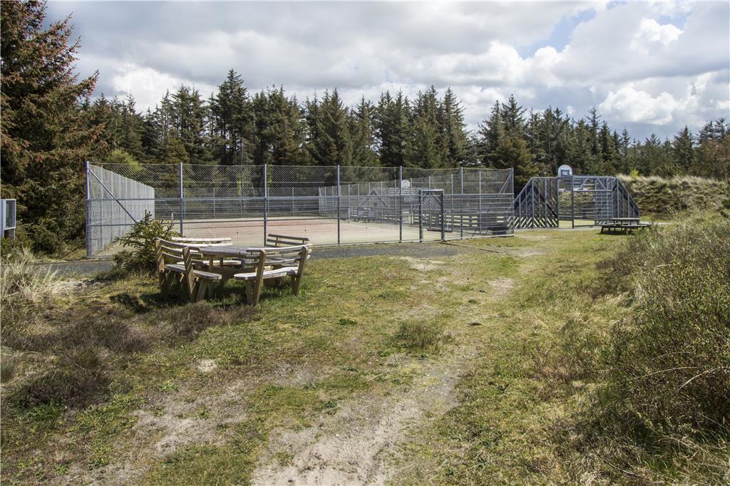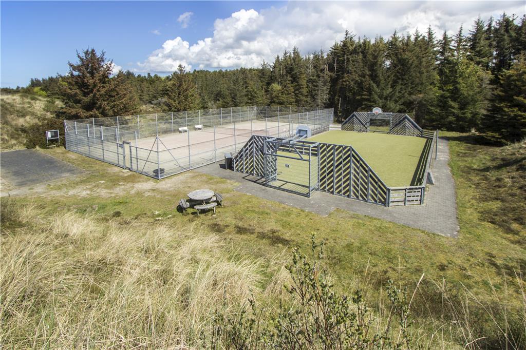 Zur Anlage gehören ein gemeinschaftlicher nutzbarer Tennisplatz, ein Multifunktionsplatz und ein großer Spielplatz. An das Ferienhaus mit zwei Stockwerken schließen zwei große Terrasse. Die nach Südwesten gerichtete Terrasse verfügt über moderne Gartenmöbel und einen Grill und lädt zu geselligen Runden im Kreise Ihrer Lieben ein.
