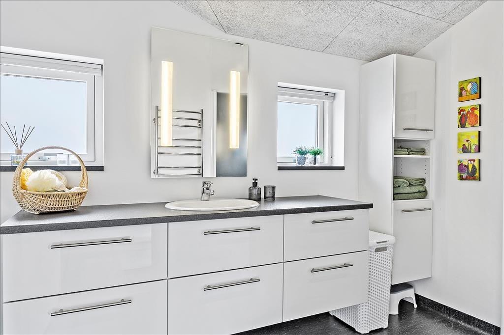 Ferienhaus auf einem fantastischen, schönen Naturgrundstück in einem ruhigen und attraktiven Ferienhausgebiet bei Blokhus. Nahe Faarup Sommerland. Terrassen umgeben alle Seiten dieses renovierten Urlaubsdomizils. Mit seiner tollen Innenausstattung und dem ansprechenden Außenareal ist es die ideale Wahl für Ihren nächsten Urlaub in Nordjütland.