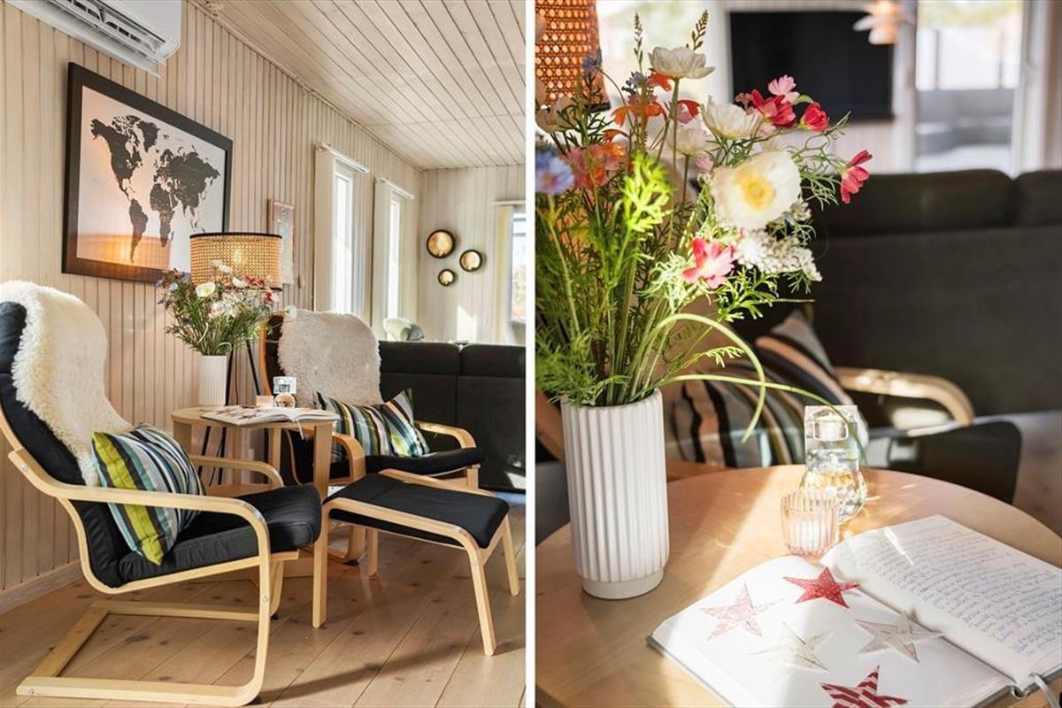 Das 120 m² große Ferienhaus wurde im Laufe der Jahre stets gehegt und gepflegt. Da es zuletzt in 2022 einer Renovierung unterzogen wurde, erwartet Sie ein angenehm helles und ansprechendes Ambiente. Im Zuge der letzten Renovierung wurde das Haus um ein weiteres Zimmer mit einem separaten Eingang erweitert. Das Zimmer, das über die Terrasse erreichbar ist, fungiert als zusätzlicher Schlafplatz und als friedliche Rückzugmöglichkeit am Tag. Das Ferienhaus selber beinhaltet drei Schlafzimmer und ein stilvolles neurenoviertes Badezimmer. Hinzu gesellt sich eine offene Kombination aus Küche und Wohnraum. Im Wohnraum befindet sich ein Kaminofen, eine ansprechende Möblierung und ein Flachbildschirm mit Apple-TV. Die offene Wohnlösung bedingt, dass Sie selbst während der Zubereitung der Urlaubsmahlzeiten weiter am Familienleben teilnehmen können. Dieses Urlaubsdomizil bildet einen gemütlichen und stimmungsvollen Rahmen für entspannte Urlaubstage.