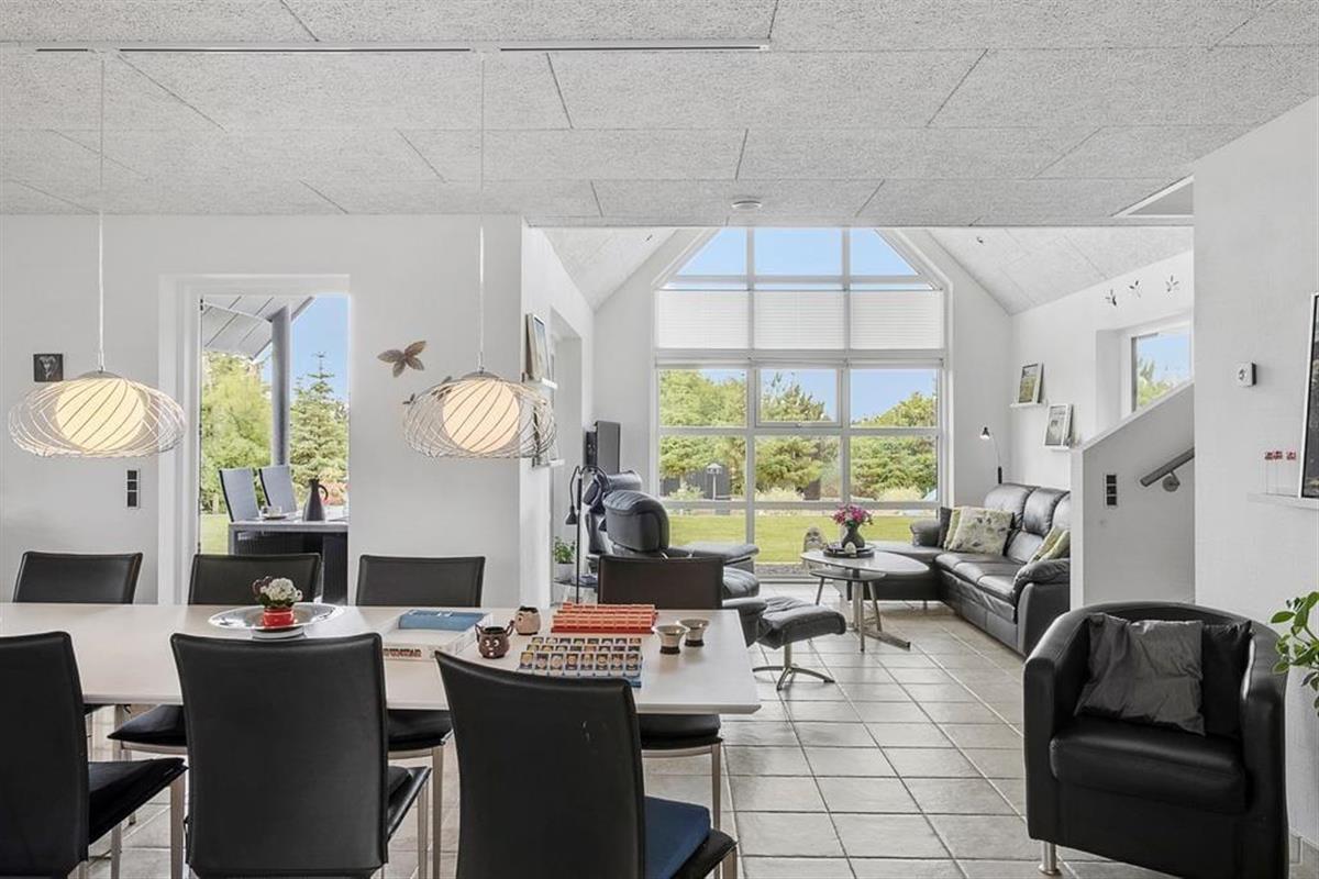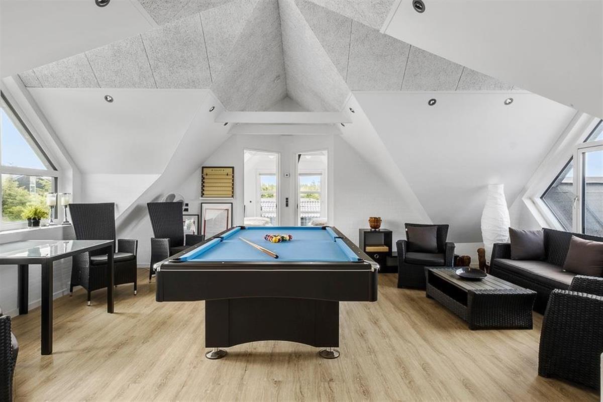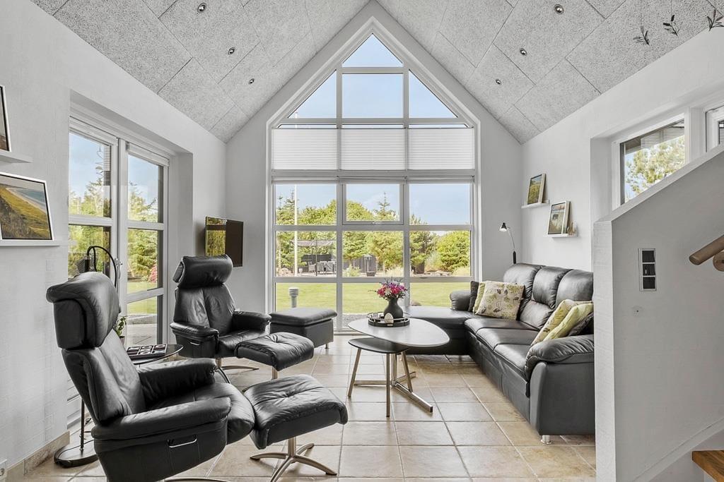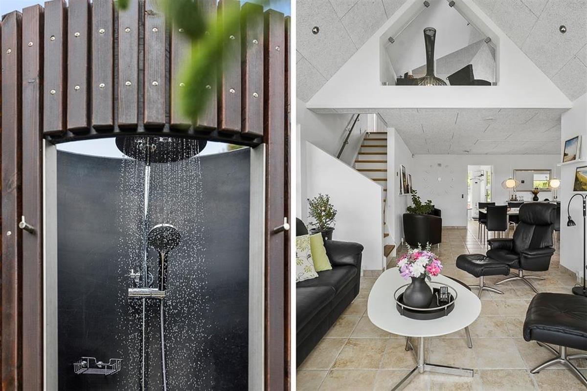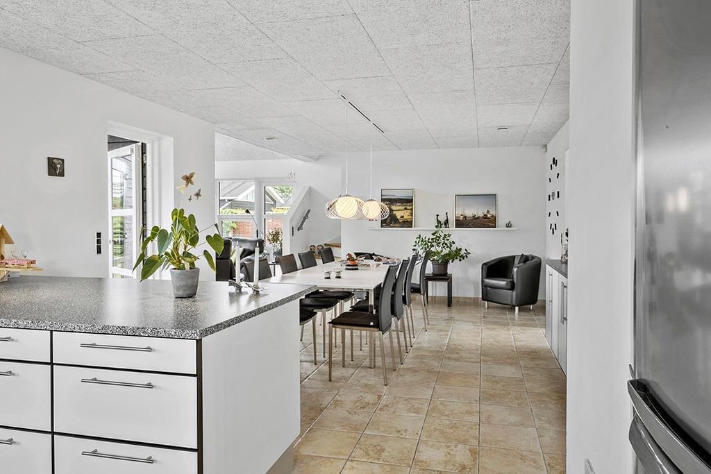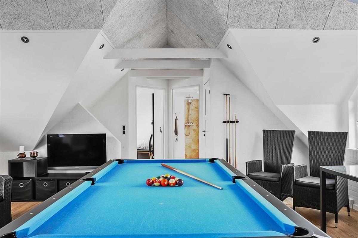 Das Ferienhaus wurde 2012 erbaut, und alles sowohl Innen wie auch Außen lässt nichts zu wünschen übrig. Die grossen Fensterfronten sorgen für reichlich viel natürliches Licht, und da das Wohnzimmer über ein offenes Dachgeschoss verfügt, gibt es sowohl zum Himmel wie auch zum Garten eine schöne Aussicht. Im Erdgeschoss bekommen Sie ein großes, zusammenhängendes Aufenthaltsmilieu mit Küche und Wohnzimmer in offener Verbindung – perfekt für das gemütliche Zusammensein in den Ferien. Leckere Qualitätsmöbel tragen zu der exklusiven Stimmung im Ferienhaus bei, und als extra Bonus gibt es einen Billardraum in der ersten Etage mit prächtigem Lichteinfall. An Schlafzimmern gibt es drei, eines im Erdgeschoss und zwei im ersten Stock, hierzu kommen zwei schöne Badezimmer und ein Flur mit Waschmaschine.