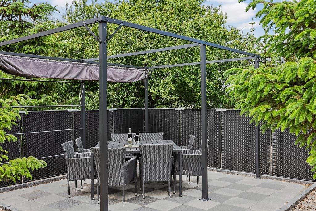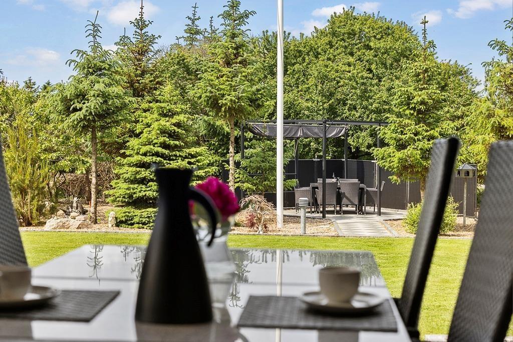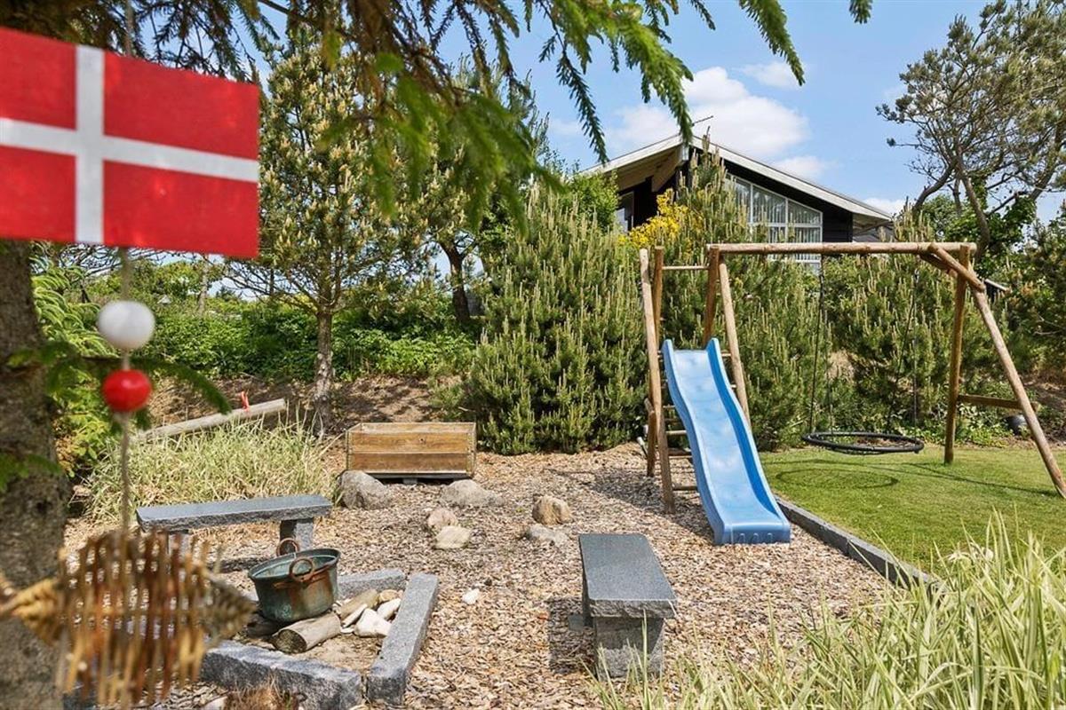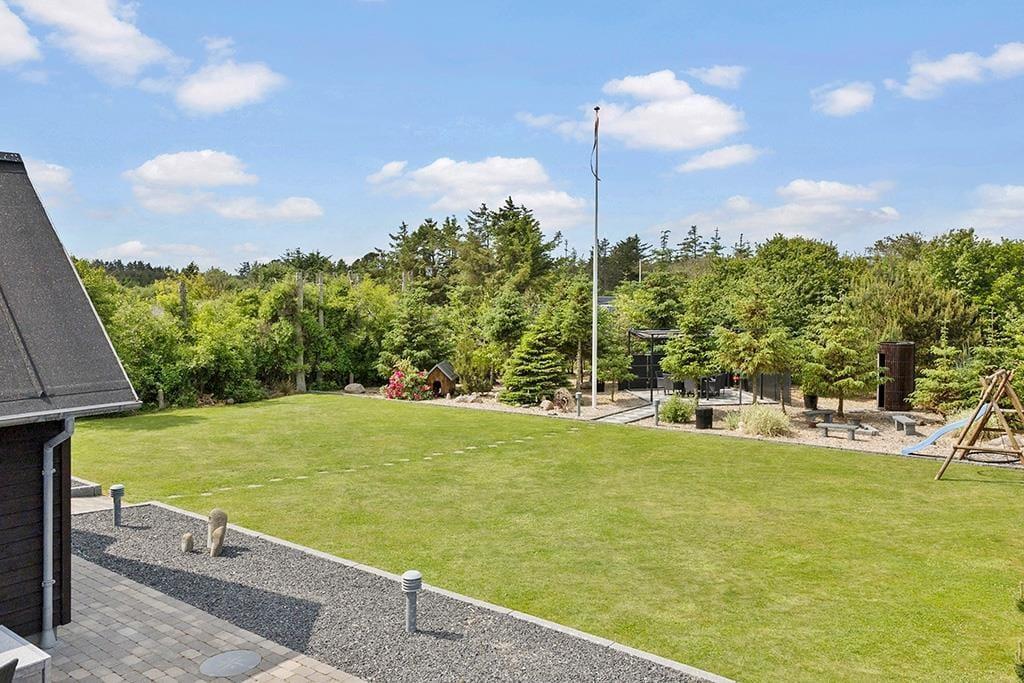 Das Ferienhaus liegt auf einem 1521 m2 grossen Grundstück mit einem flott angelegten Garten, welcher mit Garantie sowohl die Grossen wie auch die Kleinen begeistern wird. Der Rasen lädt zu Spiel und Spaß ein, außerdem gibt es Spielgeräte im Garten. Wenn Sie nicht ein Freund größerer physischer Aktivität sind, können Sie die friedvolle Umgebung in Ruhe und Frieden vom Liegestuhl aus genießen – außerdem gibt es gute Terrassen sowohl am Haus wie auch am Ende des Gartens, wo immer Windstille herrscht. Die eine Terrasse ist überdacht, so dass Sie hier den Schatten aufsuchen können, wenn die Sonne vom Himmel brennt, oder sich es im Trockenen bequem machen, wenn es von oben tropfen sollte.
