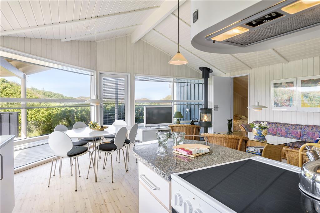 Das Ferienhaus präsentiert sich Ihnen tatsächlich genauso schön, wie auf den Bildern. Es wurde 2018 einer umfassenden Renovierung unterzogen, sodass wir sehr stolz darauf sind, Ihnen nun so ein attraktives, hochqualitatives Urlaubsdomizil anbieten zu können. Die Wohnfläche umfasst einen großen Aufenthaltsbereich mit integrierter Küche, Essplatz und Wohnraum samt Kamin und Ausgang auf die schöne Terrasse. Hinzu gesellen sich drei Schlafräume und ein Badezimmer mit Whirlpool und Sauna, in dem Sie sich nach einem erlebnisreichen Tag am Strand oder einer Rundtour in Nordjütland ganz wunderbar erholen können. Das gesamte Haus beeindruckt aufgrund der zahlreichen Fenster mit einem herrlichen Lichteinfall. Der Sinn des Eigentümers für eine geschmackvolle Gestaltung verleiht dem Haus eine gemütliche und erholsame Wohnatmosphäre. Moderne Ausstattungsgegenstände wie die Waschmaschine, der Wäschetrockner, die Wärmepumpe, der Parabolempfang und kostenloses WLAN runden das Urlaubserlebnis wunderbar ab. Hier wird es Ihnen mit Sicherheit an nichts mangeln.