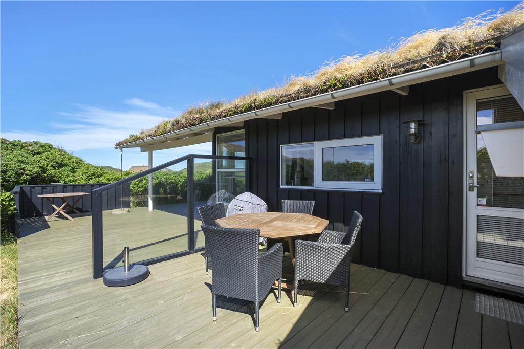 Das herrliche Ferienhaus liegt auf einem großen, traumhaft schönen Naturgrundstück in den Dünen. Große Heckenrosenbüsche bieten Ihnen auf der Terrasse sehr guten Schutz vor den meist vorherrschenden Westwinden. Vom Wohnraum gelangen Sie auf die große Terrasse, auf der Sie sich nach Herzenslust sonnen, entspannt grillen oder auch einfach nur die Ruhe genießen können. Ein Grill, Gartenmöbel und Liegestühle stehen selbstverständlich zu Ihrer Verfügung. Denken Sie also unbedingt an ein gutes Buch und Ihr Lieblingsgetränk!