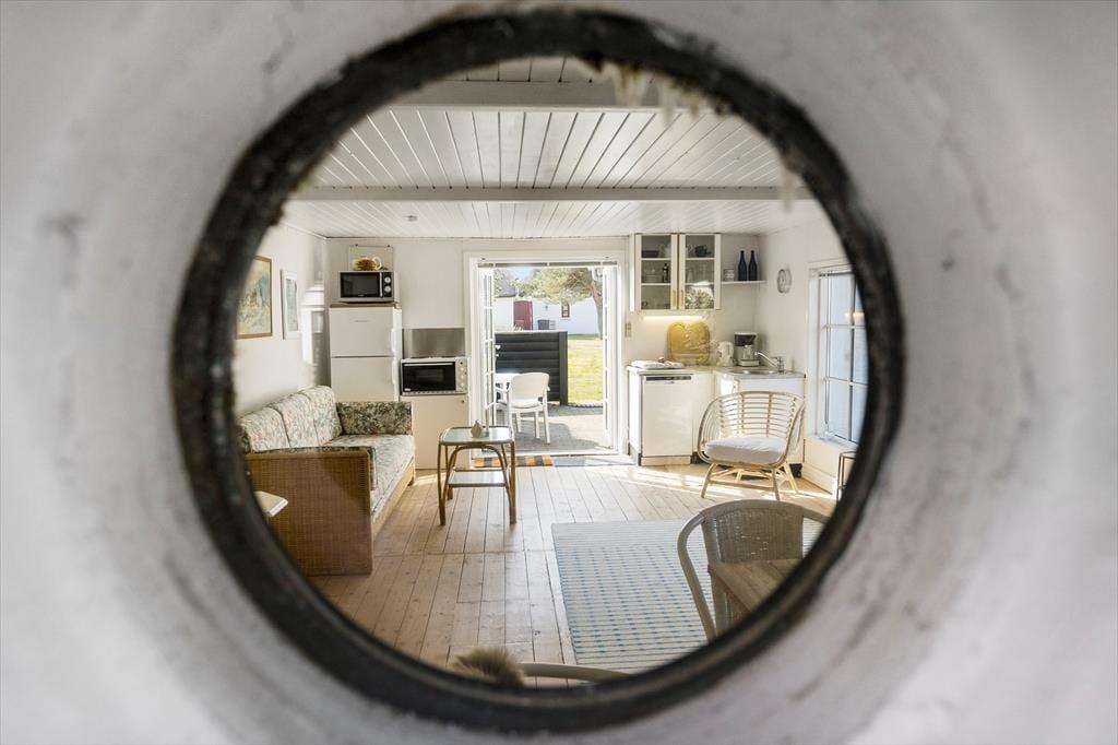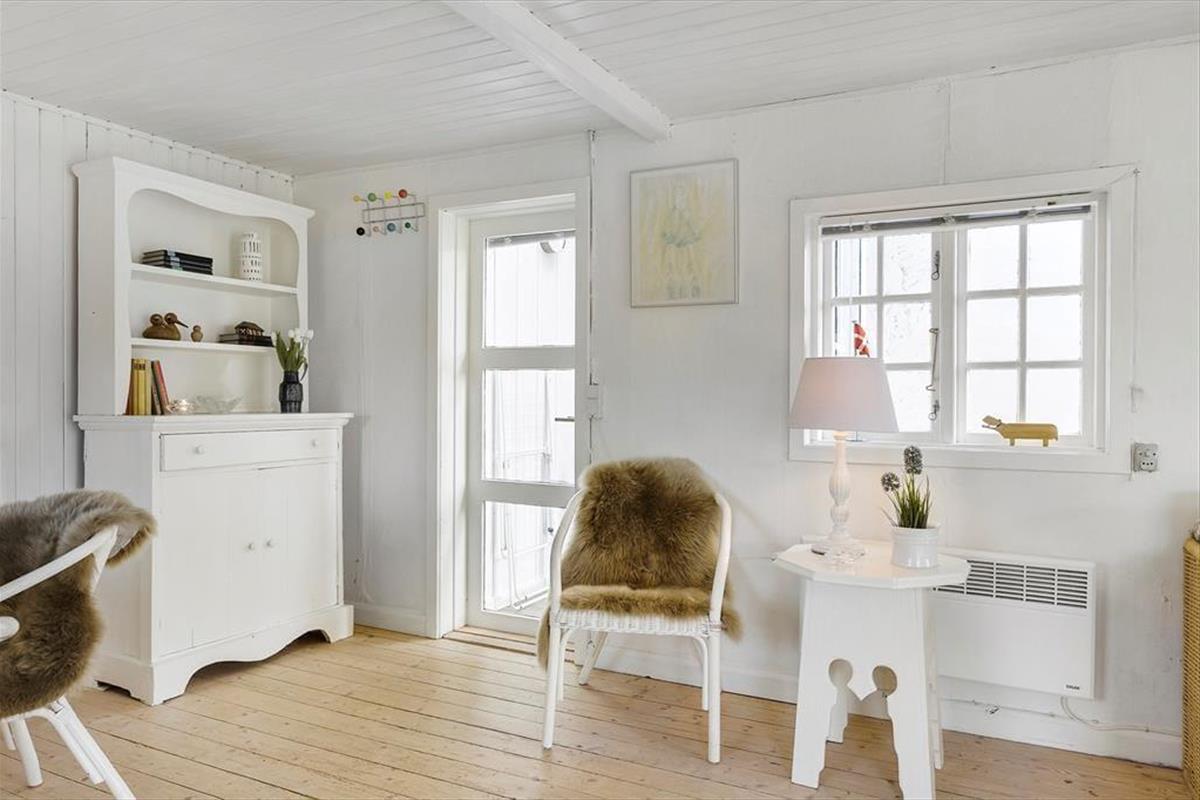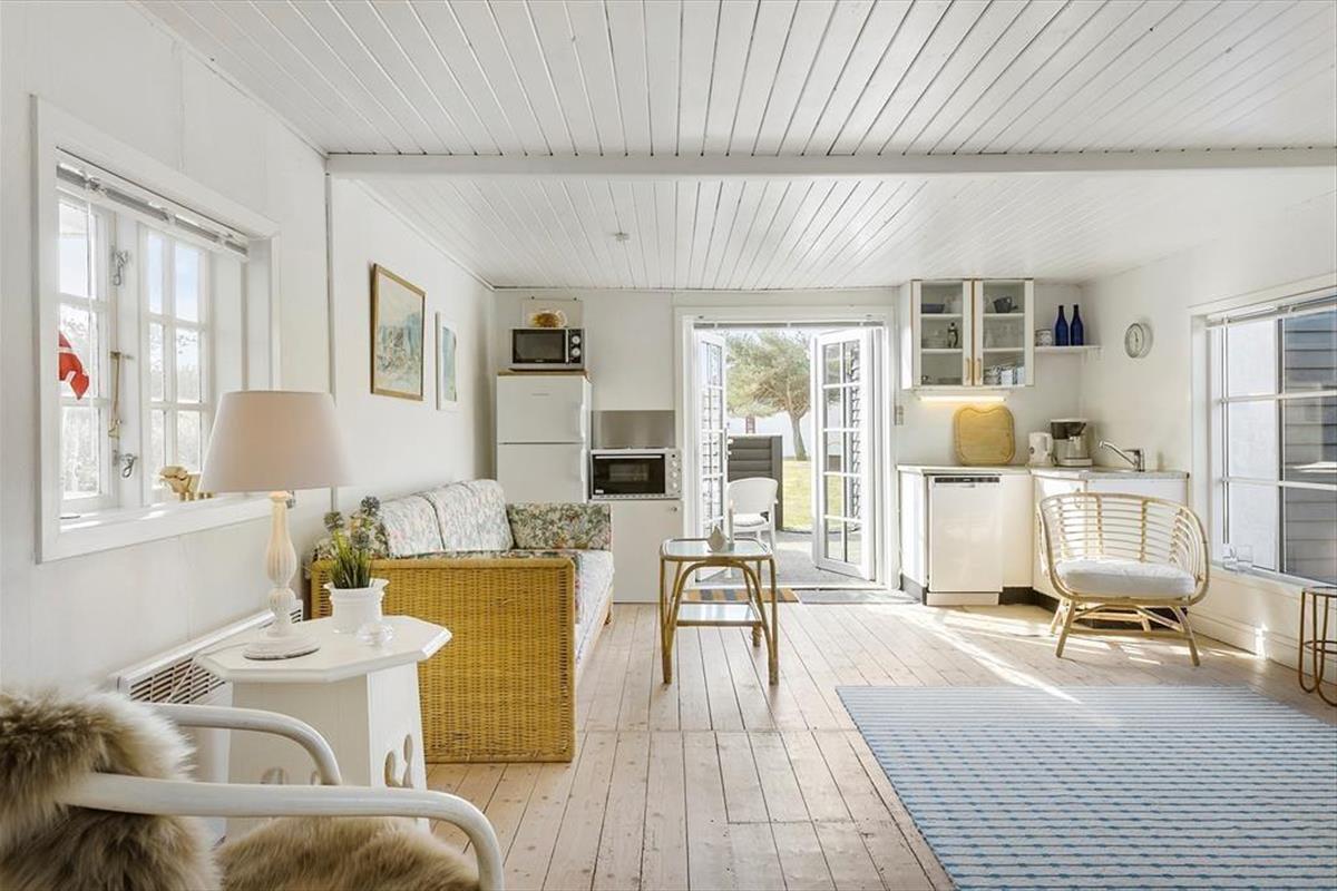 Das Mietobjekt ist mit seiner schwarzen Holzfassade und den weißen Sprossenfenstern der Inbegriff von echtem, klassischem Ferienhauscharme. Das Hausinnere besticht durch eine helle und freundliche Wohnatmosphäre. Die vorhandene Wohnfläche wurde richtig gut ausgenutzt. Freuen Sie sich auf einen gemütlichen Aufenthaltsraum mit einem Holzfußboden und weiß gestrichenen Decken, der die Küche und das Wohnzimmer offen in sich vereint. Der im Aufenthaltsraum platzierte Esstisch und das Sofa laden zu entspannten Stunden am Abend ein. Wunderbar untermalt wird die behagliche Wohnatmosphäre durch das natürliche Licht, das durch die reizenden Sprossenfenster strömt. Ein Schlafzimmer mit hoher Decke und ein Badezimmer stehen selbstverständlich ebenfalls für Sie bereit.