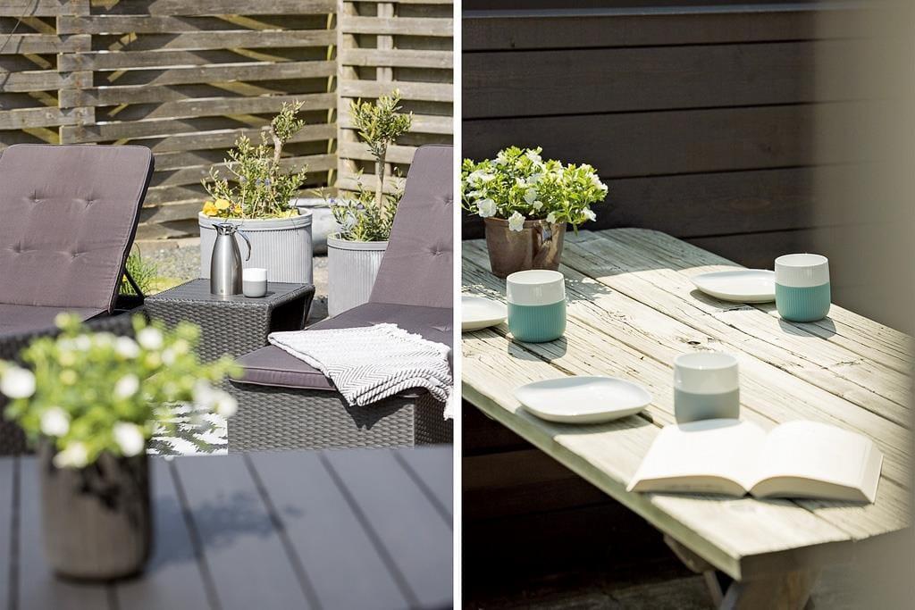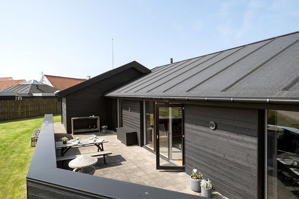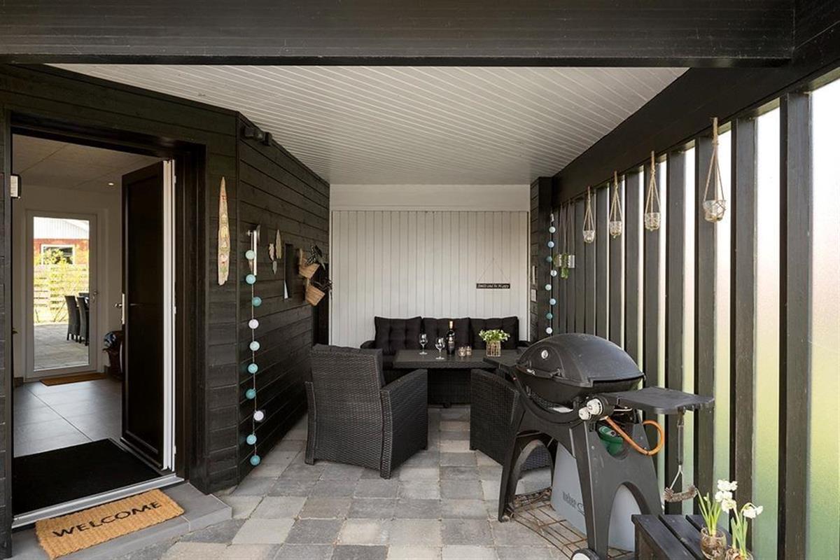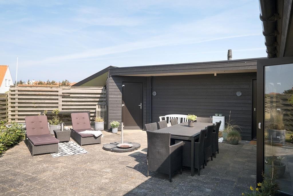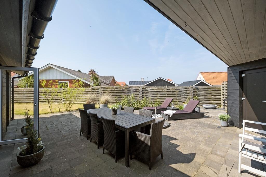 Auch auf den schönen Terrassen, die sich rund um das Haus verteilen, werden Sie Ihr Urlaubsleben in vollen Zügen genießen. Draußen im Garten locken gepflasterte Bereiche, die gen Osten, Süden und Westen ausgerichtet sind und stets ein schönes Plätzchen unter freiem Himmel für Sie bereit halten. Zu mehreren Seiten sorgen hohe Holzzäune dafür, dass Sie sich völlig ungestört von der dänischen Sommersonne verwöhnen lassen können. Bei z.B grillen. Das Ferienhaus stellt KOhlengrill sowie Gasgrill zur verfügung. Ein Terrassenbereich ist zudem überdacht und bietet sich daher wunderbar als Rückzugsort während der langen, hellen Sommerabende an, die Sie selbst dann noch draußen genießen, wenn sich die Dunkelheit längst über den Ort gesenkt hat.