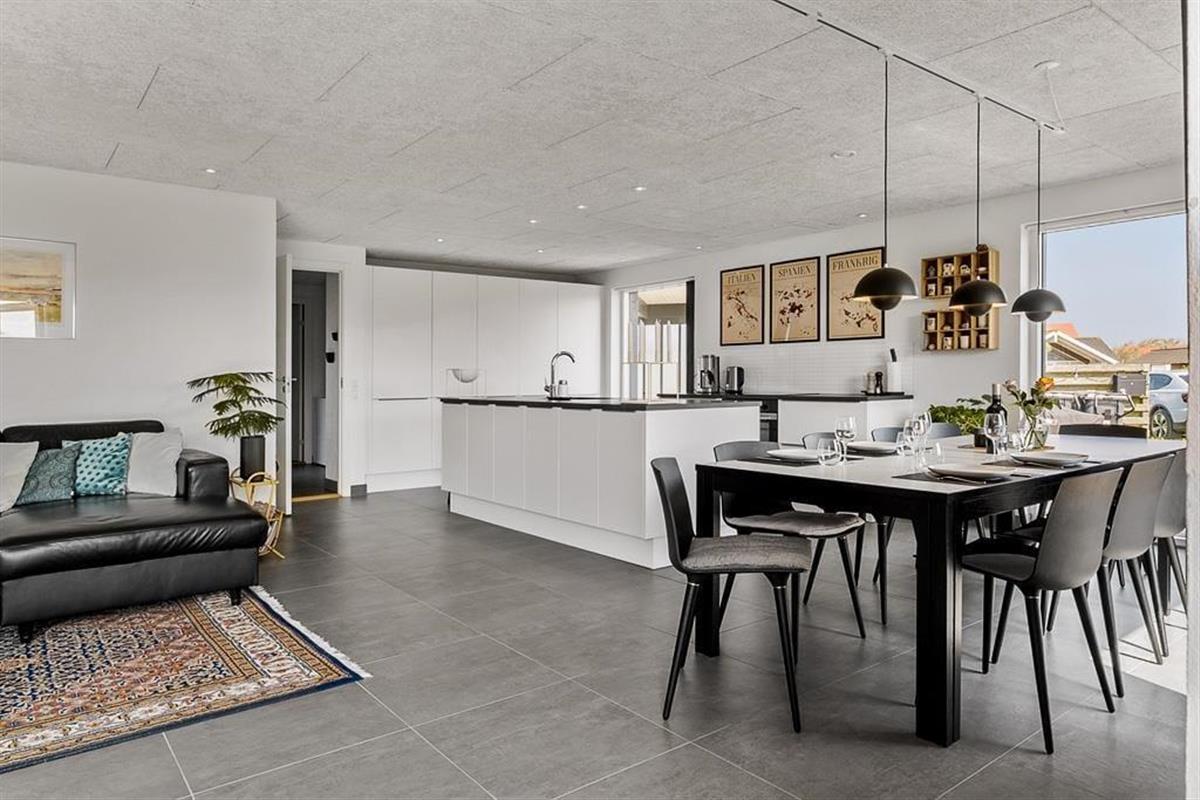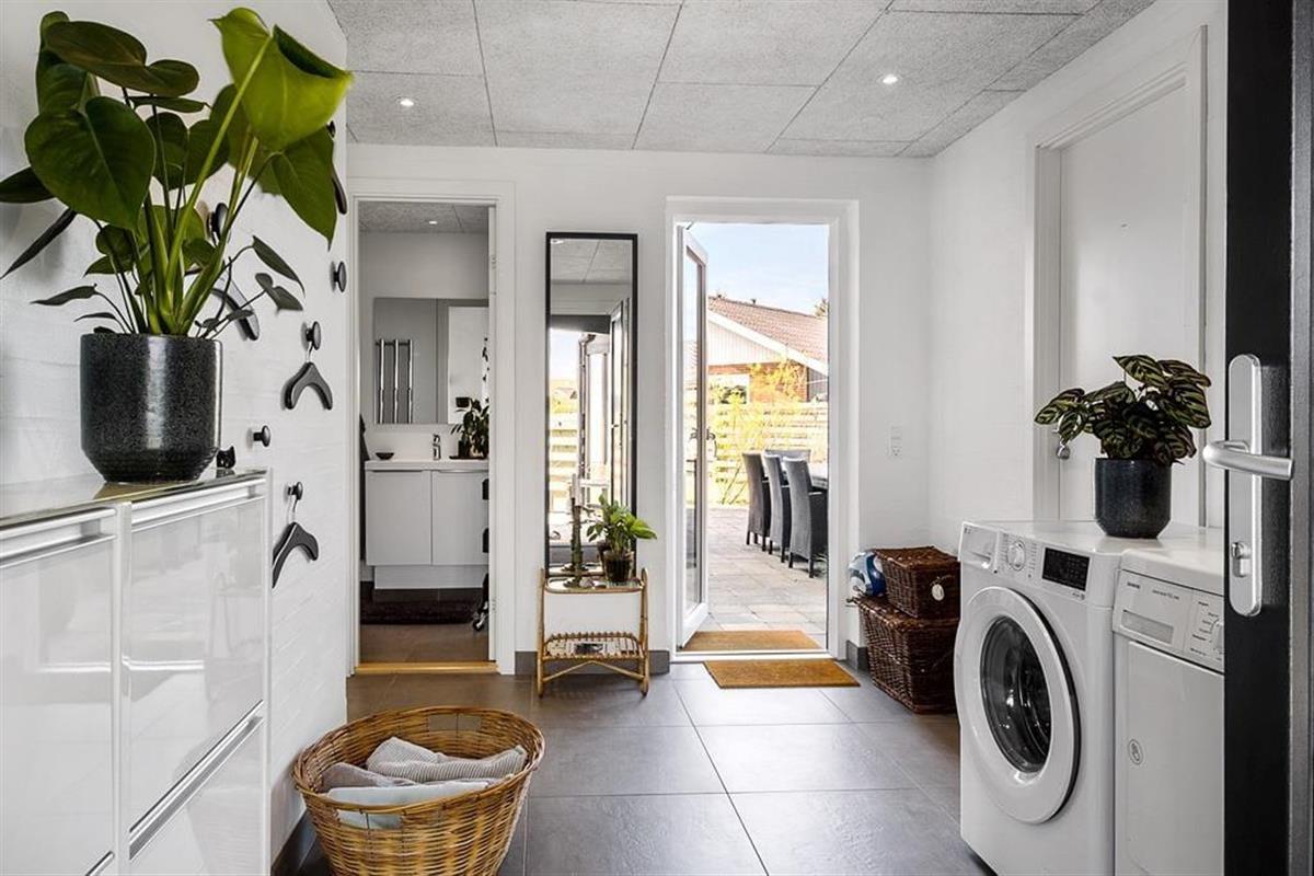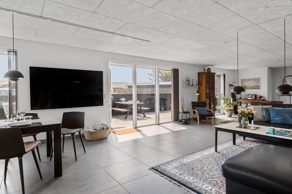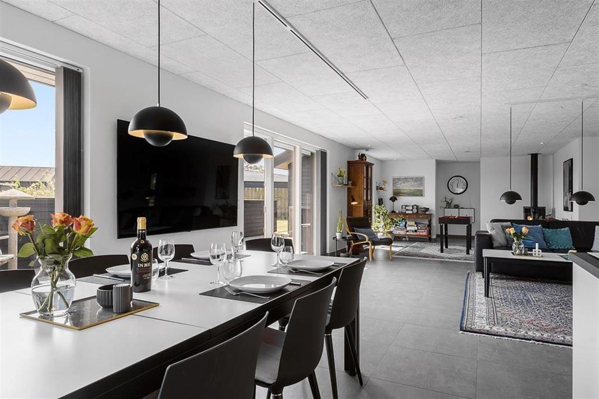 Auch auf den schönen Terrassen, die sich rund um das Haus verteilen, werden Sie Ihr Urlaubsleben in vollen Zügen genießen. Draußen im Garten locken gepflasterte Bereiche, die gen Osten, Süden und Westen ausgerichtet sind und stets ein schönes Plätzchen unter freiem Himmel für Sie bereit halten. Zu mehreren Seiten sorgen hohe Holzzäune dafür, dass Sie sich völlig ungestört von der dänischen Sommersonne verwöhnen lassen können. Bei z.B grillen. Das Ferienhaus stellt KOhlengrill sowie Gasgrill zur verfügung. Ein Terrassenbereich ist zudem überdacht und bietet sich daher wunderbar als Rückzugsort während der langen, hellen Sommerabende an, die Sie selbst dann noch draußen genießen, wenn sich die Dunkelheit längst über den Ort gesenkt hat.
