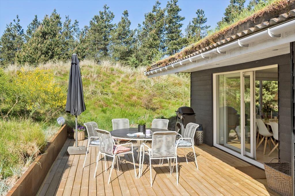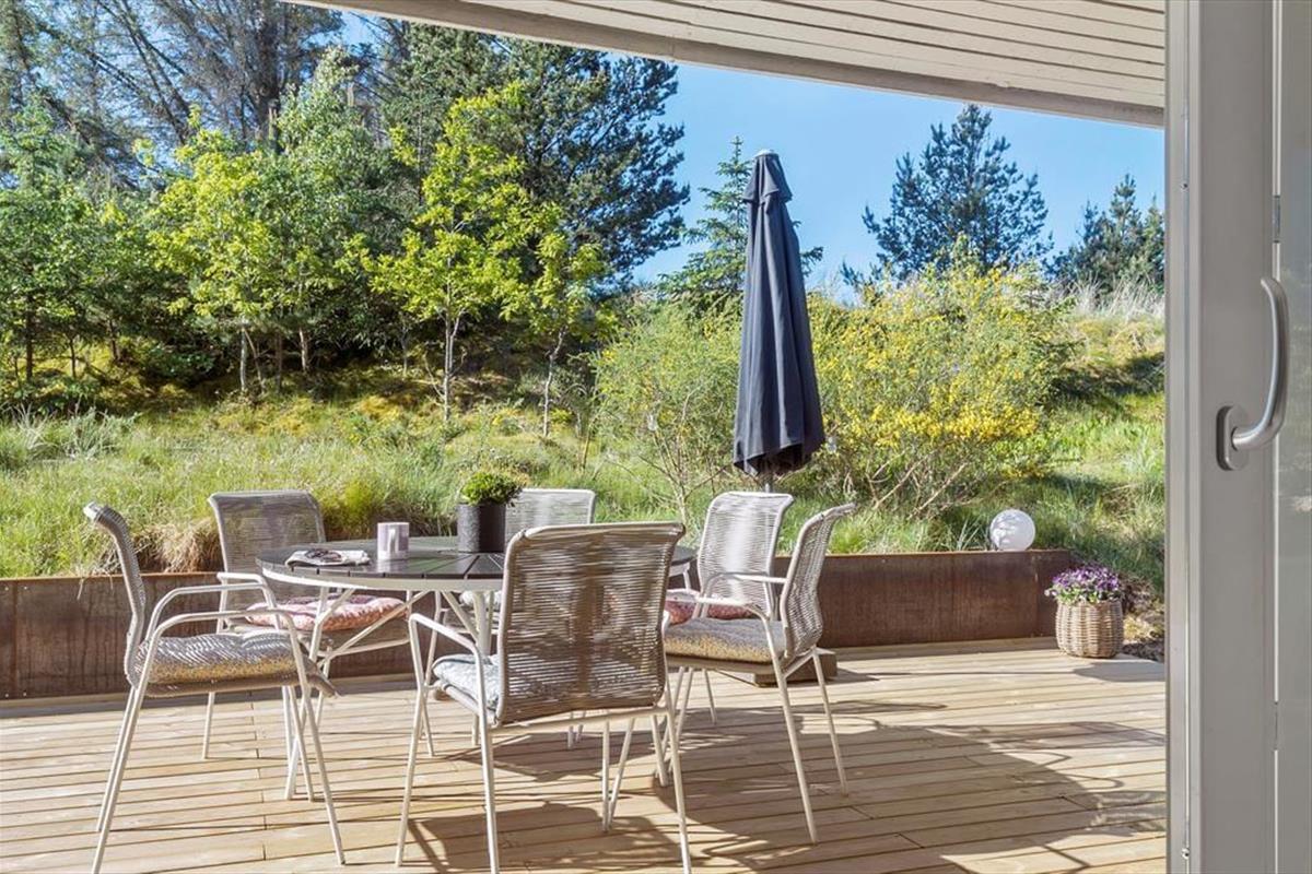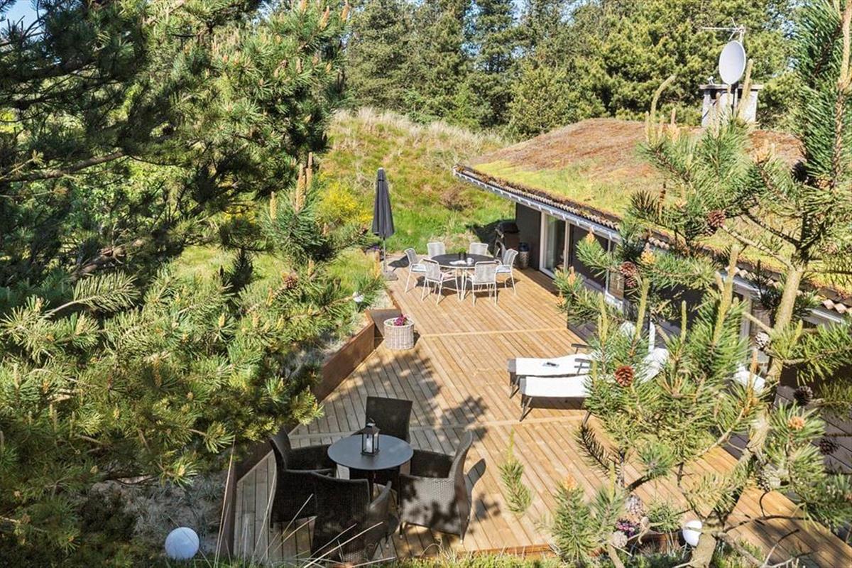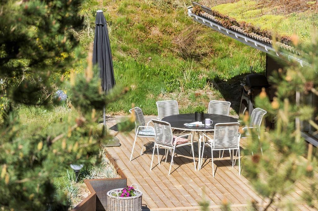 Unter freiem Himmel werden Sie feststellen, dass es von Vorteil ist, in einer Senke zu wohnen. Die südlich und östlich des Hauses liegenden Terrassen sind meist gut vor Wind geschützt und für Nachbarn und Spaziergänger nicht einsehbar. Sie selber blicken hingegen ins Grüne und genießen den Duft der Nadelbäume, der Heide und der anderen Wildpflanzen, während Sie sich in aller Ruhe auf den Gartenmöbeln und Liegestühlen entspannen.