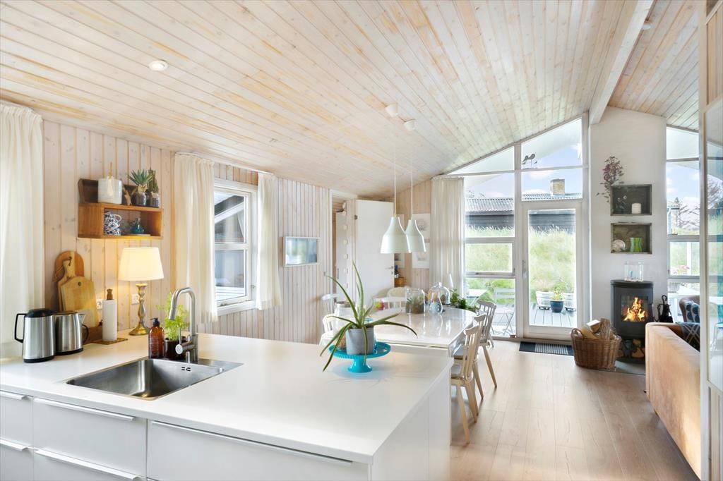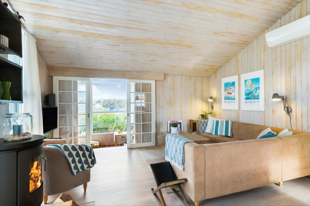 Es wurde viel Wert darauf gelegt, mehrere gemütliche Aufenthaltsorte innerhalb des 93 m² großen und gepflegten Ferienhauses zu schaffen. Im Aufenthaltsraum können Sie sich um den Esstisch versammeln, wenn das Essen in der gut ausgestatteten Küche fertig ist. Nach dem Essen ist es angenehm, sich auf der Sofaecke auszustrecken, die dicht am Kamin und dem Flachbildfernseher platziert ist. Vom Wohnzimmer führt eine kleine Treppe hinunter zu einem Außen-Wohnbereich, wo das schöne Tageslicht und die Aussicht auf die Dünen und Ferienhäuser Sie daran erinnert, dass Sie von den Routinen des Alltags sehr weit entfernt sind. Die Raumaufteilung bietet darüber hinaus drei Schlafzimmer, die alle jeweils mit einem Doppelbett ausgestattet sind sowie ein Badezimmer mit Dusche. Des Weiteren gibt es eine Waschmaschine, einen Trockner und einen extra Kühlschrank im Nebengebäude.