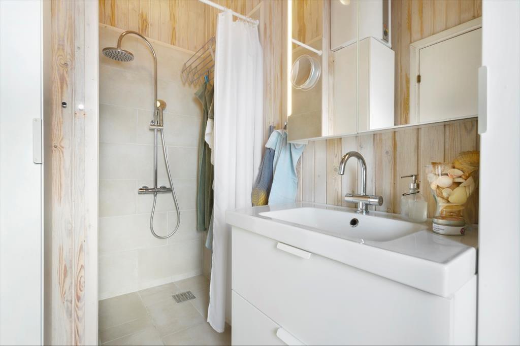 Wenn das Wetter zu gut ist, um sich drinnen aufzuhalten, können Sie sich darauf freuen, die Sonne auf dem 1.542 m² großen Naturgrundstück zu genießen. Auf der Spitze einer kleinen Düne steht eine Bank, und die nach Südwesten ausgerichtete Terrasse ist mit Glas abgeschirmt, sodass Sie an beiden Seiten über die schöne Gegend blicken können. Ziehen Sie es vor, etwas unbehelligter zu sitzen, dann bietet sich dafür der schöne, geschlossene Innenhof an der Südostseite des Hauses an.