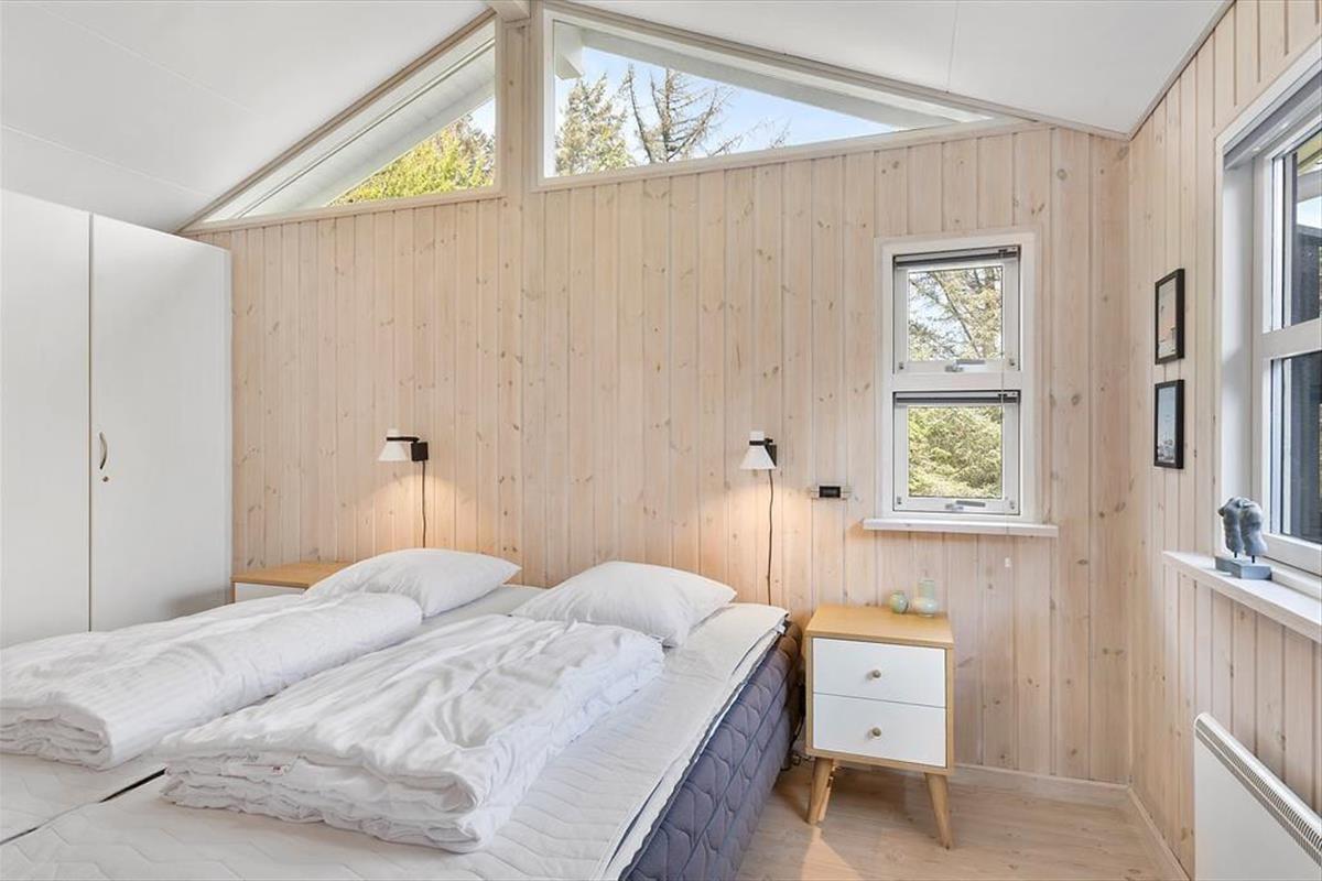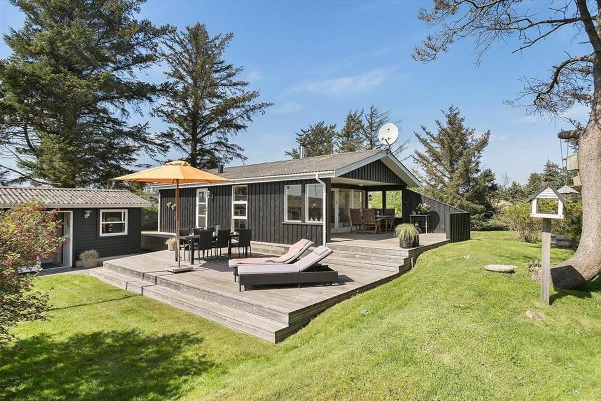 Dieses Urlaubsdomizil ist der Inbegriff von echtem dänischen Ferienhauscharme. Details wie die holzverkleideten Wände, der Kamin und die komfortable Möblierung schaffen im Inneren eine außerordentlich gemütliche Atmosphäre. Zahlreiche Fensterpartien verleihen den Räumen zudem ein luftiges, helles Wohnambiente. Ihr Reisegepäck können Sie gut in den beiden vorhandenen Schlafräume verstauen. Sollte Ihnen die Anzahl der Schlafplätze im Haus nicht ausreichen, können Sie selbstverständlich auch gerne das neben dem Haus befindliche Nebengebäude bewohnen. Neben den Schlafräumen zählen auch ein schönes Badezimmer mit Sauna und ein großer Wohnbereich mit integrierter Küchenabteilung zur Wohnfläche.
