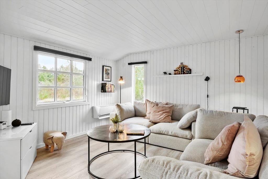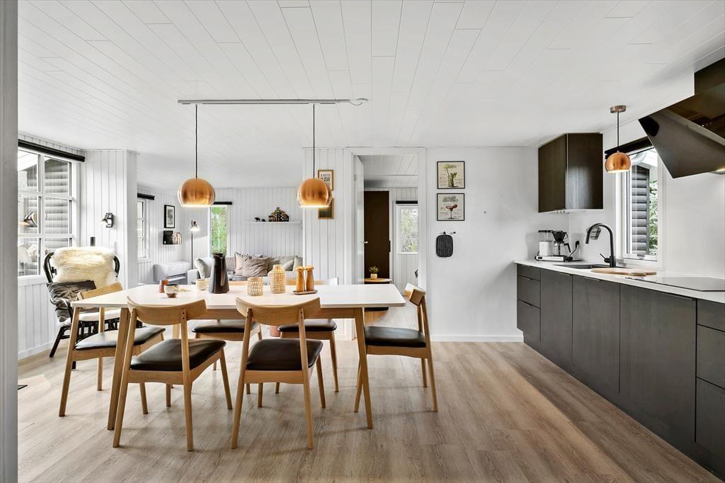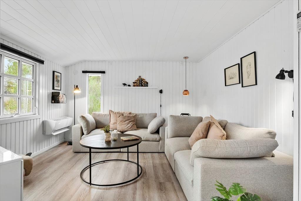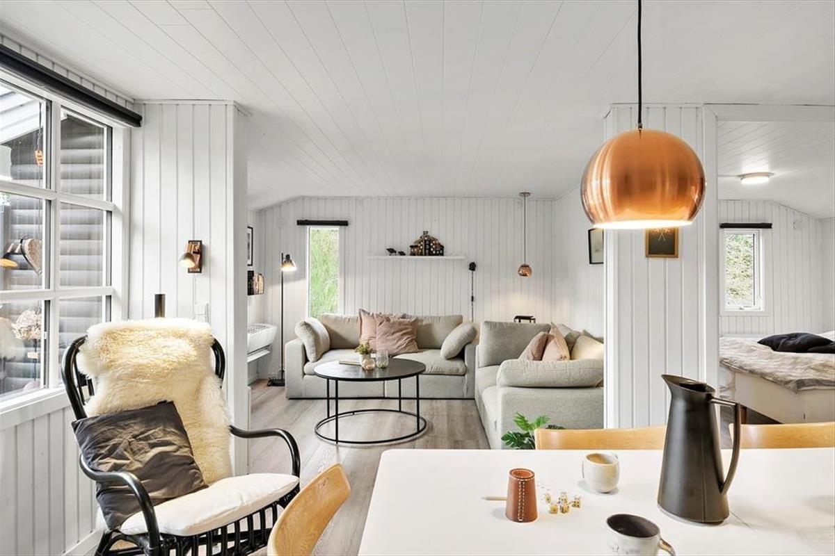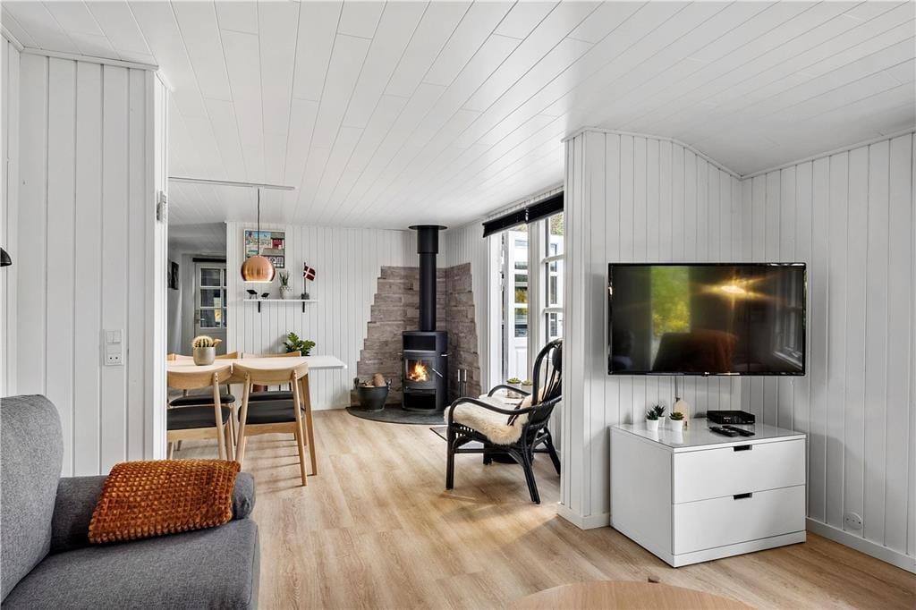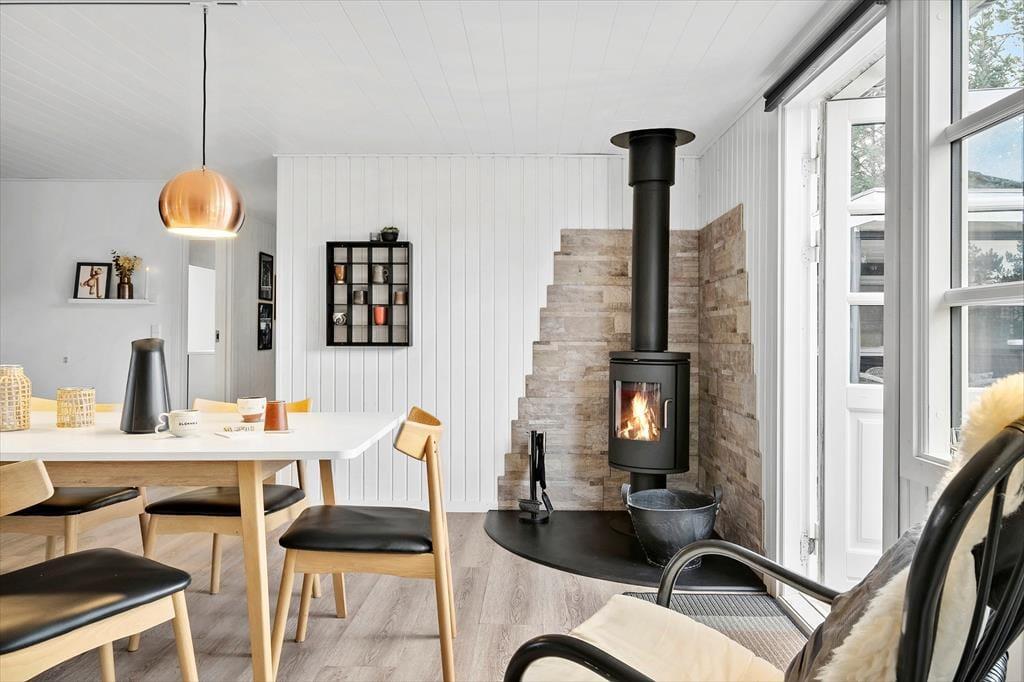 Dieses Ferienhaus bietet Ihnen einen hervorragenden Rahmen für wunderschöne Urlaubstage. In 2020 wurde das Objekt einer umfassenden, liebevoll durchgeführten Renovierung unterzogen. Alles, von den Küchenelementen über die Badezimmerausstattung bis hin zu den Fußböden und der Terrasse, wurde erneuert. Das Haus wurde zudem gestrichen, sodass es auch von außen wunderbar frisch und einladend wirkt. Die Möblierung im klassisch skandinavischen Stil fügt sich perfekt in die stimmungsvollen Räumlichkeiten ein. Dank des Kaminofens dürfen Sie sich im Aufenthaltsbereich, der sich offen aus der Küche und dem Wohnraum zusammensetzt, auf ein Maximum an echter Ferienhausstimmung freuen. Zur Wohnfläche zählen außerdem drei gute Schlafzimmer, von denen eines zusammen mit einem eigenen Gäste-WC im Nebengebäude platziert ist. Das Badezimmer im Haupthaus begrüßt Sie mit einer Waschsäule, einer Fußbodenheizung und einer schönen, attraktiven Duschnische.