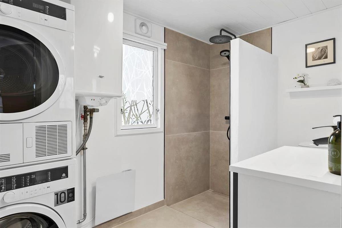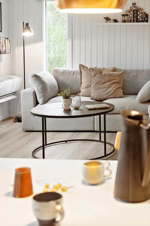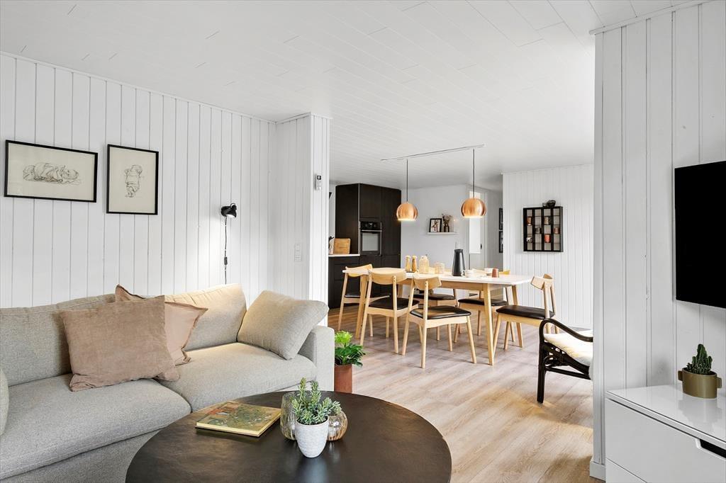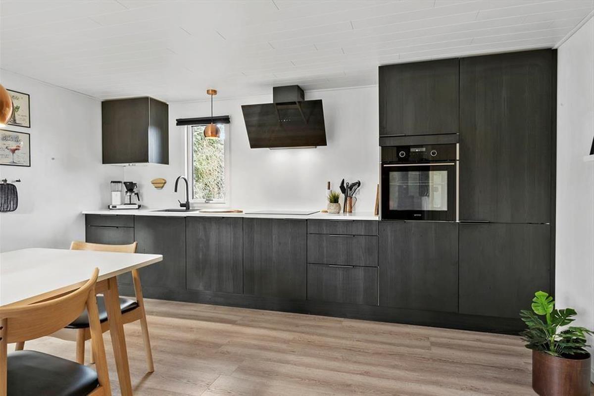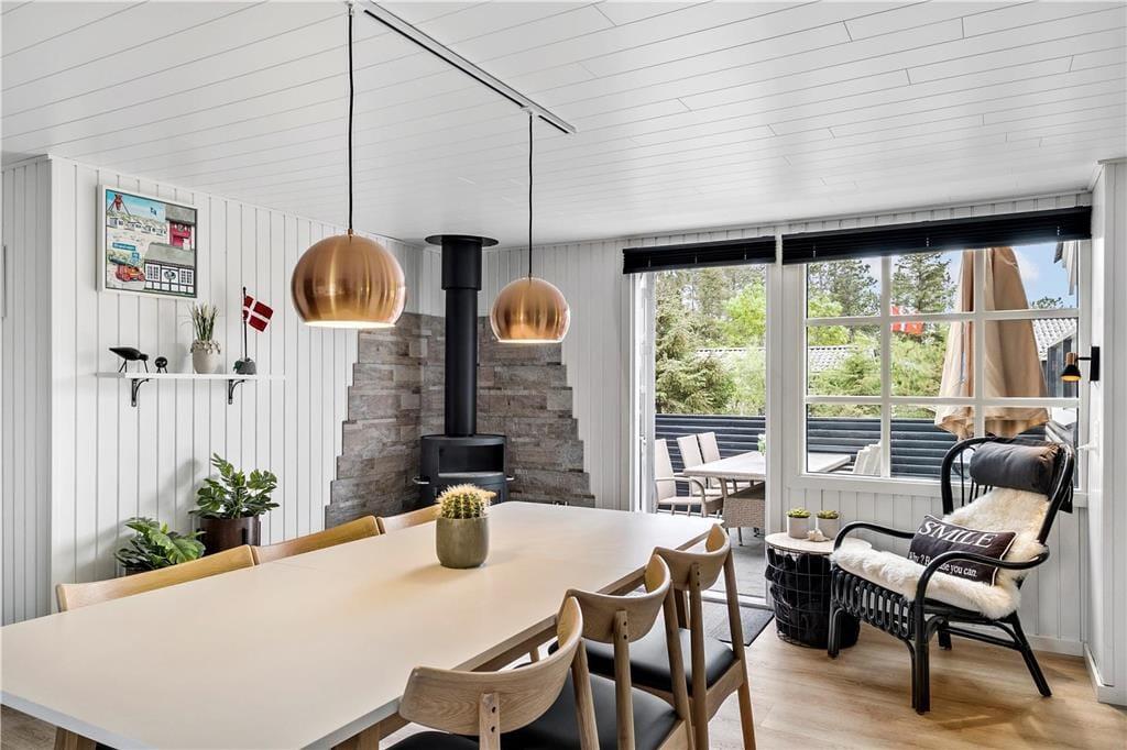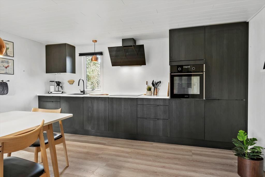 Dieses Ferienhaus bietet Ihnen einen hervorragenden Rahmen für wunderschöne Urlaubstage. In 2020 wurde das Objekt einer umfassenden, liebevoll durchgeführten Renovierung unterzogen. Alles, von den Küchenelementen über die Badezimmerausstattung bis hin zu den Fußböden und der Terrasse, wurde erneuert. Das Haus wurde zudem gestrichen, sodass es auch von außen wunderbar frisch und einladend wirkt. Die Möblierung im klassisch skandinavischen Stil fügt sich perfekt in die stimmungsvollen Räumlichkeiten ein. Dank des Kaminofens dürfen Sie sich im Aufenthaltsbereich, der sich offen aus der Küche und dem Wohnraum zusammensetzt, auf ein Maximum an echter Ferienhausstimmung freuen. Zur Wohnfläche zählen außerdem drei gute Schlafzimmer, von denen eines zusammen mit einem eigenen Gäste-WC im Nebengebäude platziert ist. Das Badezimmer im Haupthaus begrüßt Sie mit einer Waschsäule, einer Fußbodenheizung und einer schönen, attraktiven Duschnische.