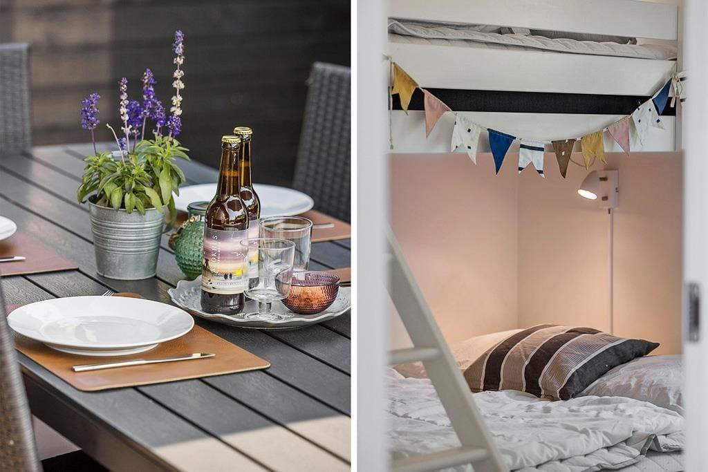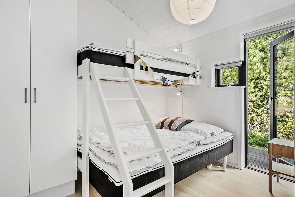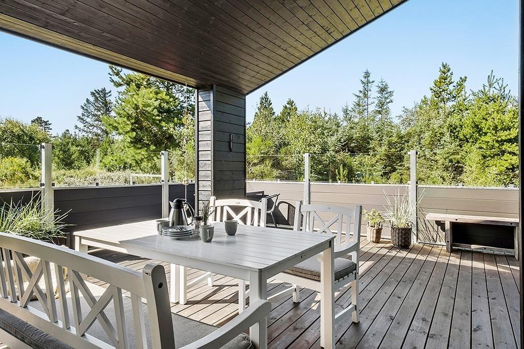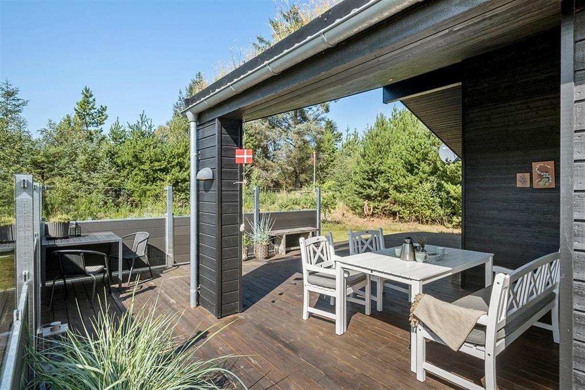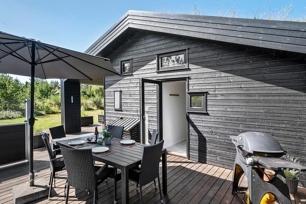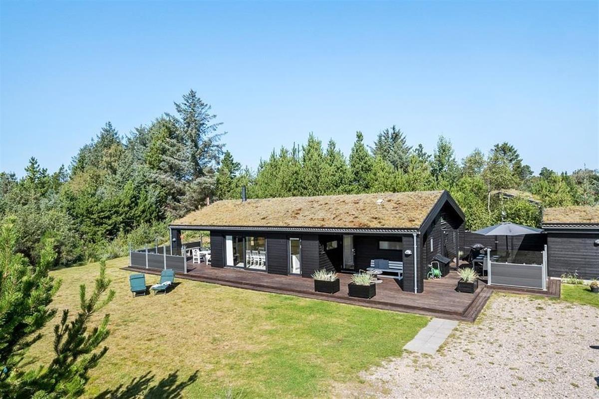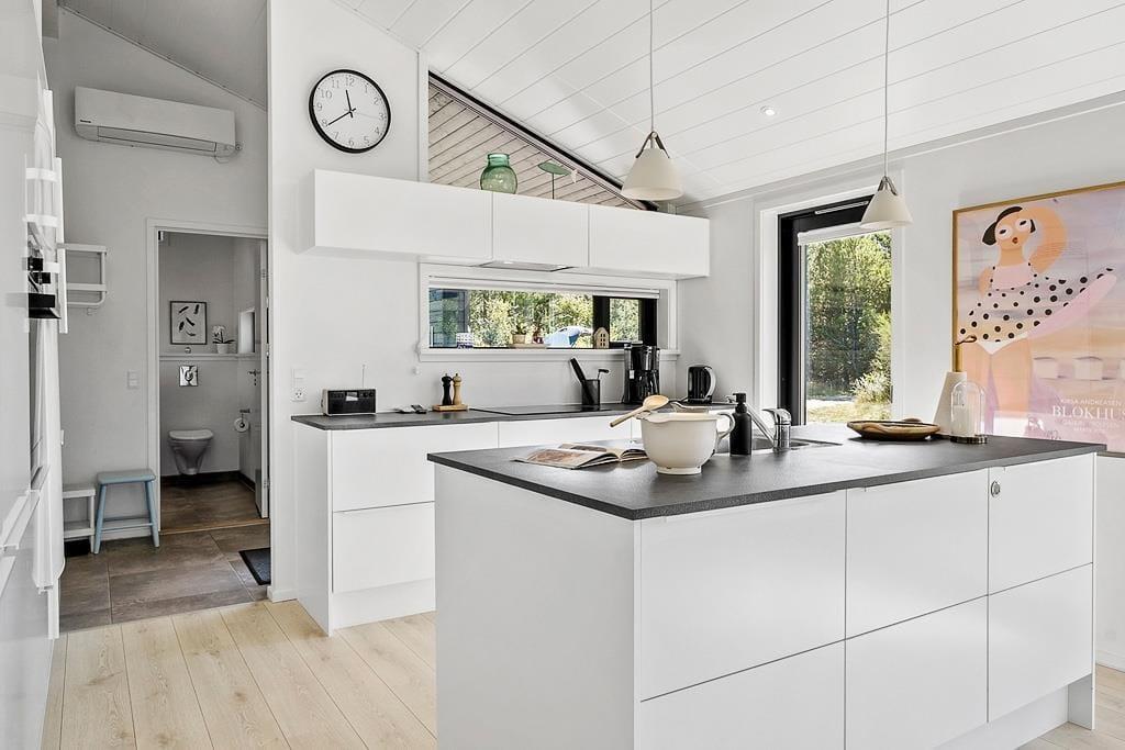 Das Haus wurde erst 2018 gebaut und es wurden nur die besten Materialien dafür verwendet. Es ist eine Freude im Haus zu bleiben - nicht zuletzt im Wohnbereich, der ein herrlicher Raum mit hohen Decken und großen Fensterfronten im Süden, Osten und Westen hat. Die Fenster lassen natürlich eine Menge Tageslicht hinein und geben gleichzeitig die Sicht auf die Kiefern frei, die das Naturgrundstück umgeben. An dem einen Ende des Raumes befindet sich eine gut ausgestattete Küche. In der Mitte steht der Esstisch, während in der Nähe des Kaminofens eine weiche Sofagruppe steht. Kurz gesagt können hier alle gemeinsamen Urlaubsaktivitäten stattfinden. Außerdem gibt es drei Schlafzimmer, eine Gästetoilette und ein Badezimmer, die alle elegant, stilvoll und komfortabel eingerichtet sind.