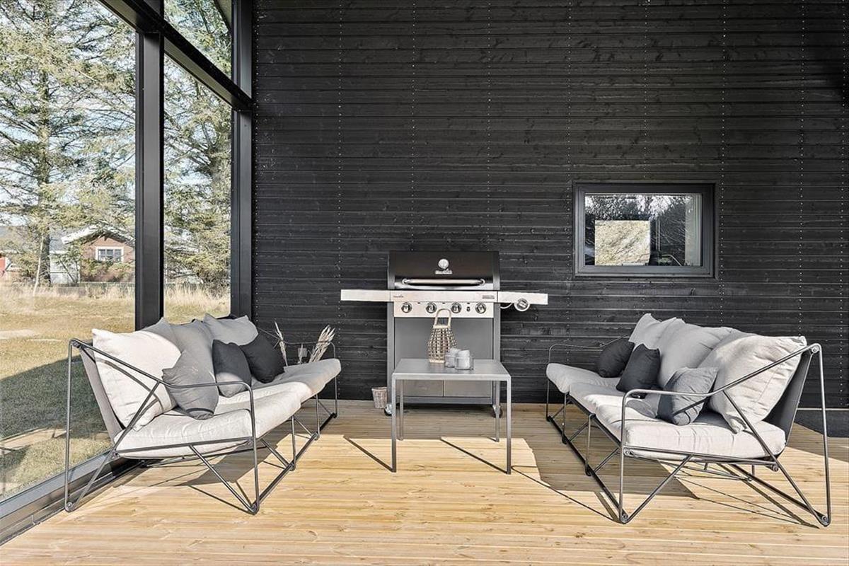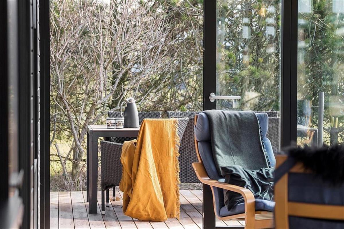 Das gesamte Urlaubsdomizil begeistert mit einer Fülle toller Details und richtig schönem, stilvollem Design. Es ist sicherlich nicht nur der Wohnraum, der Ihr Augenmerk auf sich ziehen wird. Der große Raum fasziniert mit einer fantastischen Fensterpartie, die ganze drei Himmelsrichtungen umfasst, einen schönen Ausblick in den Garten gewährt und den Wohnraum nahezu mit dem Terrassenareal verschmelzen lässt. Zahlreiche gemütliche Sitzplätze und ein romantisch knisternde Kaminofen laden im Wohnraum zu entspannten, wertvollen Stunden im Kreise Ihrer Lieben ein. Die stilvolle Küche ist elegant in den Wohnraum integriert. Zur Wohnfläche zählen darüber hinaus ein praktischer Hauswirtschaftsbereich, ein Badezimmer und drei Schlafräume. Somit bietet Ihnen dieses Ferienhaus alles, was Sie für den erholsamen und gelungenen Urlaub mit bis zu sechs Personen benötigen.