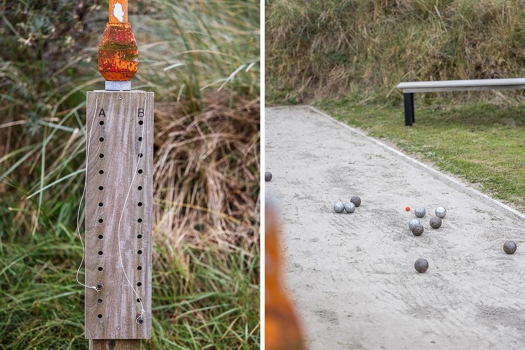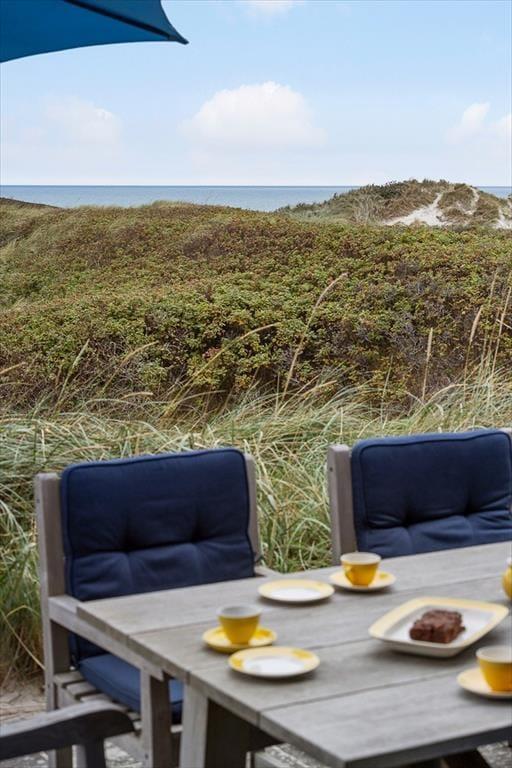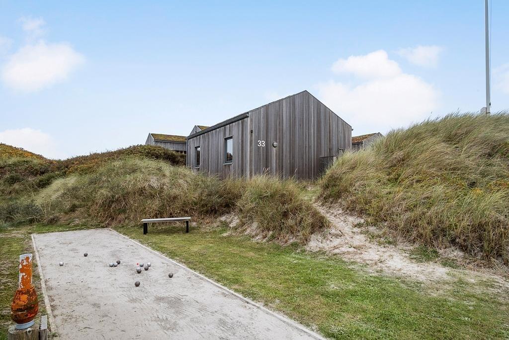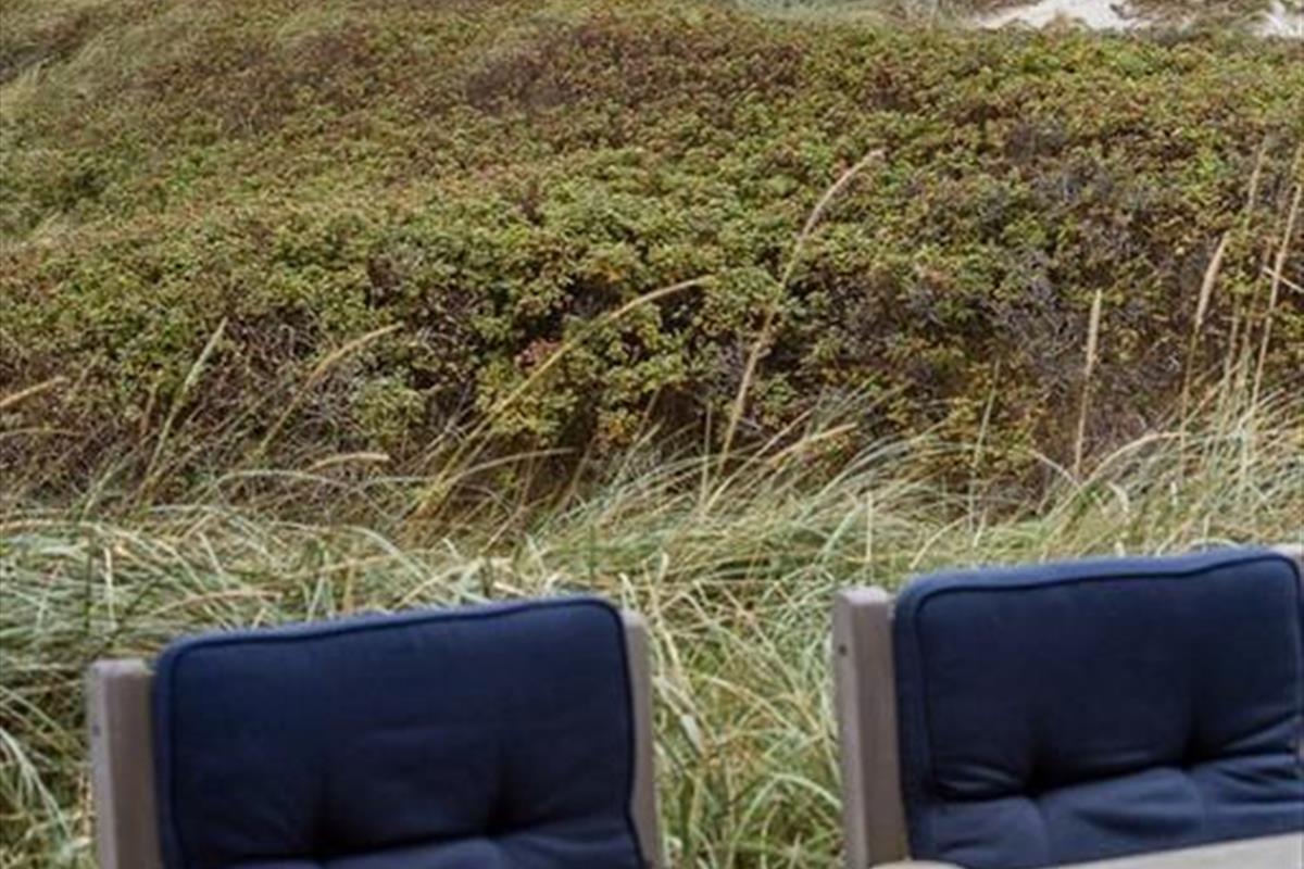 Die Außenbereiche auf dem unglaublich großen Dünengrundstück sind mindestens ebenso vollendet und beeindruckend wie das Ferienhaus selber. Das Terrassenareal schmiegt sich rund um das Haus, sodass Sie den gesamten Tag hindurch stets einen sonnenverwöhnten Aufenthaltsplatz finden werden. An etwas kühleren Tagen und während der langen Sommerabende fungiert der überdachte Terrassenbereich nahezu als eine Art Wintergarten. Auf der Terrasse gen Westen eröffnet sich Ihnen die imposanteste Aussicht. Gen Osten weitet sich eine gepflasterte Terrasse zu einem großen Aufenthaltsareal aus, auf dem Sie Ihnen beispielswiese ausreichend Platz für eine unterhaltsame Runde Schaumstoffball-Tennis bietet. Neben Schaumstoffball-Tennis stehen Ihnen auch Fahrräder, ein Meerkajak und eine Tischtennisplatte zur Verfügung, sodass bei Groß und Klein zu keiner Zeit auch nur ein Hauch von Langeweile aufkommen könnte. Auf dem Grundstück lockt darüber hinaus auch eine Bocciabahn. Wenn Sie von einem erfrischenden Bad in den wogenden Nordseewellen oder von einem ausgedehnten Strandspaziergang heimkehren, spült Ihnen die Außendusche den Sand und das Salz des Meeres von der Haut.