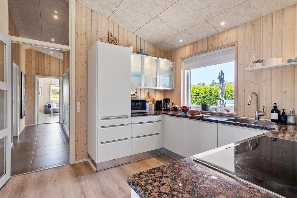 Das 158 m² große Urlaubsdomizil besticht mit einer tollen, wunderbar schlichten Innenraumgestaltung, deren modernes Interieur die hellen Räumlichkeiten wunderbar in Szene setzt. Der große Aufenthaltsraum bietet Ihnen und Ihren Liebsten unglaublich viel Platz für das gemeinsame Beisammensein - ganz gleich, ob Sie gemeinsam in der offenen Küche die Mahlzeiten zubereiten, in geselliger Runde rund um den Esstisch sitzen oder es sich mit einem guten Film auf dem Sofa gemütlich machen möchten. Im Laufe des Tages sorgen die großen Fensterpartien für einen schönen Tageslichteinfall. Der zu zwei Seiten verglaste Kaminofen verzaubert Sie mit seinem gemütlich flackernden Feuer sowohl am Essplatz als auch in der Sofaabteilung. Wenn es für Sie auch hin und wieder ein wenig aktiver zugehen darf, begeben Sie sich einfach in den Aktivitätsraum, der mit seinem Billardtisch und der Tischtennisplatte für viel Spaß und Abwechslung sorgt. Maximale Entspannung versprechen Ihnen hingegen die Badewanne und die Sauna im größeren der beiden Badezimmer. Nicht nur in den Bädern, sondern im gesamten Ferienhaus sorgt eine Fußbodenheizung für wohlig warme Temperaturen. Dies gilt selbstverständlich auch für die drei Schlafräume, die insgesamt ausreichend Platz für bis zu sechs Urlauber bieten.