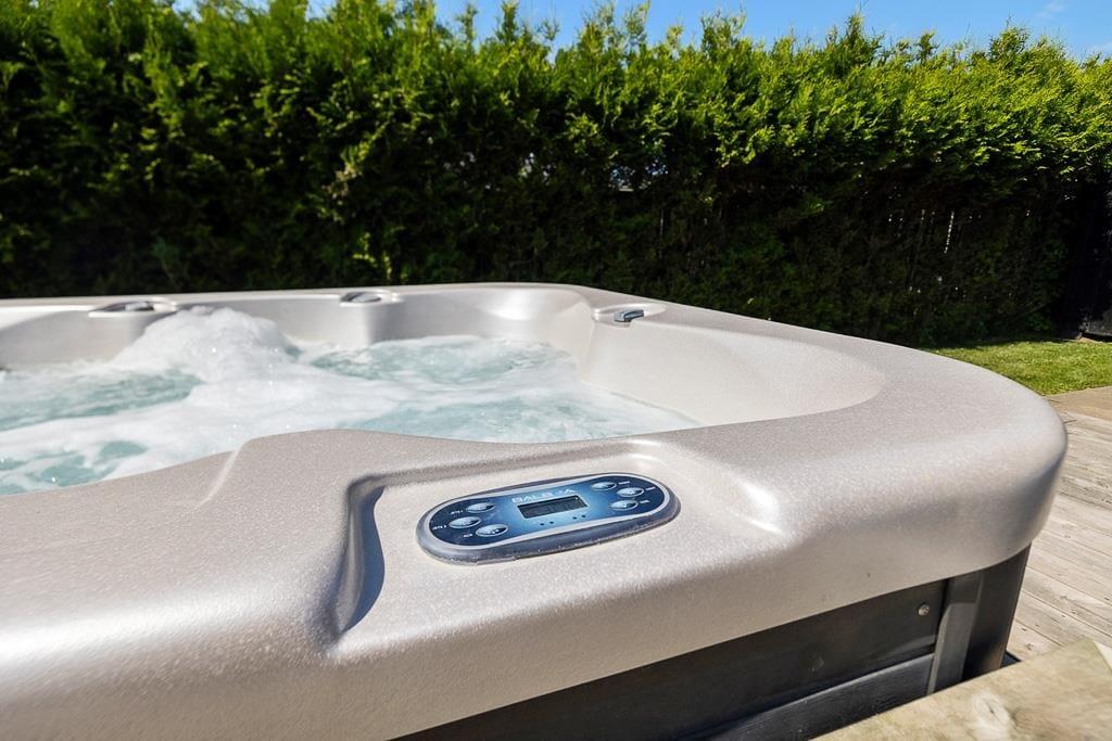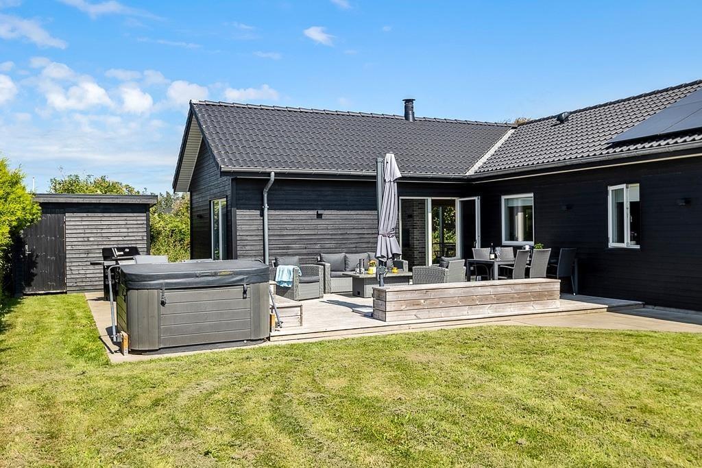 Sobald die Sonne vom Himmel lacht, können Sie Ihr Urlaubsleben auch ganz entspannt hinaus auf die beiden offenen Terrassen verlegen, auf denen Sie hervorragend frühstücken, ausgedehnte Sonnenbäder genießen und gemeinsam allabendlich grillen können. Die Grasfläche bietet Ihnen und Ihren Kindern viel Platz für Garten- und Ballspiele. Die jüngsten Urlauber dürfen sich zudem auf ein eigenes Trampolin freuen. Auf der Terrasse finden Sie außerdem einen Außen-Spa-Bereich, in dem Sie sich mit einem entspannenden Whirlpool verwöhnen lassen können.