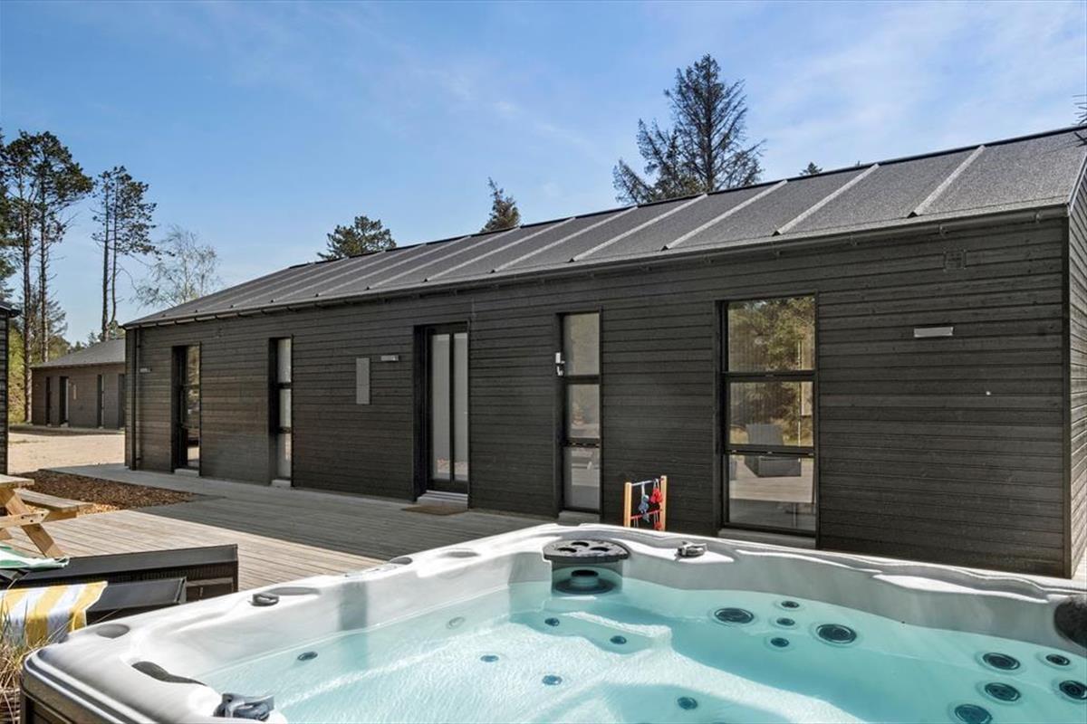 Sie können hier auf dem Plantagevej richtige Ferien für Genießer verbringen. Dieses moderne Holzferienhaus ist nämlich sehr stillvoll eingerichtet und mit einem Außen Whirlpool auf dem großen Naturgrundstück ausgestattet, und so liegt dieses alles in wunderbarer grüner Umgebung in Kryle Klit dicht an Fårup Sommerland, der Nordsee und dem Ort Blokhus.