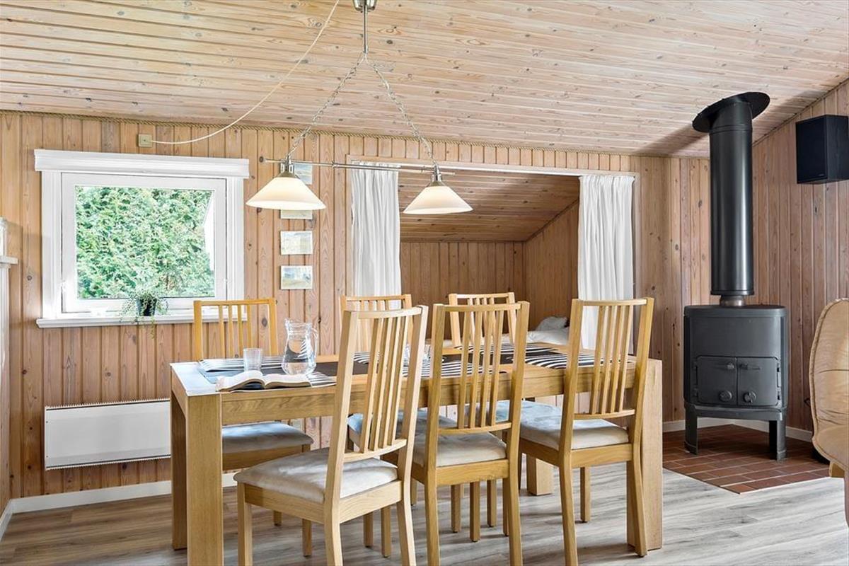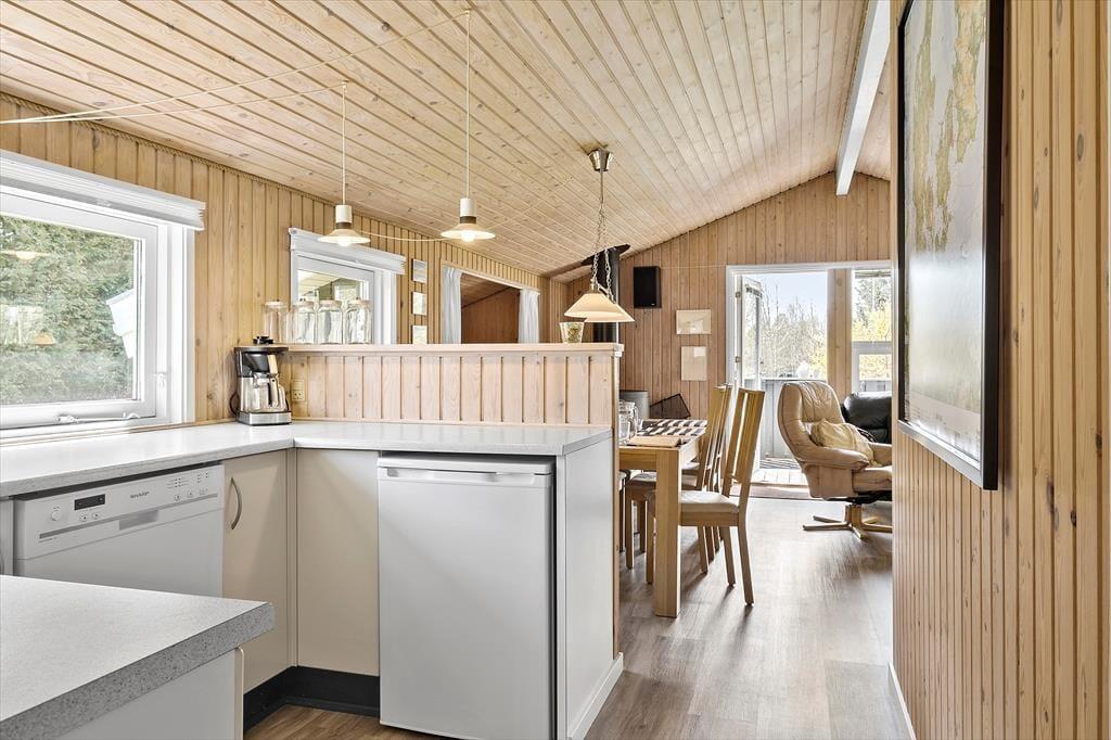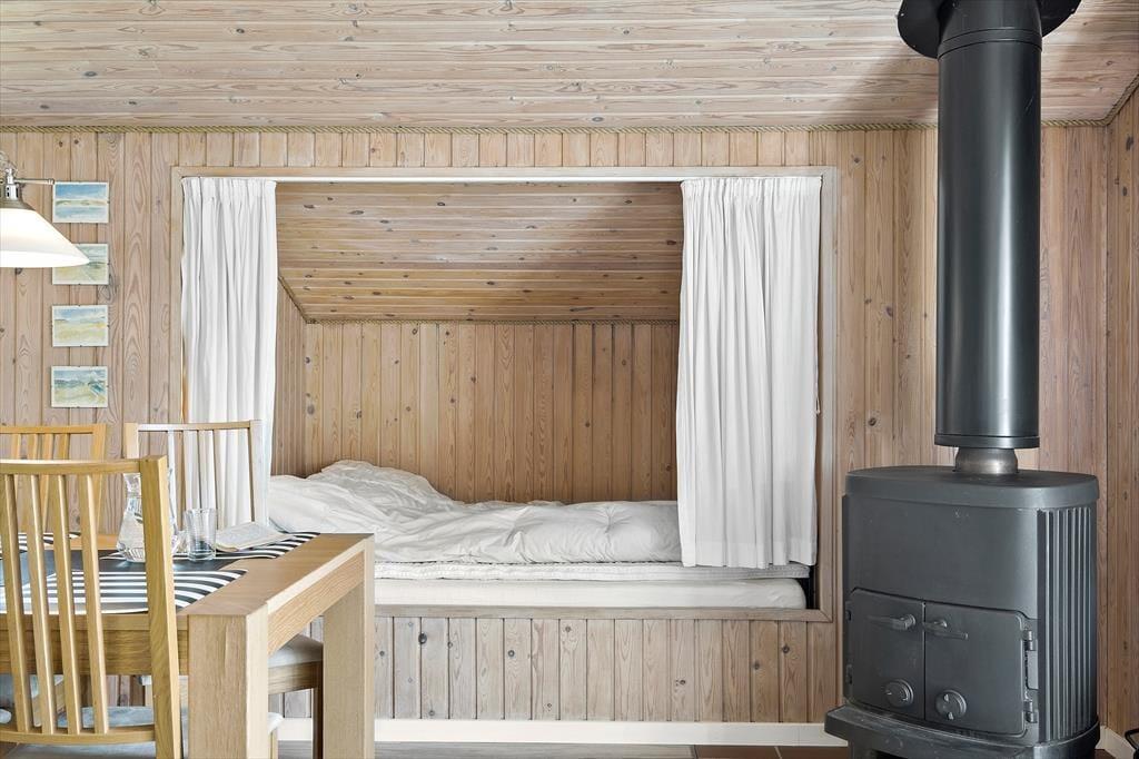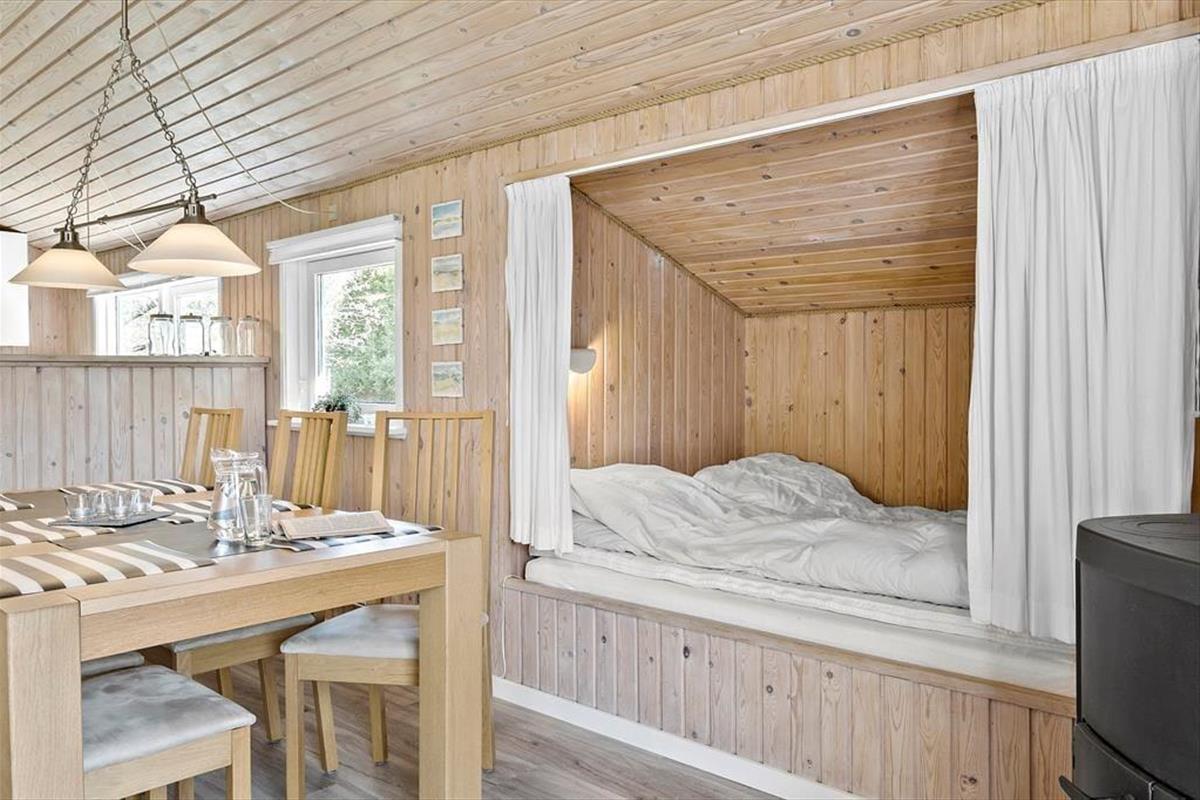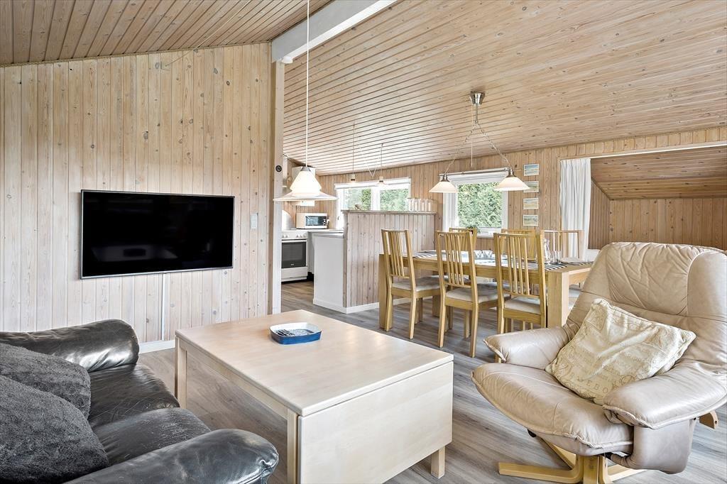 Ein typisch dänisches Ferienhaus mit hellen Wänden, hohen Decken und Platz für sechs Personen. Eine warme einladende Einrichtung und mit einem prasselndem Feuer im Kamin wird schnell eine gemütliche Atmosphäre im ganzen Haus verbreitet. Die Küche ist offen mit dem Essbereich und dem Wohnzimmer kombiniert. Drei Schlafzimmer und das Badezimmer mit Sauna gehen vom Flur ab. Im Wohnzimmer befindet sich außerdem eine Schlafnische mit Matratzen - ideal für ein Nickerchen oder eine Höhle für Kinder, in der sie spielen und entspannen können. Ebenfalls ist kostenloses WLAN vorhanden, also packen Sie Ihr Tablet oder Ihren Laptop ein, um sich über Aktivitäten und die Region zu informieren.