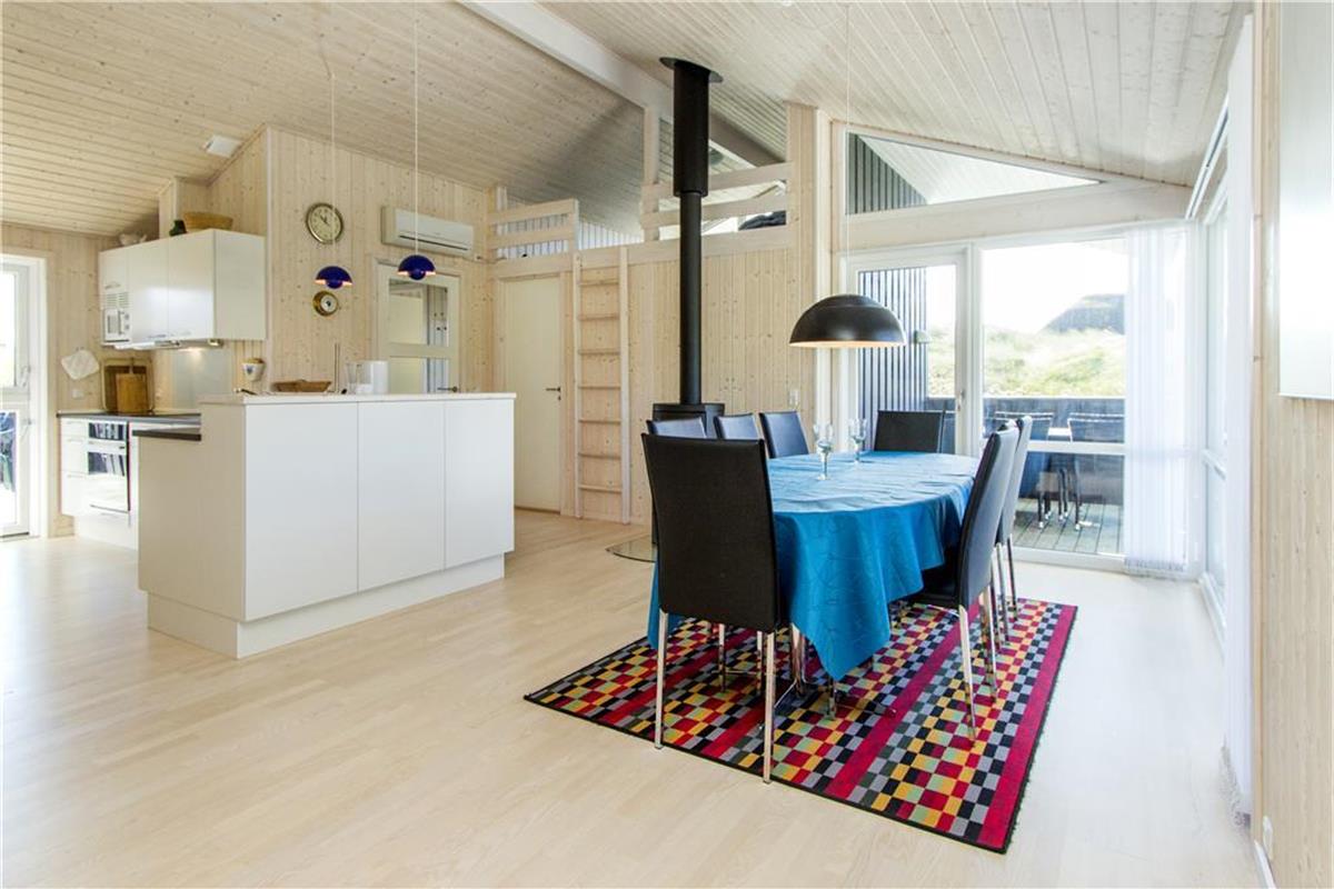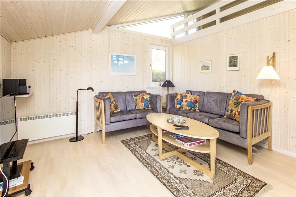 Das schöne Dünengrundstück ist mit Dünengras und Heidebüschen bedeckt, die es im barschen Klima mit Sand, Salz und Wind gut aushalten. Windgeschützt steht das Haus durch einen Dünenhügel. Von einer Bank lassen sich der dänische Sommer und das Rauschen der Nordsee unweit des Hauses genießen. Gemütliche Stunden tagsüber und abends lassen sich auf den beiden Terrassen nach Süden und Westen verbringen.