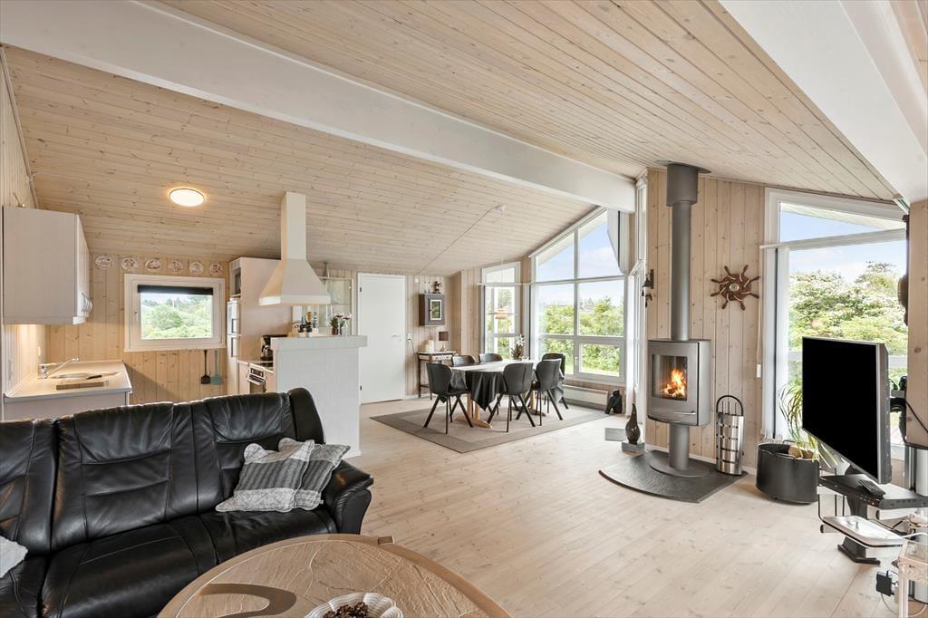 Dieses Ferienhaus ist die ideale Wahl für einen erholsamen und romantischen Urlaub zu Zweit. Der Wohnbereich besticht mit einer warmen und gemütlichen Wohnatmosphäre und zahlreichen geschmackvollen Einrichtungsdetails. Das Feuer im schönen Kamin zaubert eine wunderbare Stimmung, die viele unvergessliche Urlaubsstunden verspricht. Der offene Aufenthaltsbereich beinhaltet die Küche, den Essplatz und den Wohnraum. Die Schlafplätze verteilen sich auf drei Schlafräume. Hinzu gesellen sich ein Badezimmer mit Whirlpool, Sauna, Dusche und Toilette und ein Gäste-WC mit Dusche. Die großen Fenster tauchen den Wohnraum in ein wunderbares Licht und die guten, komfortablen Polstermöbel laden zu entspannten Stunden mit einem guten Buch und einem frischen Kaffee ein. Dieses Ferienhaus bildet einen perfekten Rahmen für eine Urlaub, bei dem das Beisammensein, die Gemütlichkeit und die Erholung oberste Priorität genießen.
