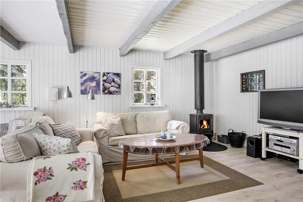 Wenn du das Ferienhaus betrittst, wirst du von einem hellen und geräumigen Wohnzimmer empfangen, in dem der Kamin eine gemütliche und warme Atmosphäre an kühleren Abenden schafft. Hier kannst du dich in bequemen Möbeln entspannen, vielleicht ein gutes Buch lesen oder den Abend mit der Familie genießen. Der offene Grundriss bietet viel Platz, um zusammen zu sein, ob beim Reden, Spielen von Brettspielen oder Filme schauen. Das Wohnzimmer ist der perfekte Ort für Entspannung und Gemütlichkeit. Neben dem Wohnzimmer findest du den gemütlichen Annex, der ein eigenes WC hat und zusätzliche Privatsphäre bietet – ideal für eine kleine Familie oder als Rückzugsort, wenn du etwas Zeit für dich selbst haben möchtest.