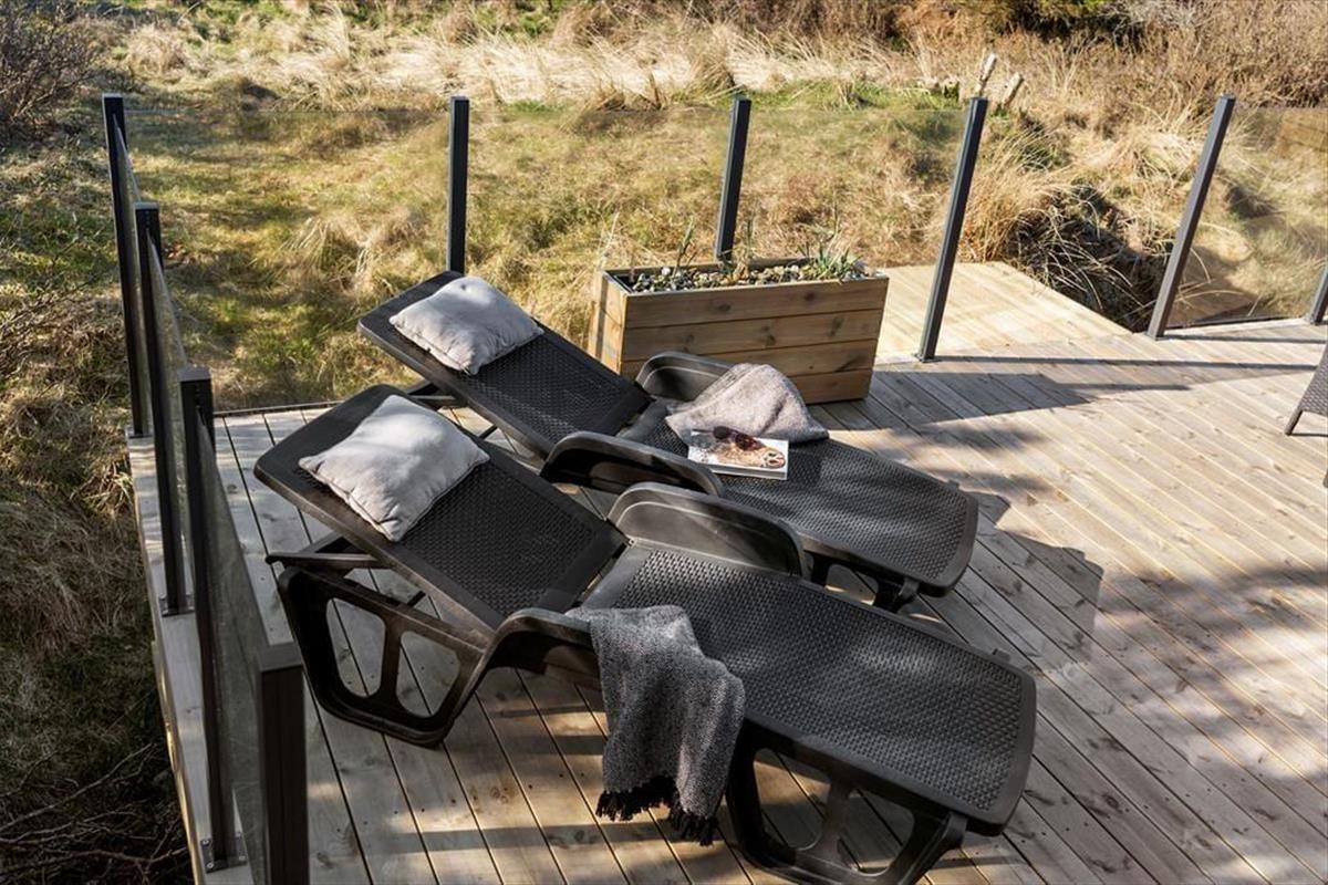 Dieses wunderschöne Ferienhaus auf einem hügeligen Grundstück bietet den perfekten Rahmen für einen entspannten Urlaub mit Familie und Freunden. Der helle, offene Wohn-Essbereich mit hohen Decken ist ein fantastischer Treffpunkt, an dem du leckere Mahlzeiten zubereiten kannst, während der Kaminofen an kühleren Tagen eine besonders gemütliche Atmosphäre schafft. Das Ferienhaus ist komfortabel und einladend eingerichtet, was es ideal für Entspannung und gemeinsames Beisammensein macht. Die schönen Terrassen rund um das Haus bieten zahlreiche Möglichkeiten, die Sonne den ganzen Tag über zu genießen, sei es beim Entspannen mit einem guten Buch oder beim Genießen einer Tasse Kaffee in netter Gesellschaft.