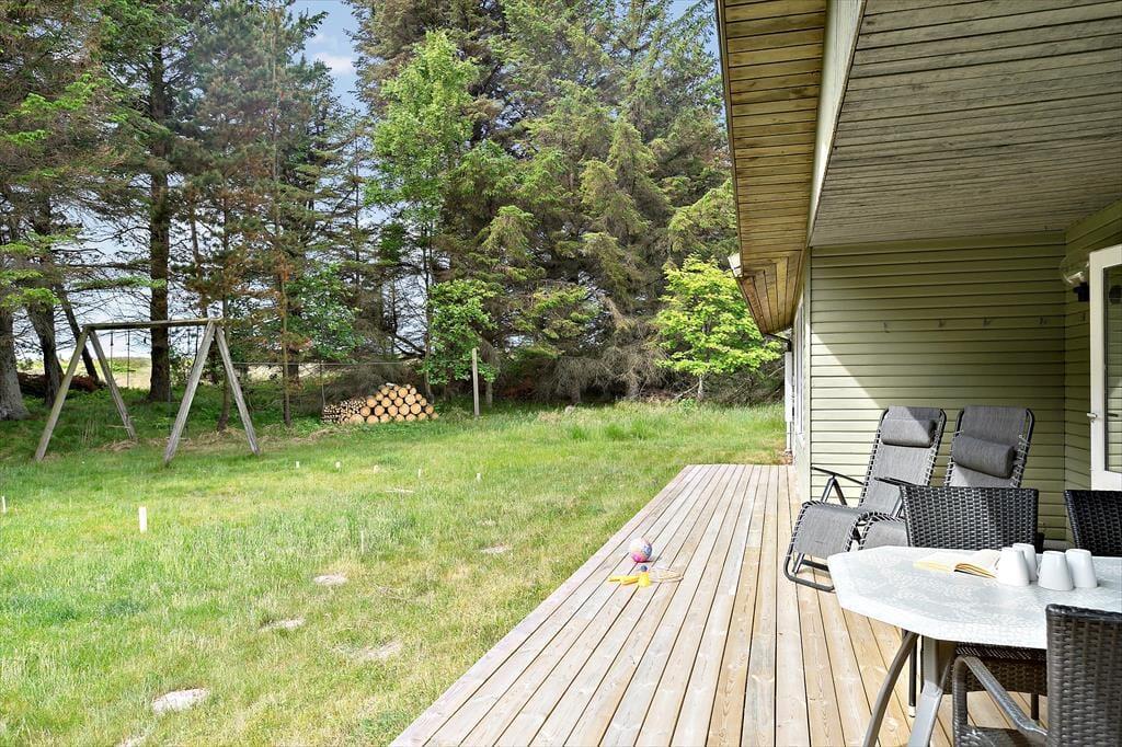 Das Ferienhaus ist von einem schönen Naturgrundstück umgeben, das zu Spiel, Entspannung und Outdoor-Aktivitäten einlädt. Es gibt viel Platz für Ballspiele und entspannte Stunden in der Sonne. Das große Grundstück ermöglicht es dir, den Tag in Ruhe zu genießen, und am Abend kannst du draußen sitzen und die frische Luft und die Ruhe der Umgebung genießen. Hier kannst du wirklich entspannen und neue Energie tanken – egal, ob du ein gutes Buch liest, die Natur erkundest oder einfach Zeit mit der Familie in friedlicher Umgebung verbringst.