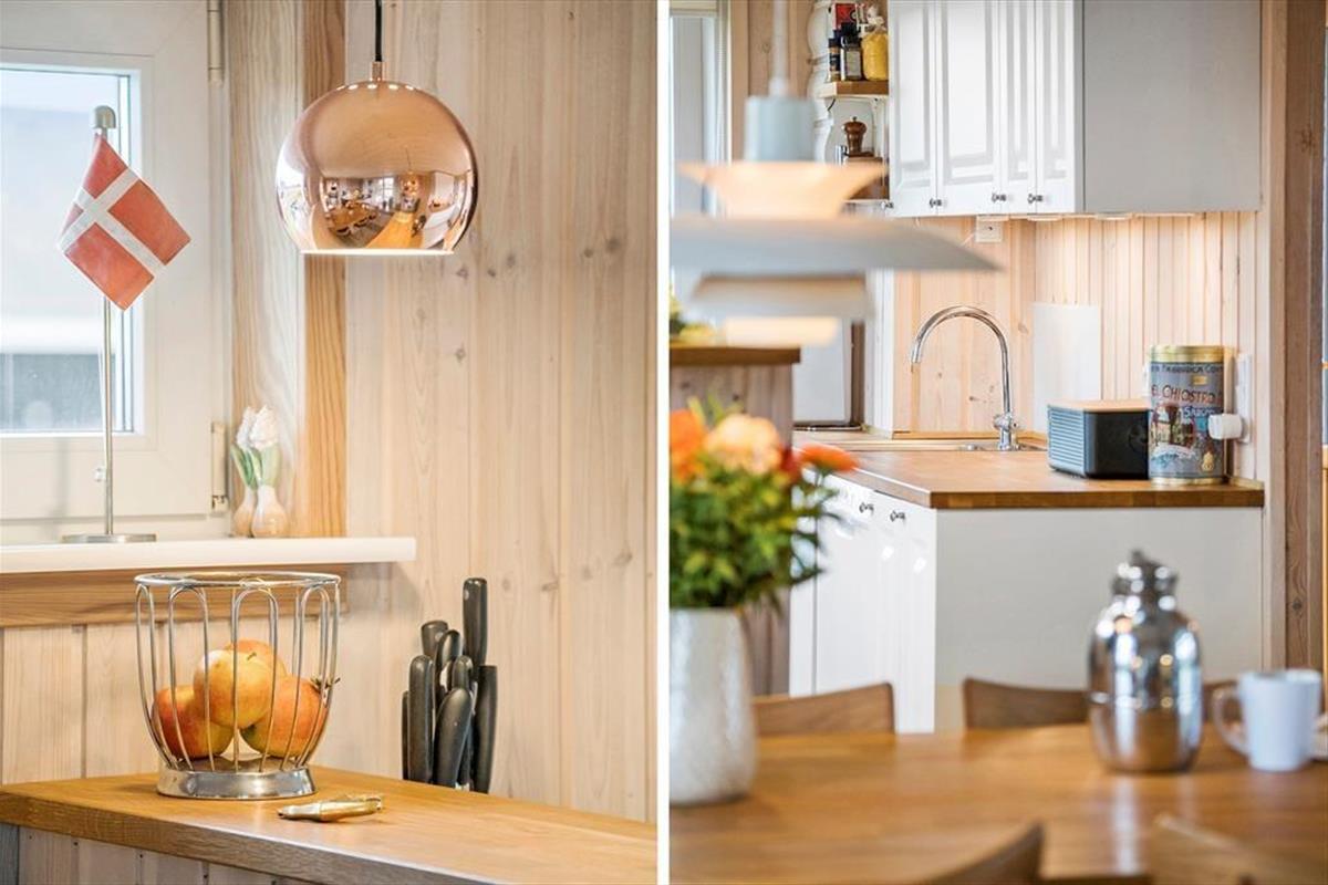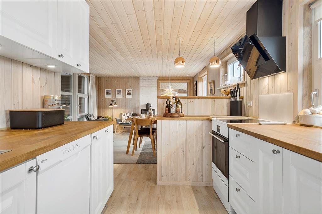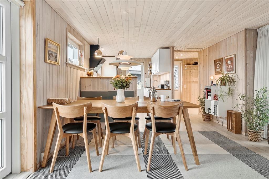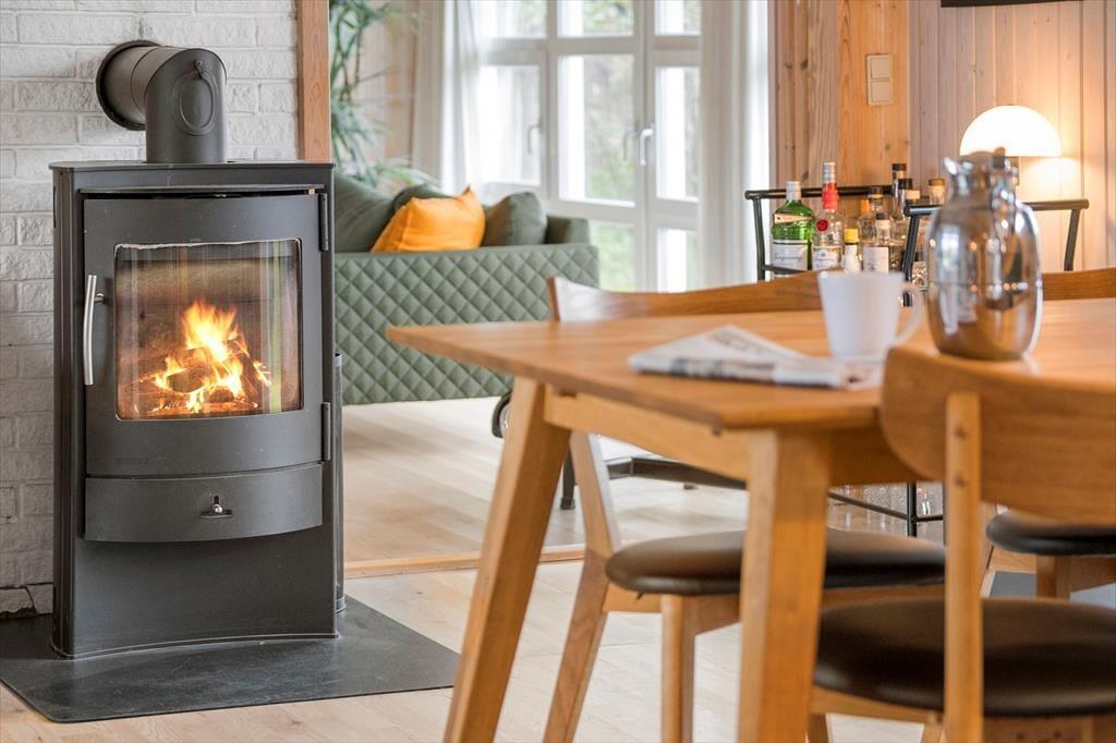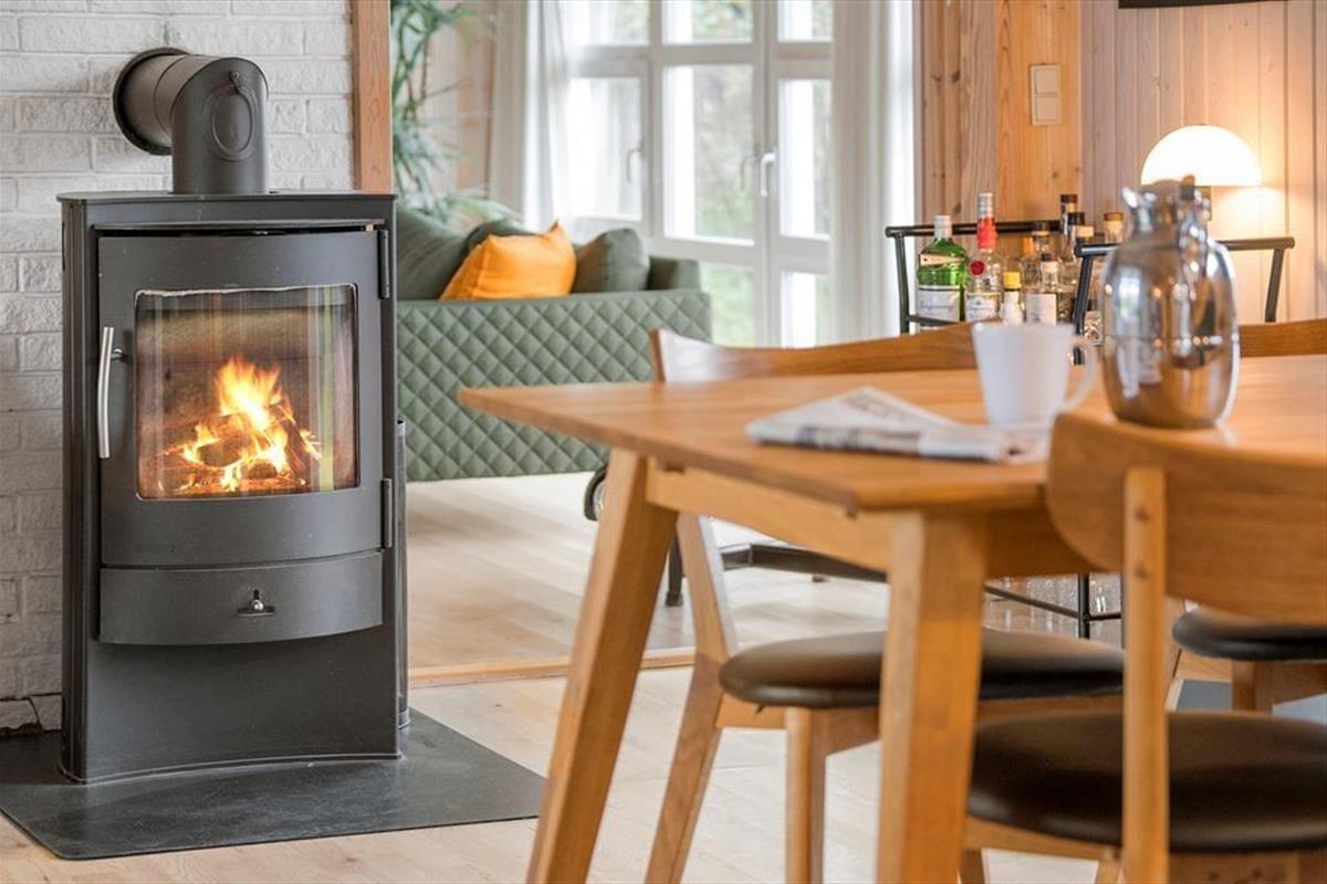 Wenn du das Ferienhaus betrittst, wirst du von einem großzügigen und lichtdurchfluteten Küchen-/Wohnbereich begrüßt, in dem der stilvolle Kaminofen eine gemütliche und einladende Atmosphäre schafft, wenn du dich dort versammelst. Hier ist genug Platz für die ganze Familie, um zusammen zu sein – sei es am Esstisch, auf dem Sofa im Wohnzimmer oder während der Zubereitung der Mahlzeiten in der gut ausgestatteten Küche. Die schönen, renovierten Details des Hauses und der Charme schaffen ein Gefühl von Luxus und Gemütlichkeit, und die großen Fenster lassen das Licht und die Atmosphäre der Natur ins Haus. Mit Platz zum Entspannen und gemeinsamen Erleben ist dieses Ferienhaus wirklich ein Ort, der zu gemeinsamen Erlebnissen einlädt.
