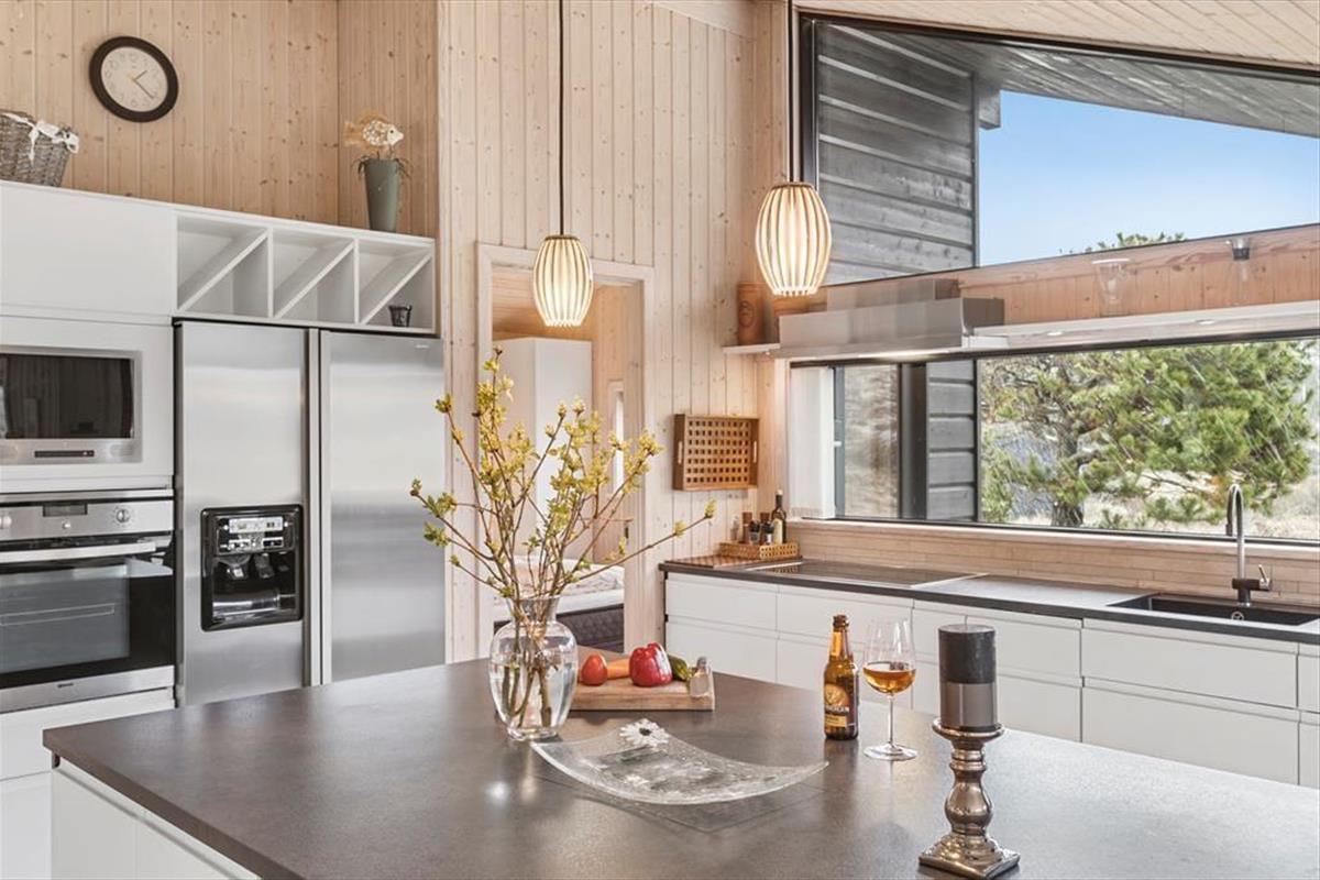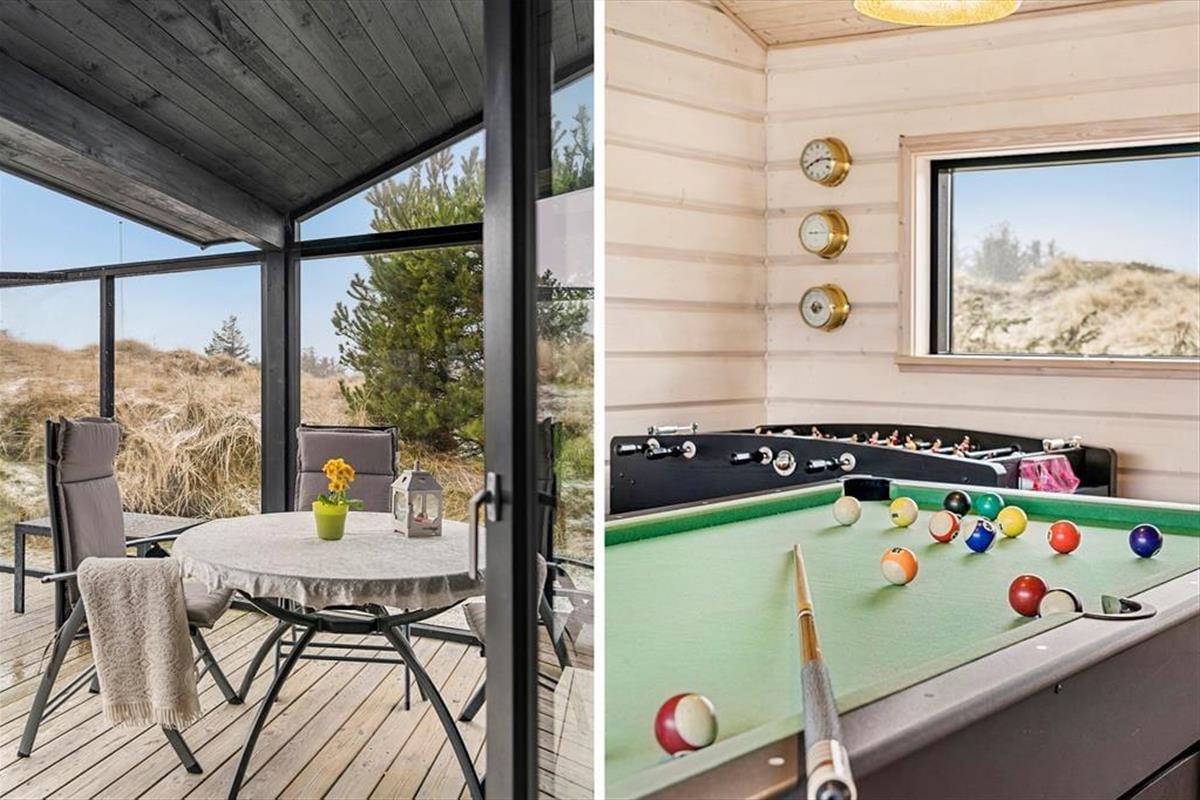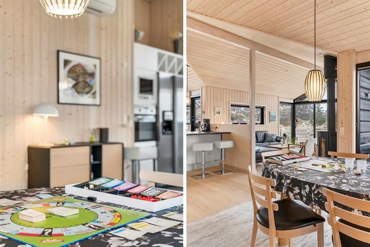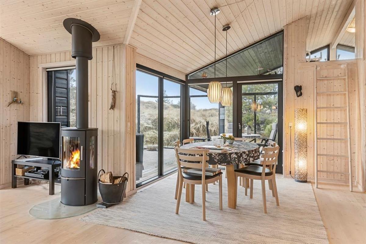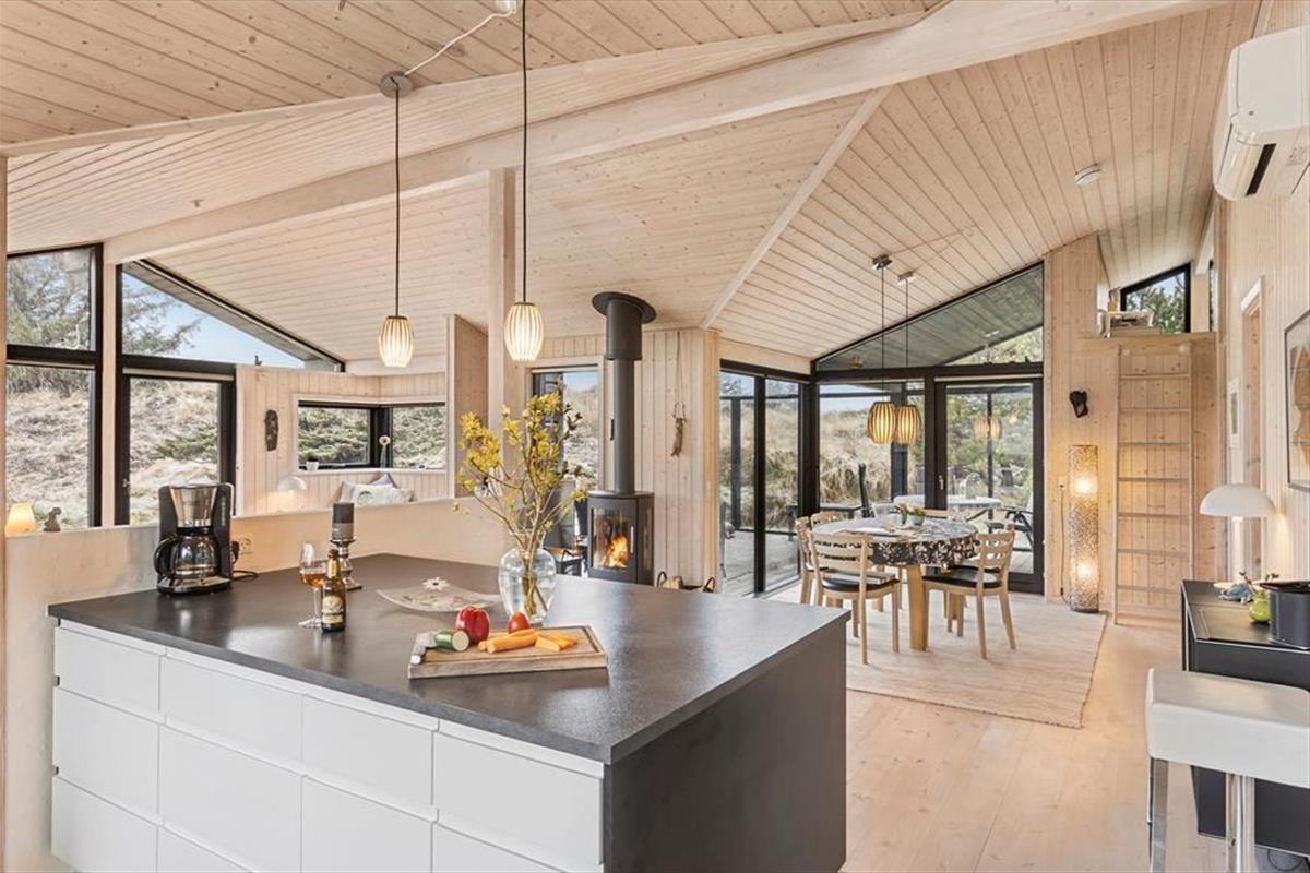 Dieses wunderschöne Ferienhaus in der Lärkevej 29 bietet dir ein unvergleichliches Ferienerlebnis. Das offene Wohnzimmer, das sich nahtlos mit dem großzügigen Küchen- und Essbereich verbindet, lädt zu gemütlichen Momenten mit der Familie ein, während die wohlige Wärme des Kaminofens den Raum erfüllt. Hier gibt es genug Platz für ruhige Stunden und gemeinsames Beisammensein. Mit einer Leseecke, einem luxuriösen Badezimmer mit Sauna und Whirlpool sowie einem großen, einladenden Dachboden hast du alles, was du für einen unvergesslichen Urlaub benötigst. Das Haus liegt in Gehweite sowohl zum Blokhus Strand als auch zum gemütlichen Stadtzentrum und ist daher die ideale Basis für deinen Urlaub.