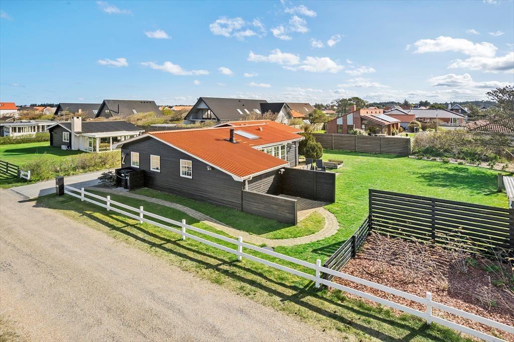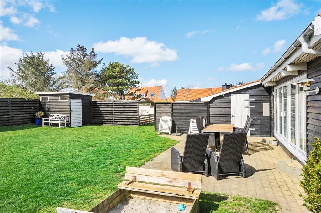 Das Ferienhaus verfügt über eine schöne Terrasse, auf der du die Sonne genießen und in der friedlichen Umgebung entspannen kannst. Die Terrasse ist der perfekte Ort, um morgens eine Tasse Kaffee oder abends ein Glas Wein zu genießen, während du die sanfte Brise des Meeres spürst. Der geschlossene Innenhof bietet noch mehr Privatsphäre, sodass du ungestört sitzen und die wunderschöne Natur um dich herum genießen kannst. Es ist ein fantastischer Ausgangspunkt, um Zeit im Freien in den malerischen Umgebung von Blokhus zu verbringen.