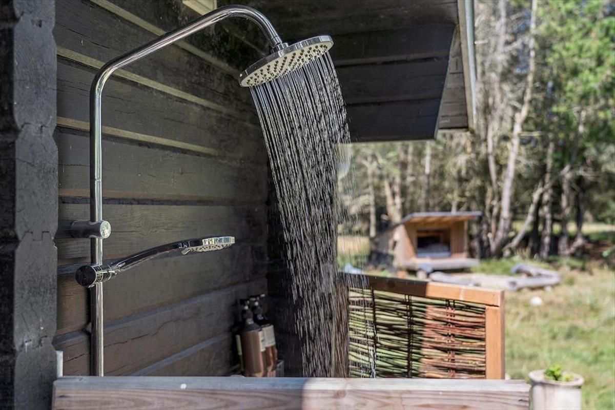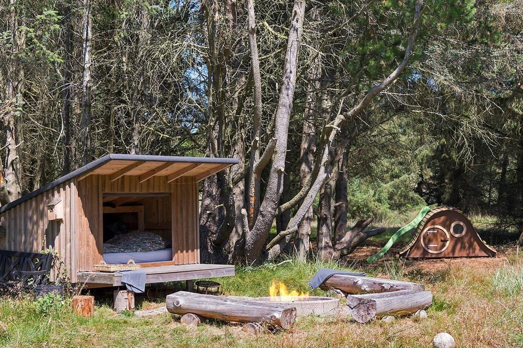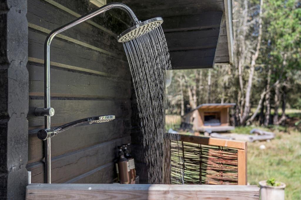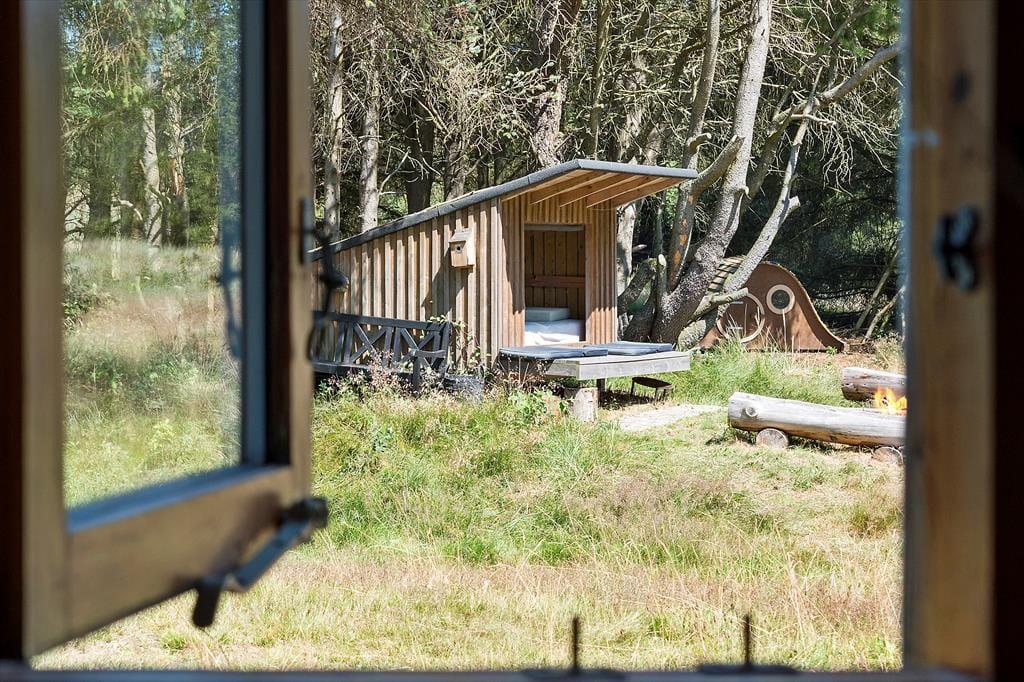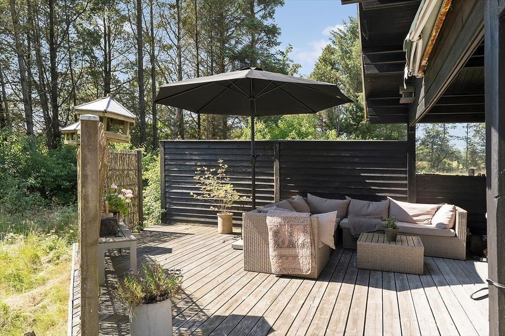 Draußen erwartet dich eine große Terrasse, auf der du den ganzen Tag in der Sonne genießen kannst. Die Terrasse ist ungestört und liegt auf einem naturnahen Grundstück, was dir den perfekten Rahmen für deinen morgendlichen Kaffee oder das Abendessen vom Grill bietet. Der private Innenhof ist der ideale Ort zum Entspannen und zur Ruhe zu kommen. Vom Ferienhaus aus ist es nur ein kurzer Spaziergang zu einem gemütlichen Shelterbereich, in dem du die wunderschöne Natur genießen und das Gefühl haben kannst, ganz nah an Wald und Meer zu sein. Am Abend kannst du auf der Terrasse sitzen und den Vögeln zuhören, während die Sonne untergeht.