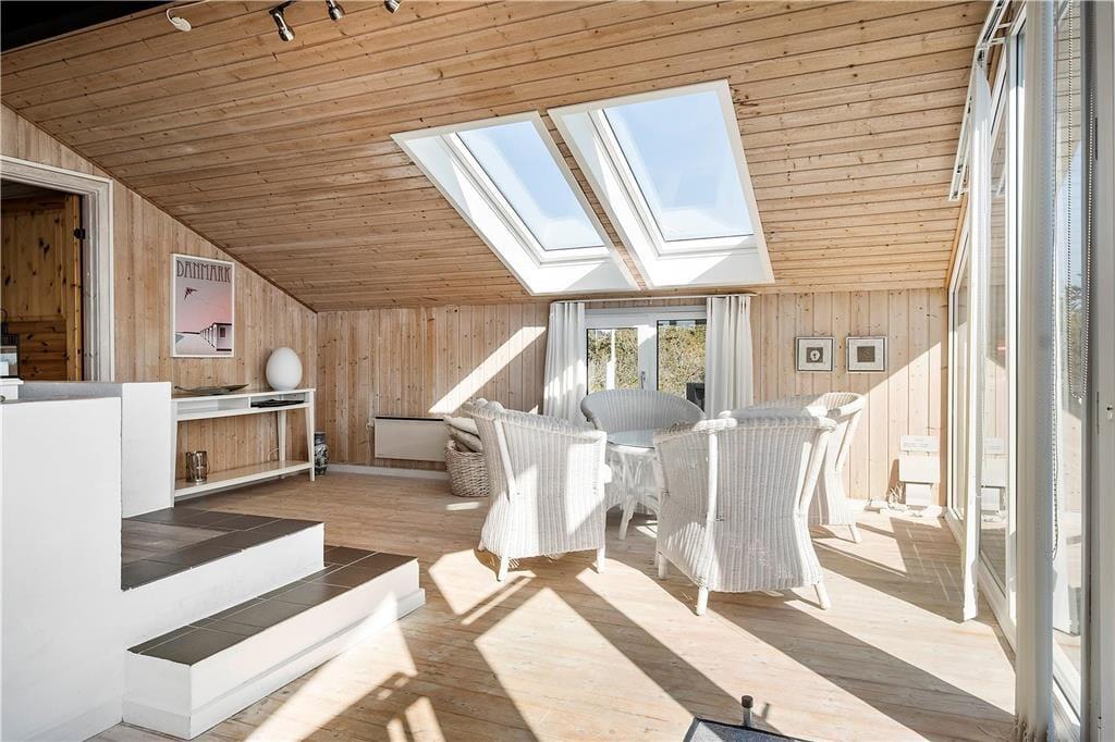 Beim Betreten wirst du von einem großen, offenen Raum mit wunderschönem Lichteinfall empfangen, der durch die großen Fenster strömt und das Haus mit Wärme und Licht erfüllt. Das Wohnzimmer lädt zum Entspannen vor dem Kaminofen ein, wo du an einem kühlen Abend die Wärme genießen kannst. Die offene Küche bietet die Möglichkeit, zusammen zu kochen, und von hier aus gelangst du auf die große Terrasse, wo du den ganzen Tag die Sonne genießen kannst. Das Haus verfügt auch über gemütliche Schlafzimmer, in denen du dich nach einem erlebnisreichen Tag erholen kannst.