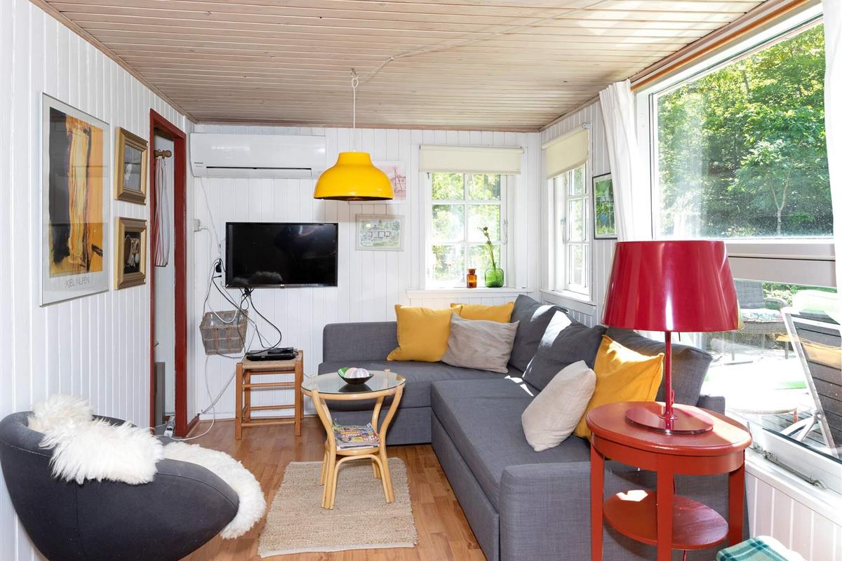 Und: Terrasse, überd. Terrasse, E-Heiz., Luft-Luft-Wärmepumpe, Grill, hügeliges Grundst. 1000 m2, gemischte Möblierung, Ferienhausgebiet, Nichtraucherhaus