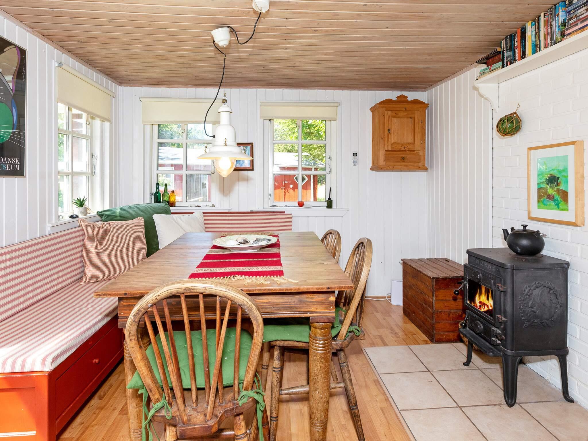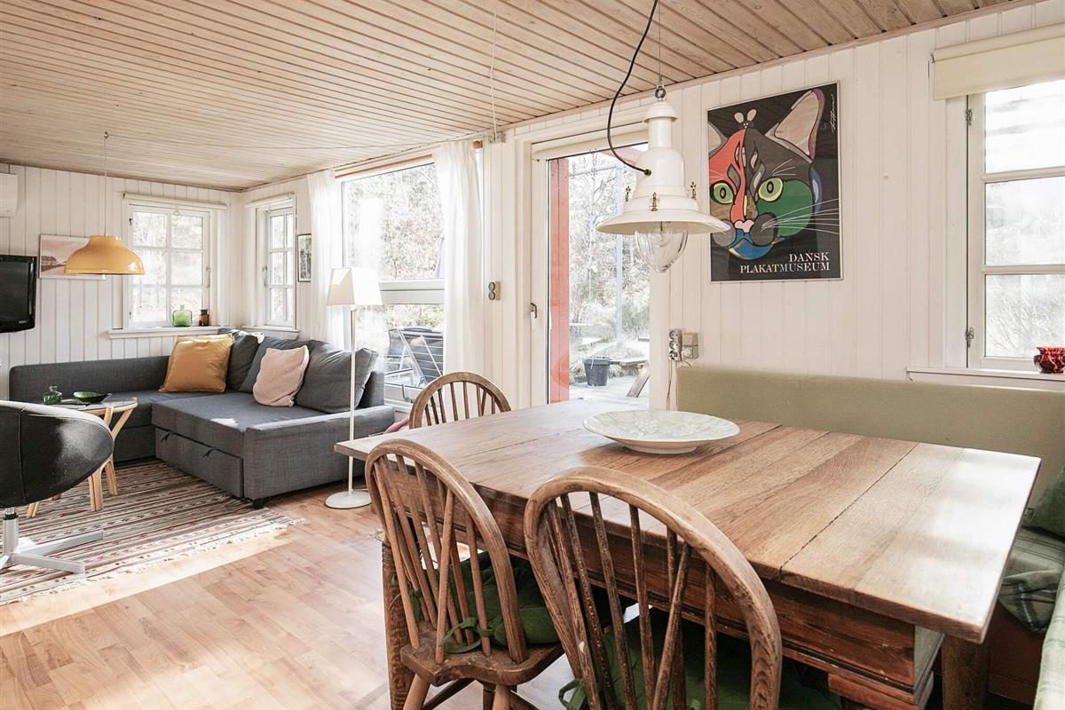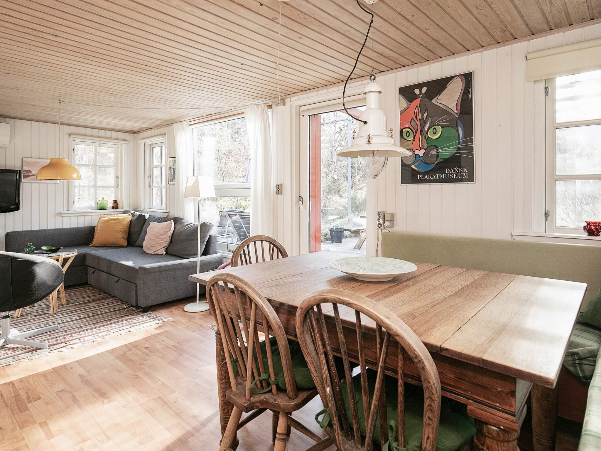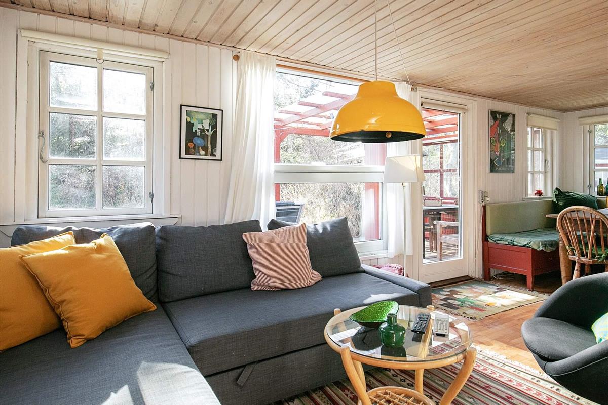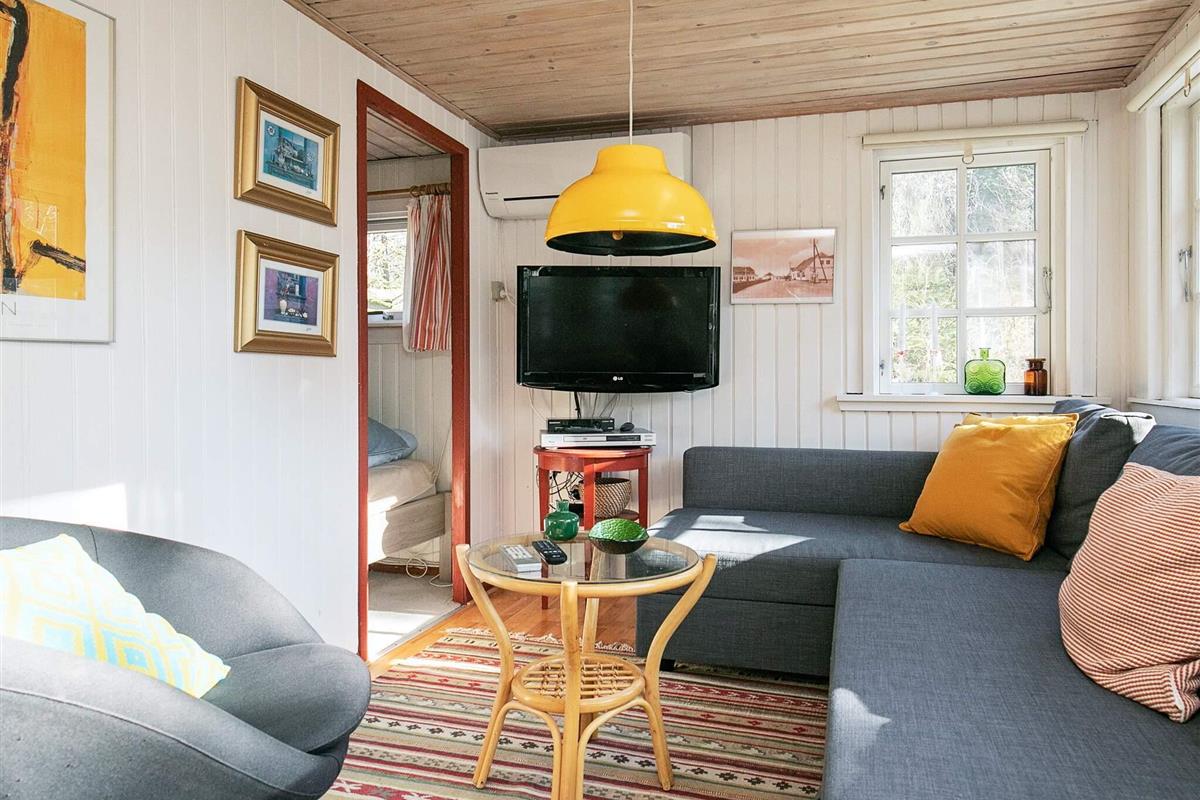 Im Haus offener Küchen-/Wohnbereich, ausgestattet mit u.a. TV mit einigen deutschen Sendern zur Auswahl, DVD-Player, Radio und WLAN. Es gibt auch einen Holzofen und eine energieeffiziente Wärmepumpe. Die Couch im Wohnbereich kann ggf. als Schlafplatz mit einer Liegefläche von 140x200 cm genutzt werden. Außerdem im Haus ein Schlafzimmer mit Doppelbett. Das Badezimmer mit Dusche/WC ist zudem mit angenehmer Fußbodenheizung ausgestattet. Nebenan auf dem Grundtück steht der kleinere Annex mit zwei Schlafzimmern mit je einem Doppelbett bereit.