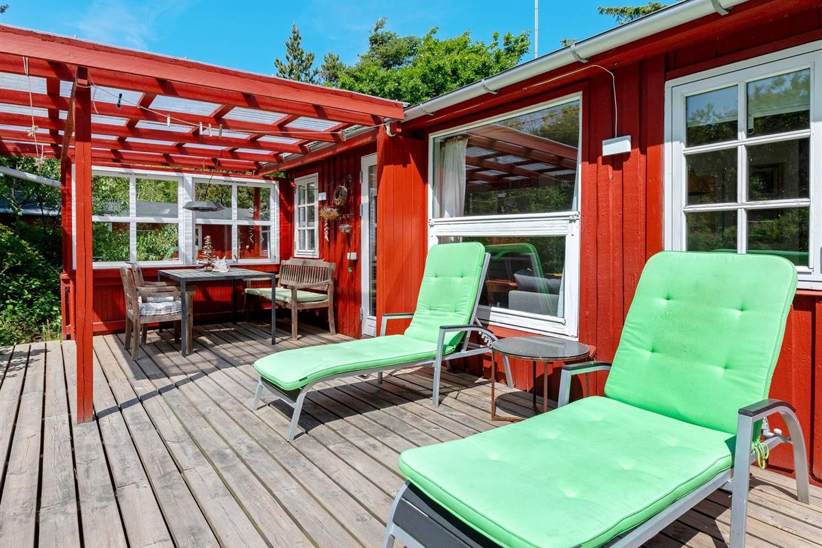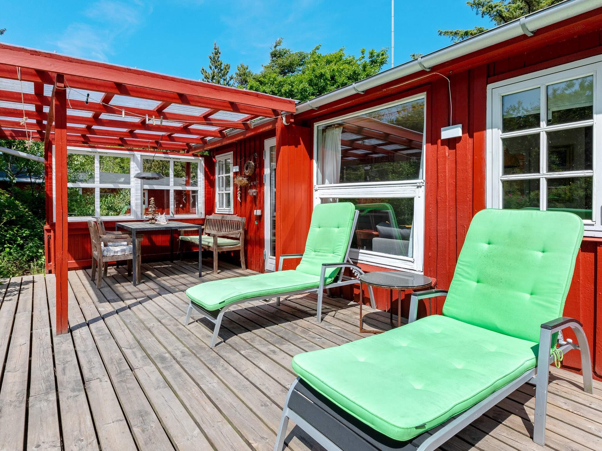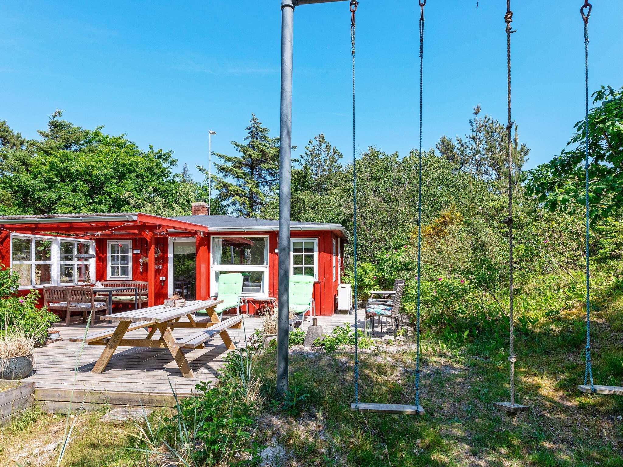 Die Sonnentage kann man draußen auf der 25 m² großen, offenen Terrassenfläche genießen. Für Kinder gibt es eine Schaukel. Das Ferienhaus liegt auf einem etwa 1.000 m² großen Naturgrundstück in einem Gebiet mit viel Wald und Plantagen. Dennoch sind es nur ca. 400 m zur Nordseeküste.