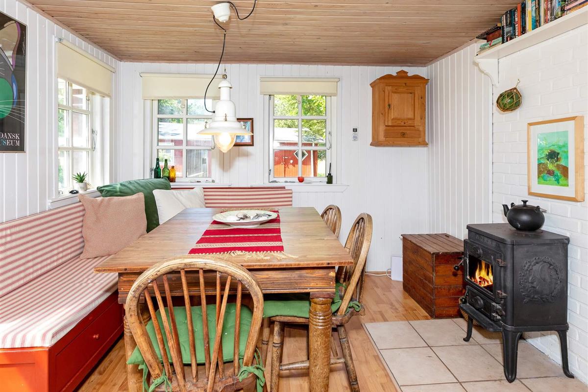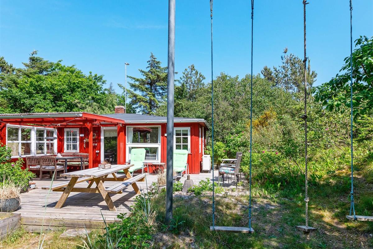 Kleineres Ferienhaus mit nostalgischem Charme. Steht auf einem gut abgeschirmten, hügeligem Naturgrundstück ganz in der Nähe des schönen Nordseestrands und des beliebten Ferienortes Blokhus.