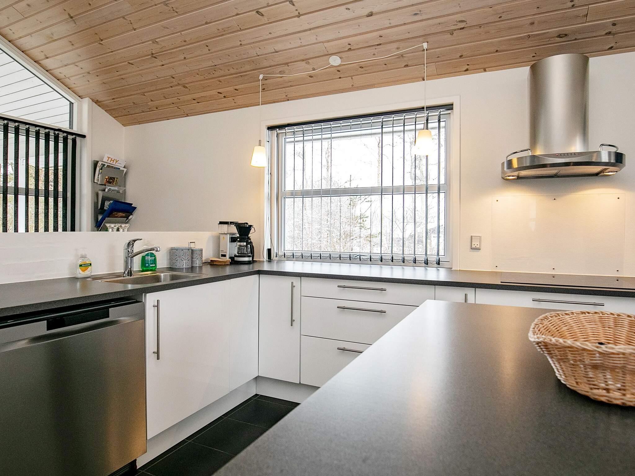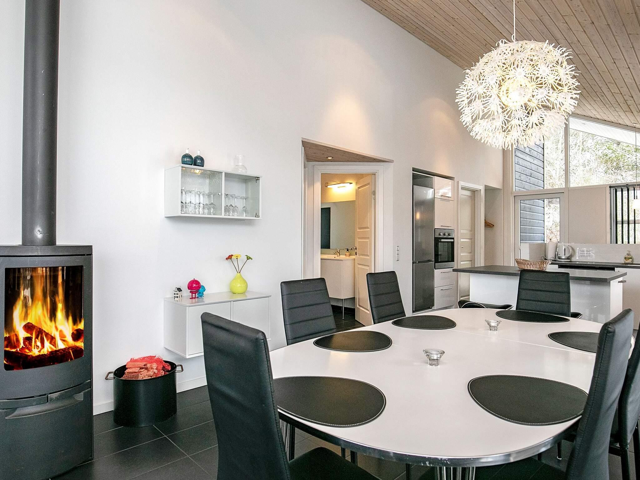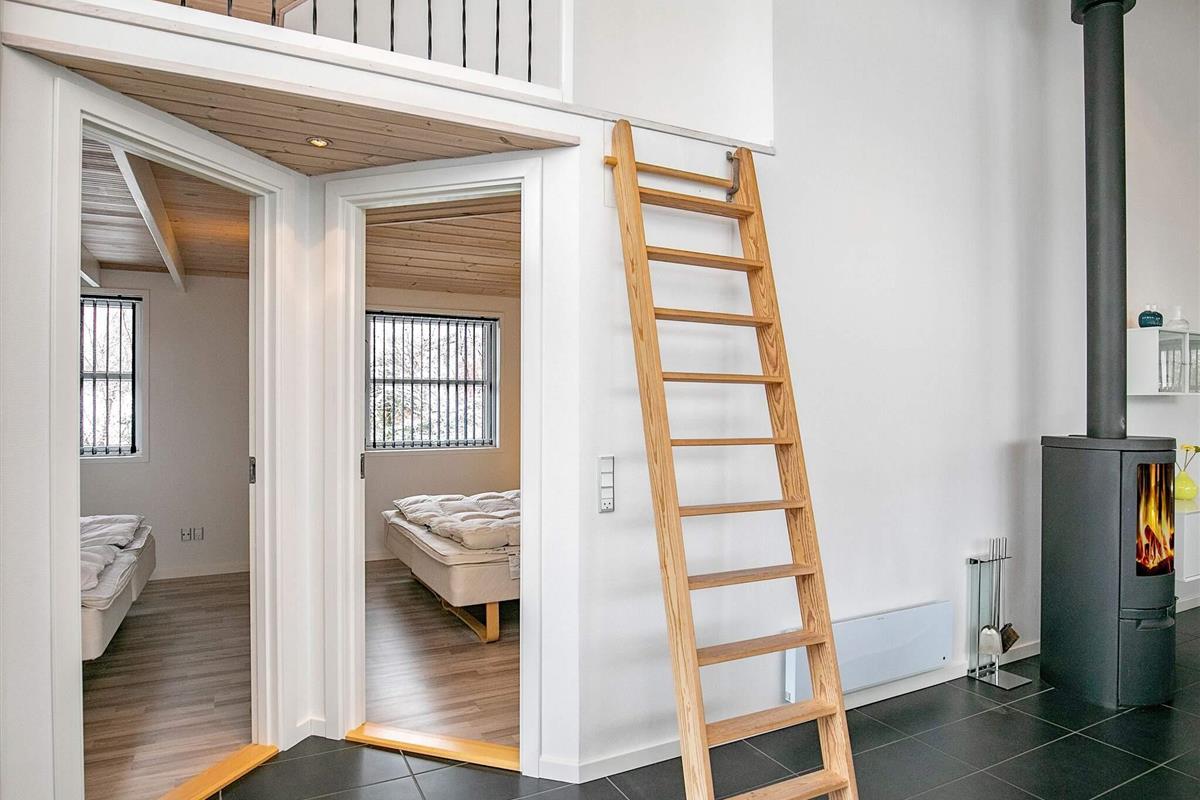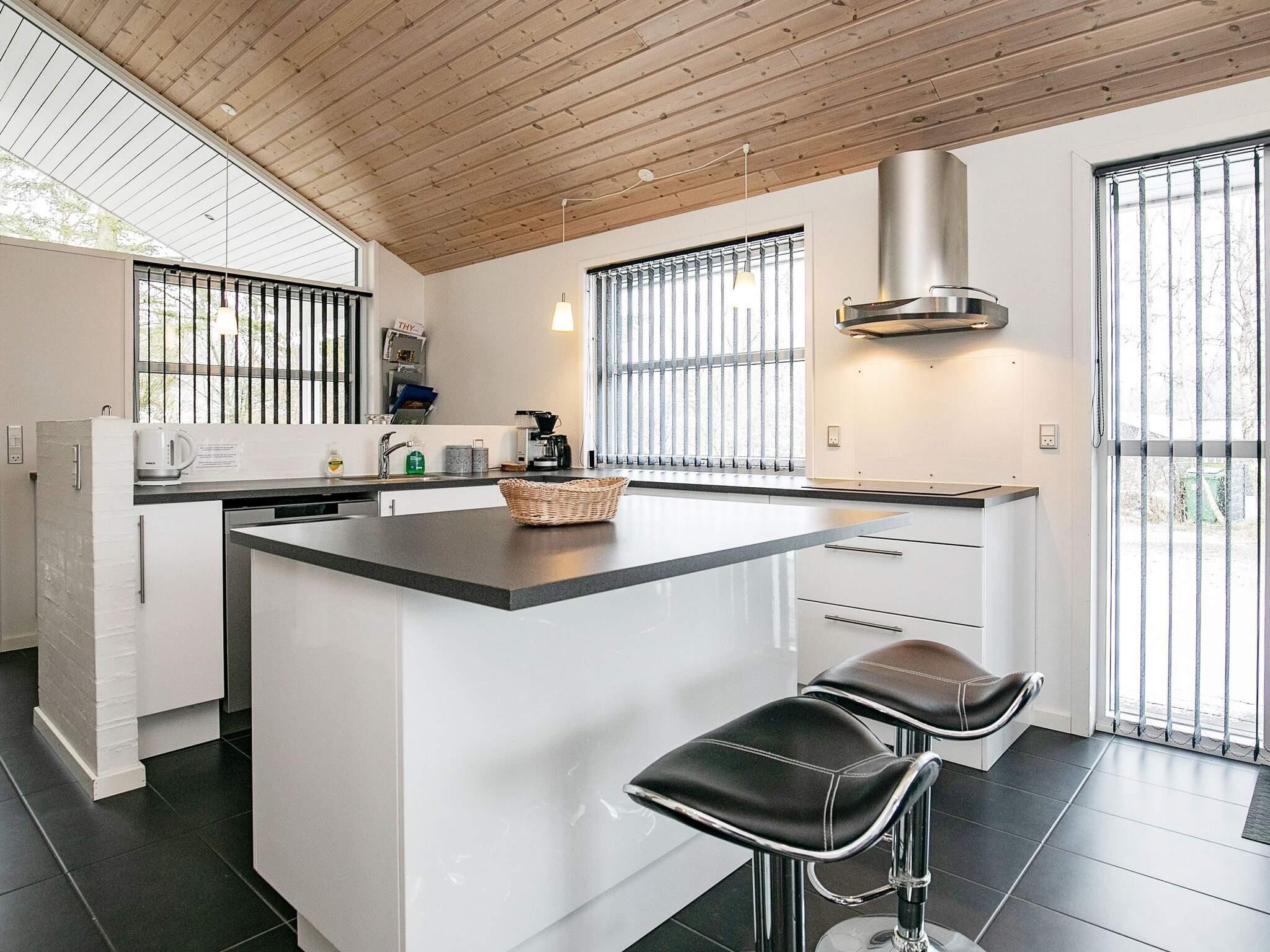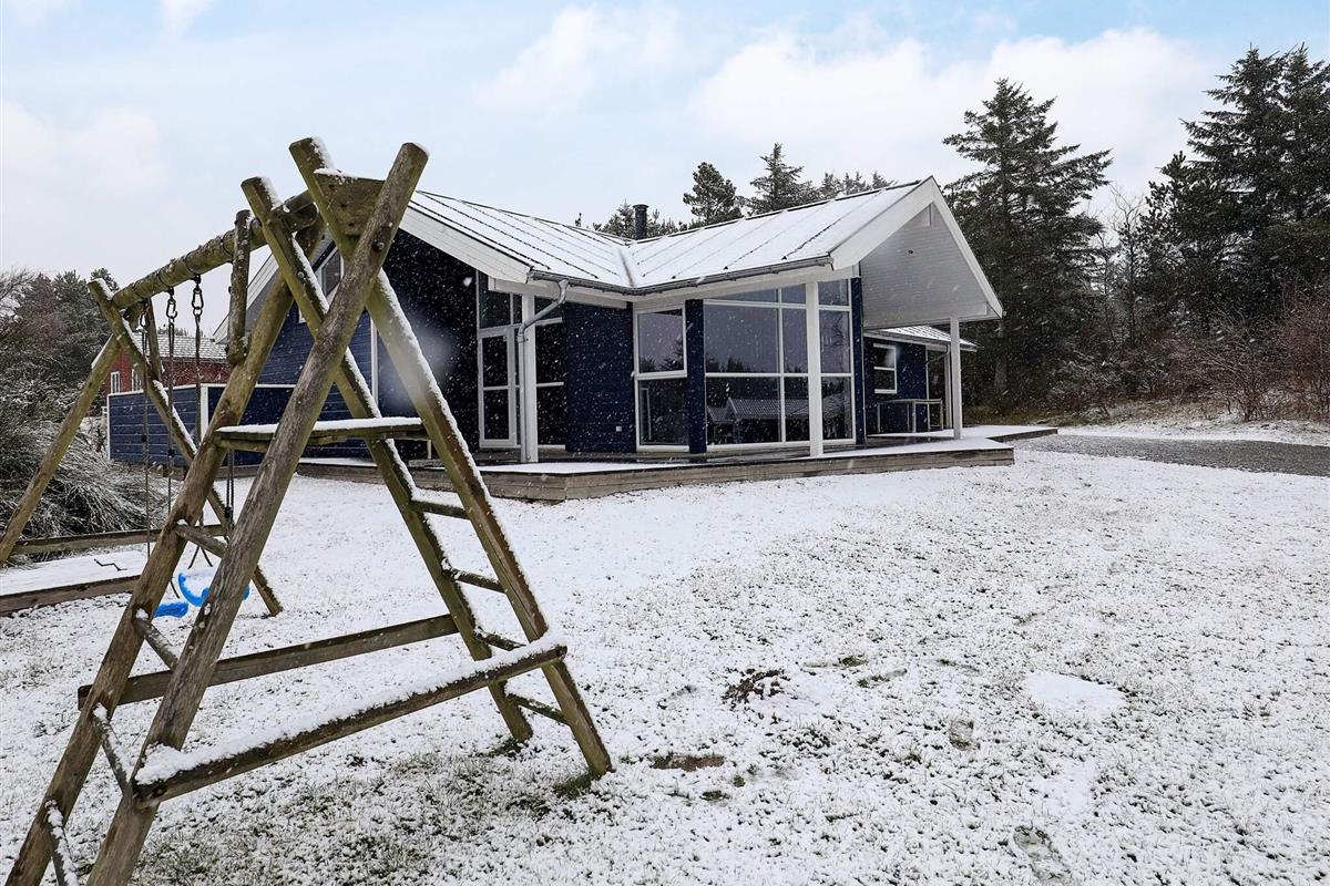 Ansprechendes Ferienhaus bei Blokhus, gut eingerichtet und hell und luftig gestaltet. Offener Küchen-/Wohnbereich für das Familienleben. Vom gemütlichen Wohnbereich hat man Zutritt zu einer schönen Terrassenfläche, die sich um das Haus herum erstreckt. Der Kaminofen des Hauses wurde mittig im Raum platziert, sodass das Feuer von mehren Seiten aus genossen werden kann.