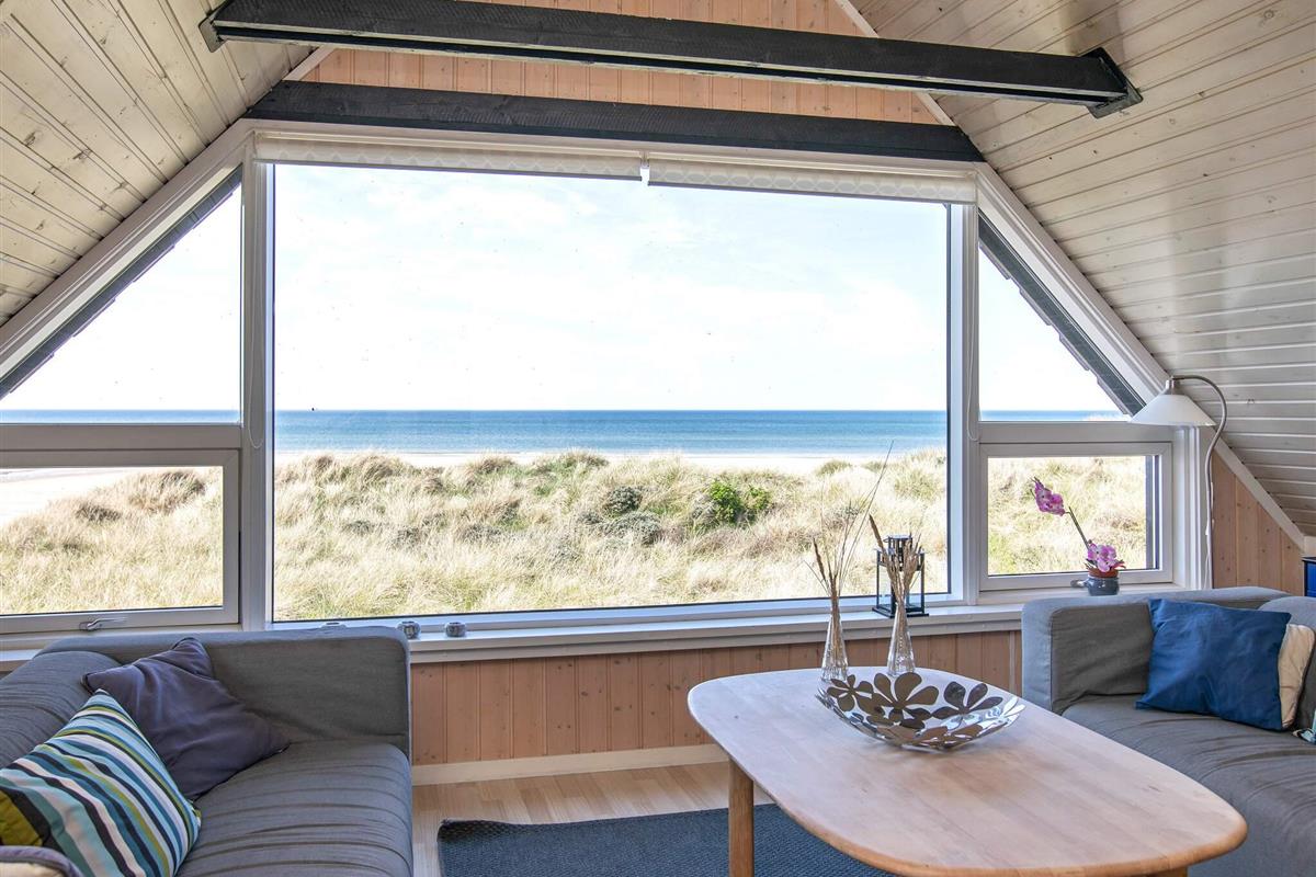 Die einzigartige Lage - mit nur 50 m Entfernung zu Strand und Meer und dem herrlichen Panoramablick über beides vom Wohnzimmer im 1. Stockwerk
