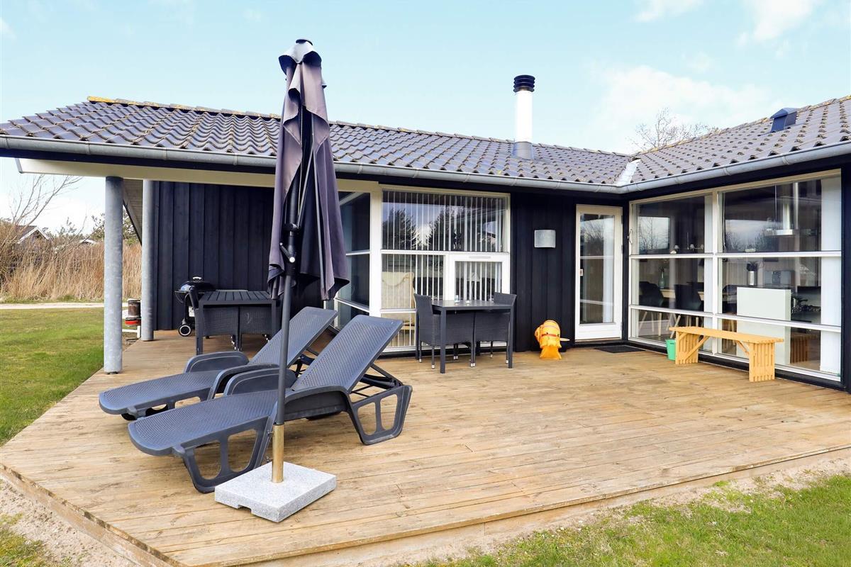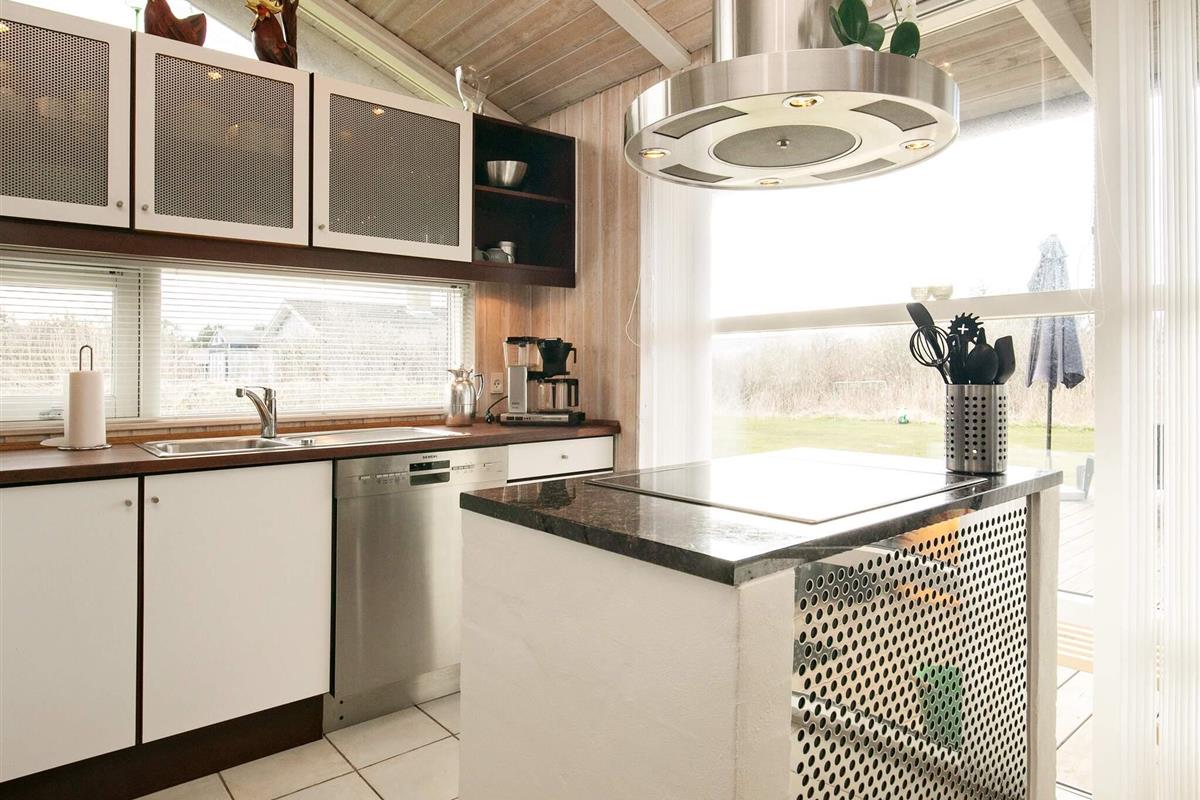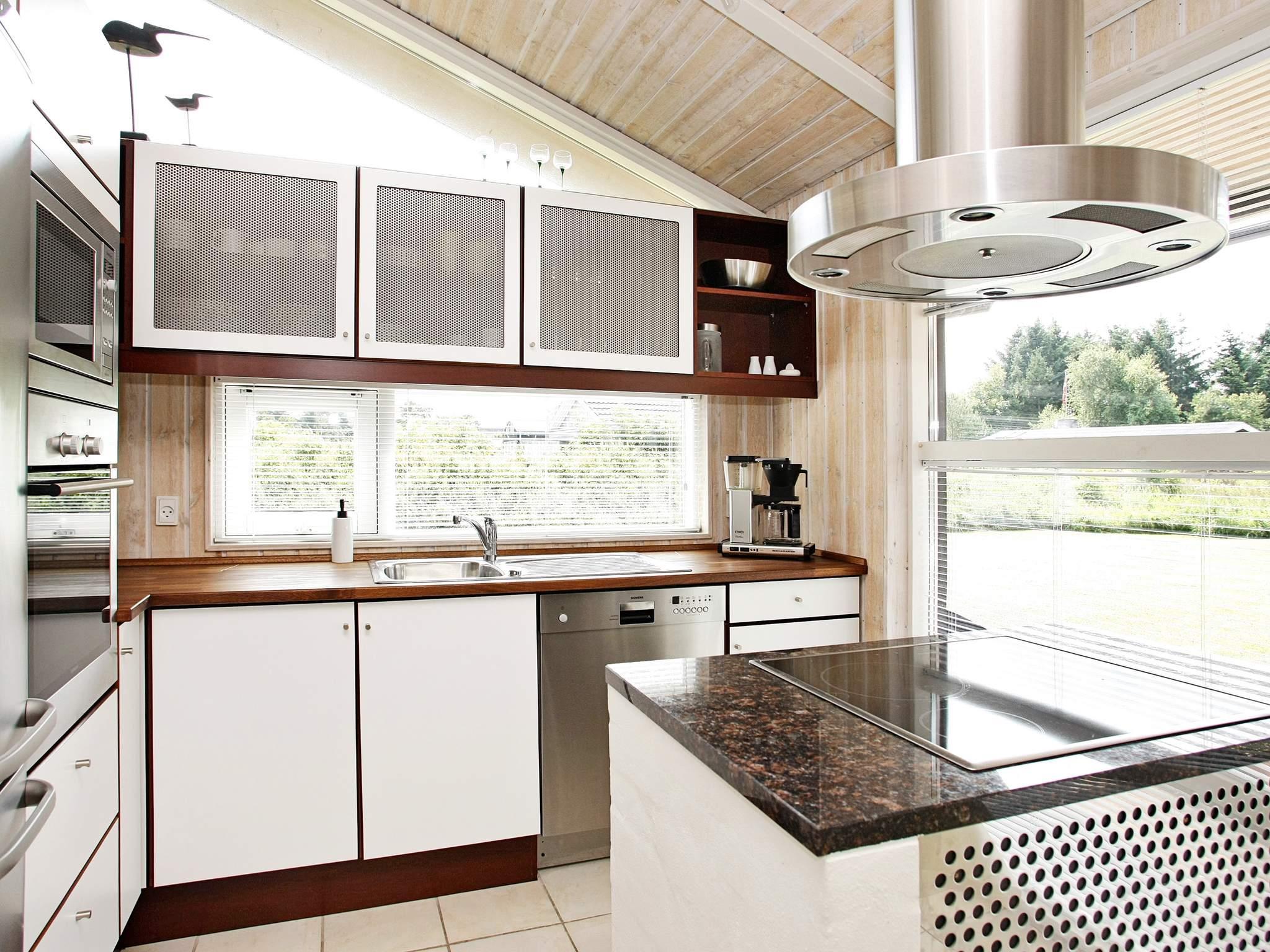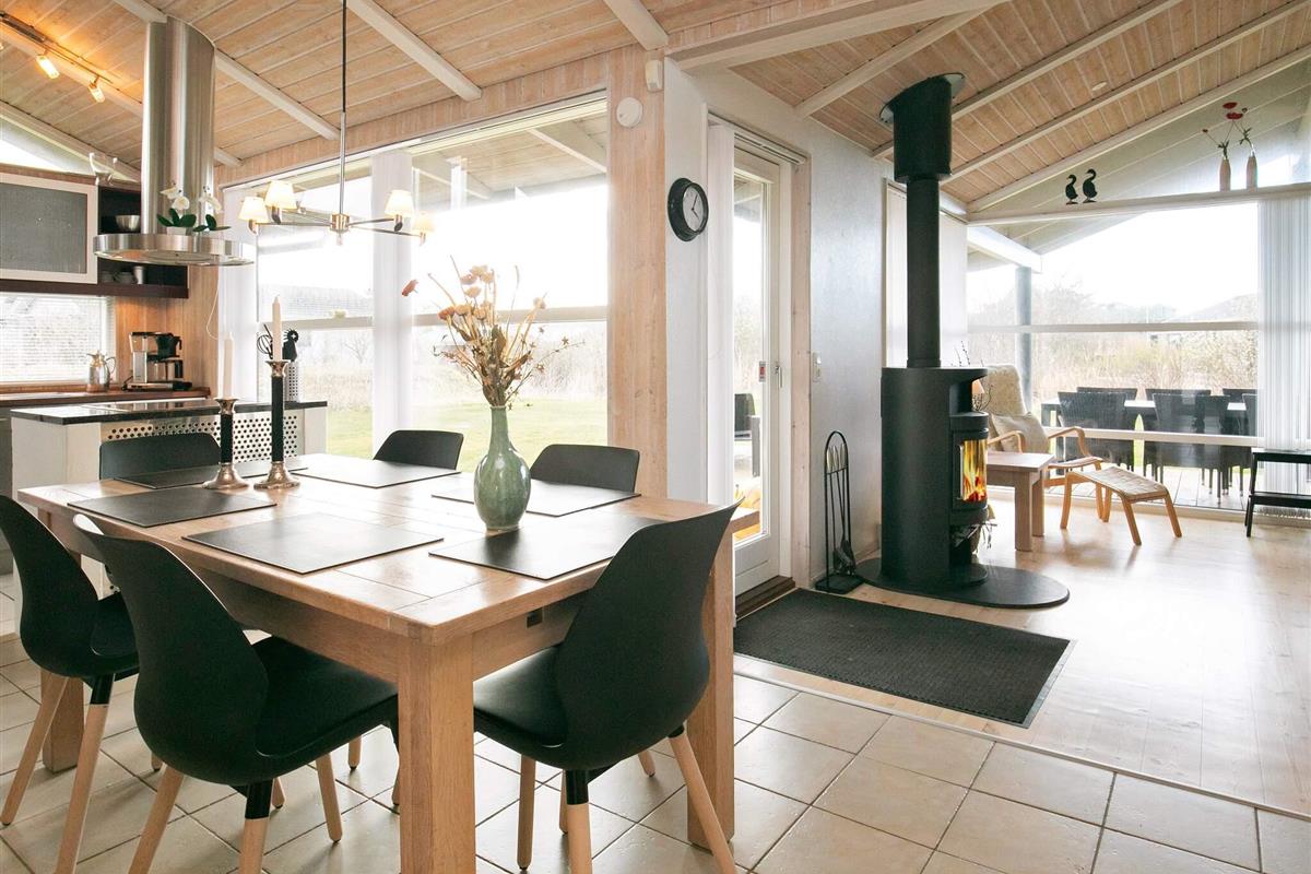 Ferienhaus in schöner Natur auf einem großen Naturgrundstück gelegen. Sollte es einmal zu kalt sein, um sich draußen aufzuhalten, kann die Natur durch die großen Panoramafenster des kombinierten Wohn-/Essbereiches genossen werden. Helle Farben und eine moderne Einrichtung verbreiten eine gute Stimmung im ganzen Haus und der Holzofen sorgt auch an kälteren Tagen für behagliche Wärme. Offene und überd. Terrasse mit Gartenmöbeln und Grill. Das Haus liegt zentral zu Einkaufsmöglichkeiten, Restaurants, Badestrand, Golfplatz und dem Vergnügungspark "Fårup Sommerland".