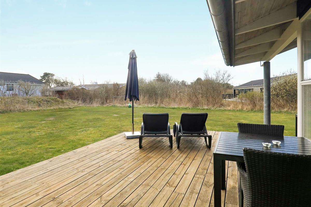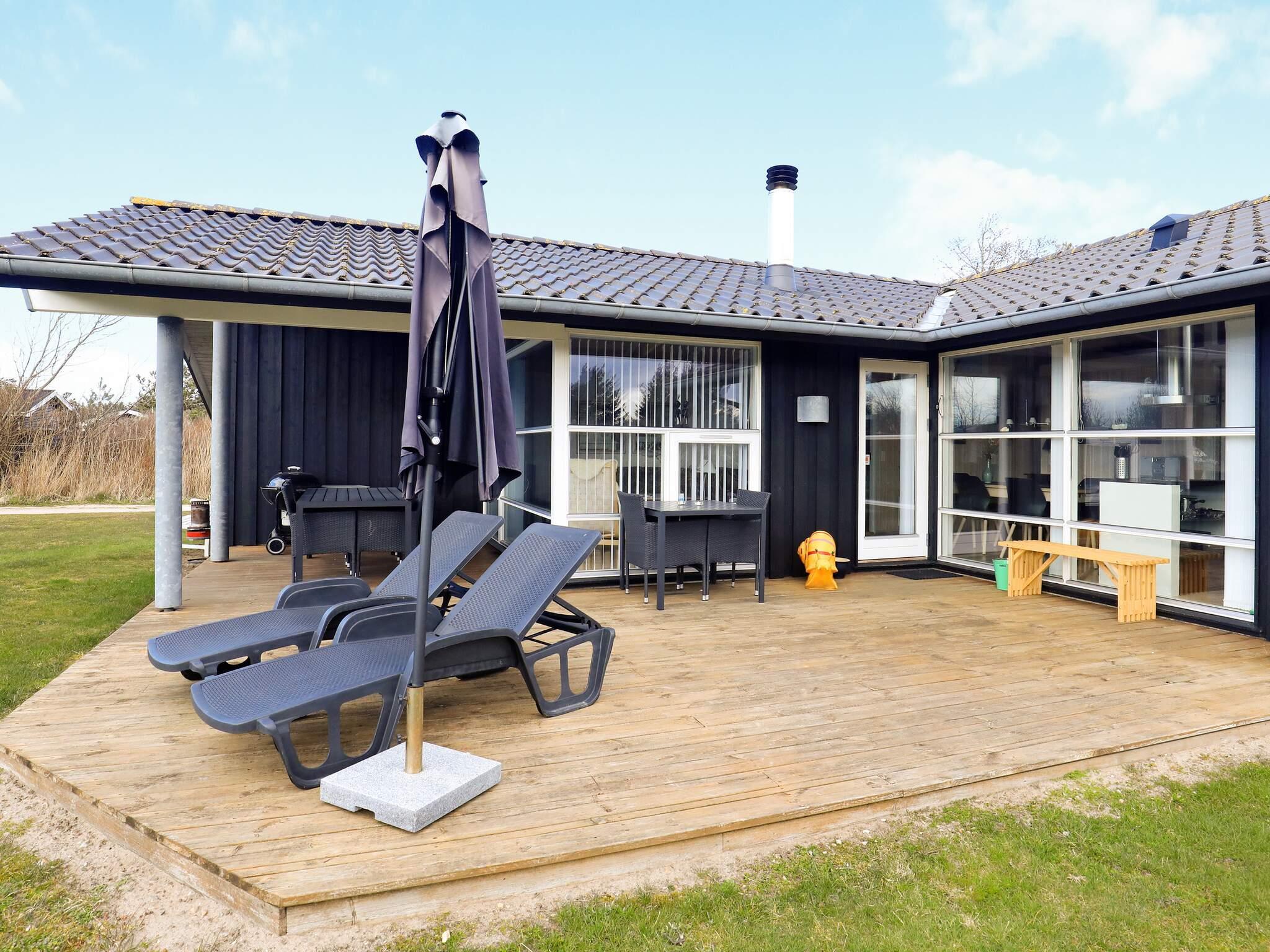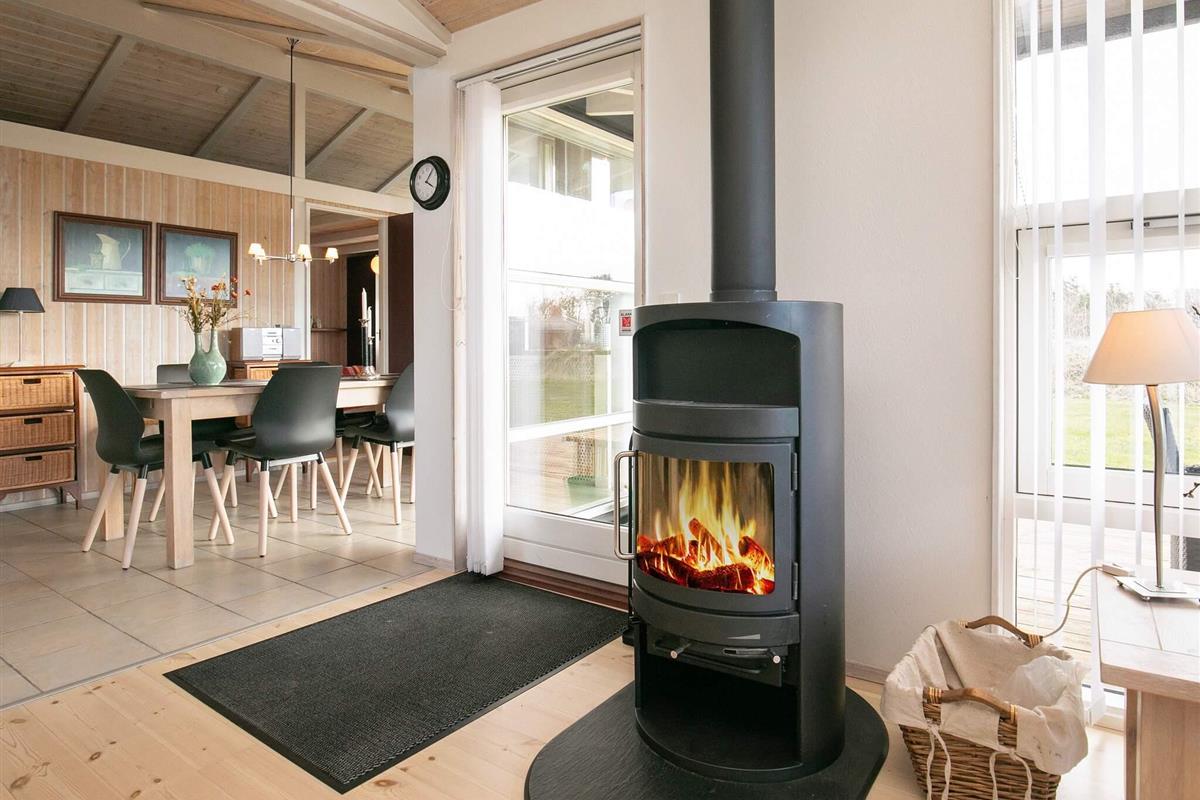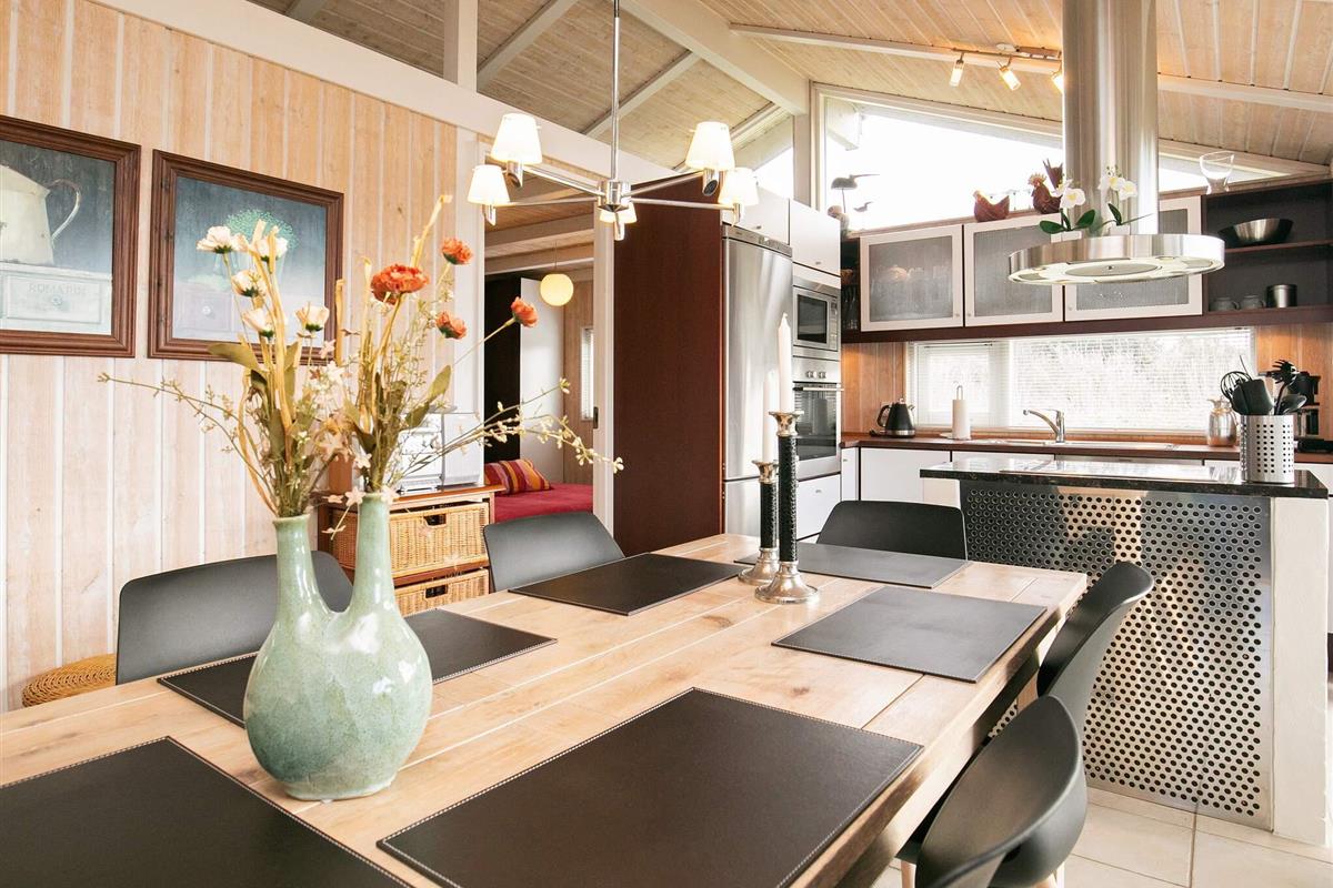 Ferienhaus in schöner Natur auf einem großen Naturgrundstück gelegen. Sollte es einmal zu kalt sein, um sich draußen aufzuhalten, kann die Natur durch die großen Panoramafenster des kombinierten Wohn-/Essbereiches genossen werden. Helle Farben und eine moderne Einrichtung verbreiten eine gute Stimmung im ganzen Haus und der Holzofen sorgt auch an kälteren Tagen für behagliche Wärme. Offene und überd. Terrasse mit Gartenmöbeln und Grill. Das Haus liegt zentral zu Einkaufsmöglichkeiten, Restaurants, Badestrand, Golfplatz und dem Vergnügungspark "Fårup Sommerland".