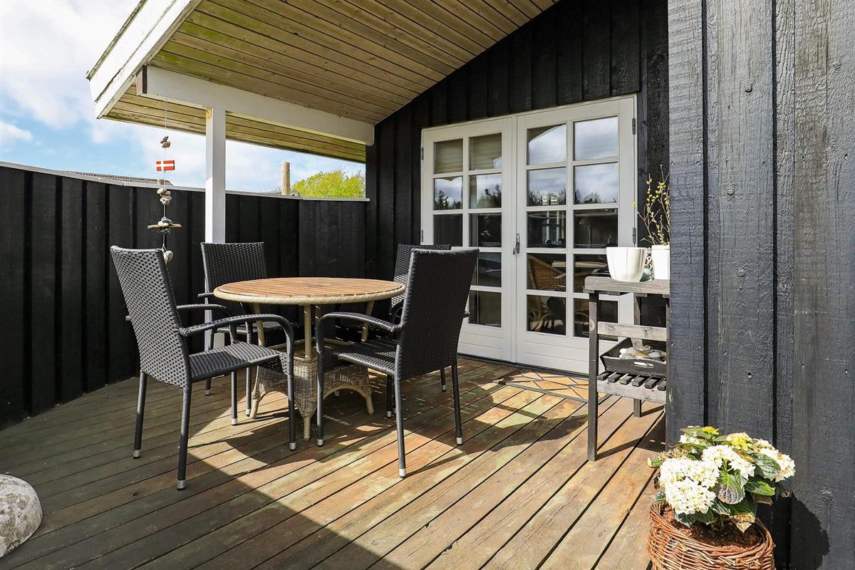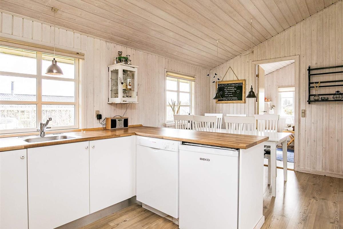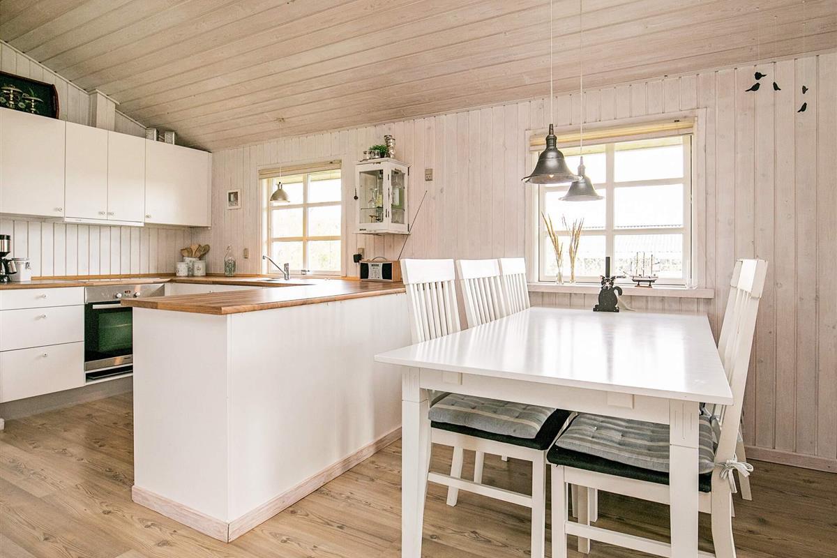 Helles, 1985 gebautes Ferienhaus, das laufend modernisiert wurde. Zu dem Haus gehören drei Schlafzimmer, eins mit Doppelbett, eins mit einem Etagenbett und eins mit zwei einzelnen Betten. Das WZ wurde mit Holzofen, Stereoanlage, TV (dänische Sender), DVD-Spieler und PlayStation eingerichtet. Auf der Terrasse können Sie geschützt sitzen, um die Sonne zu genießen. Der schöne Badestrand bei Blokhus, sowie der Ort selbst, sind gut mit dem Auto erreichbar.