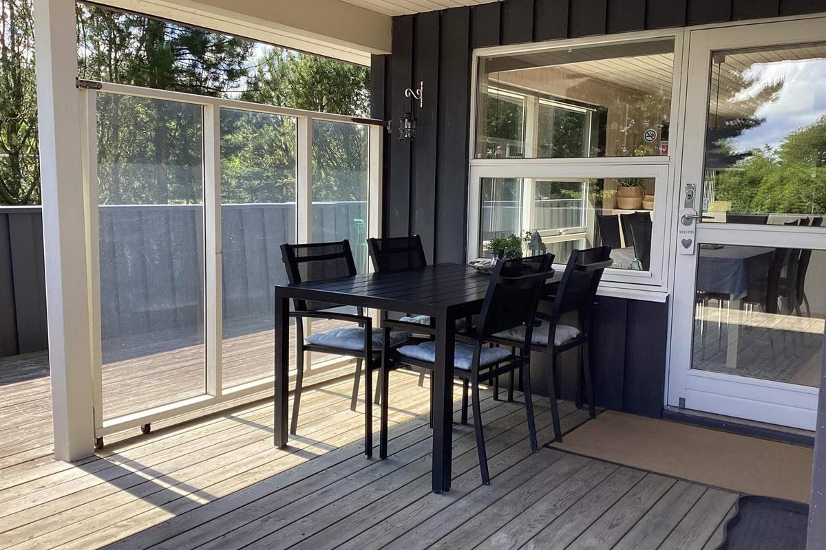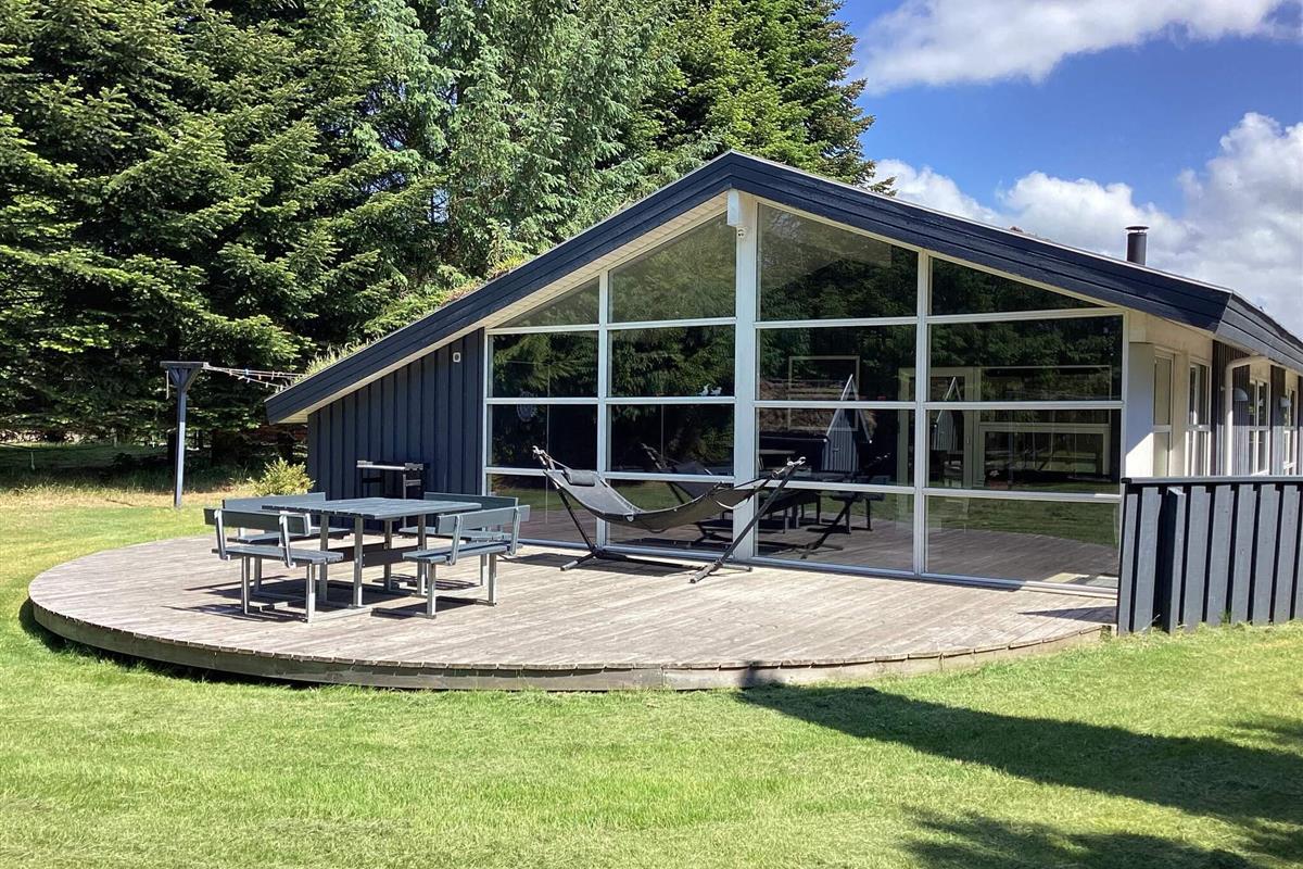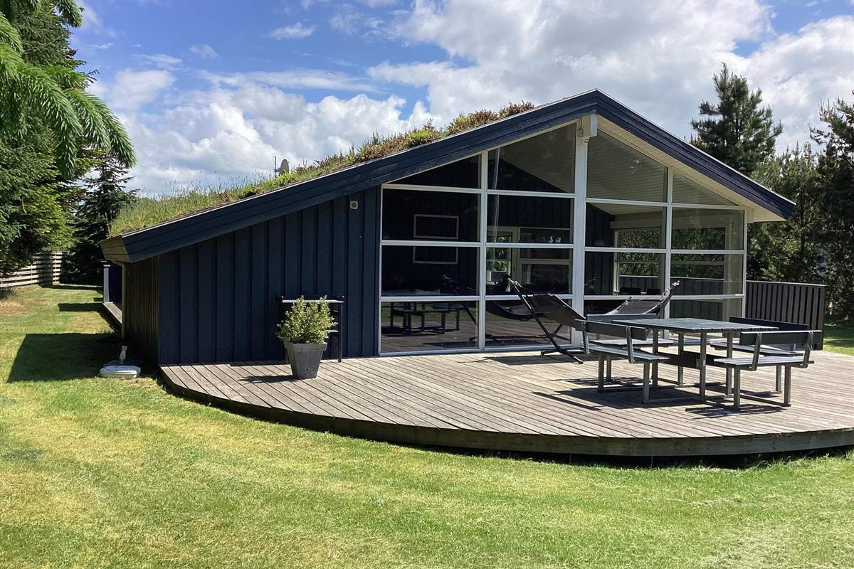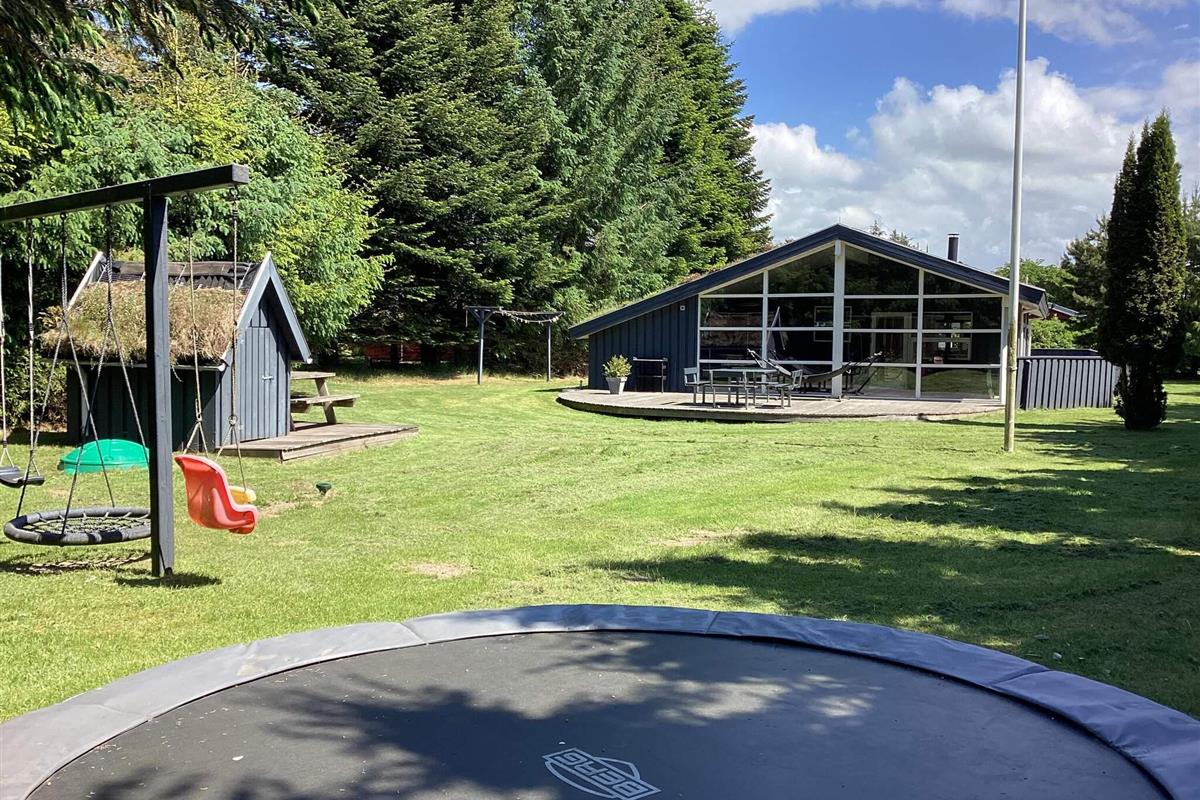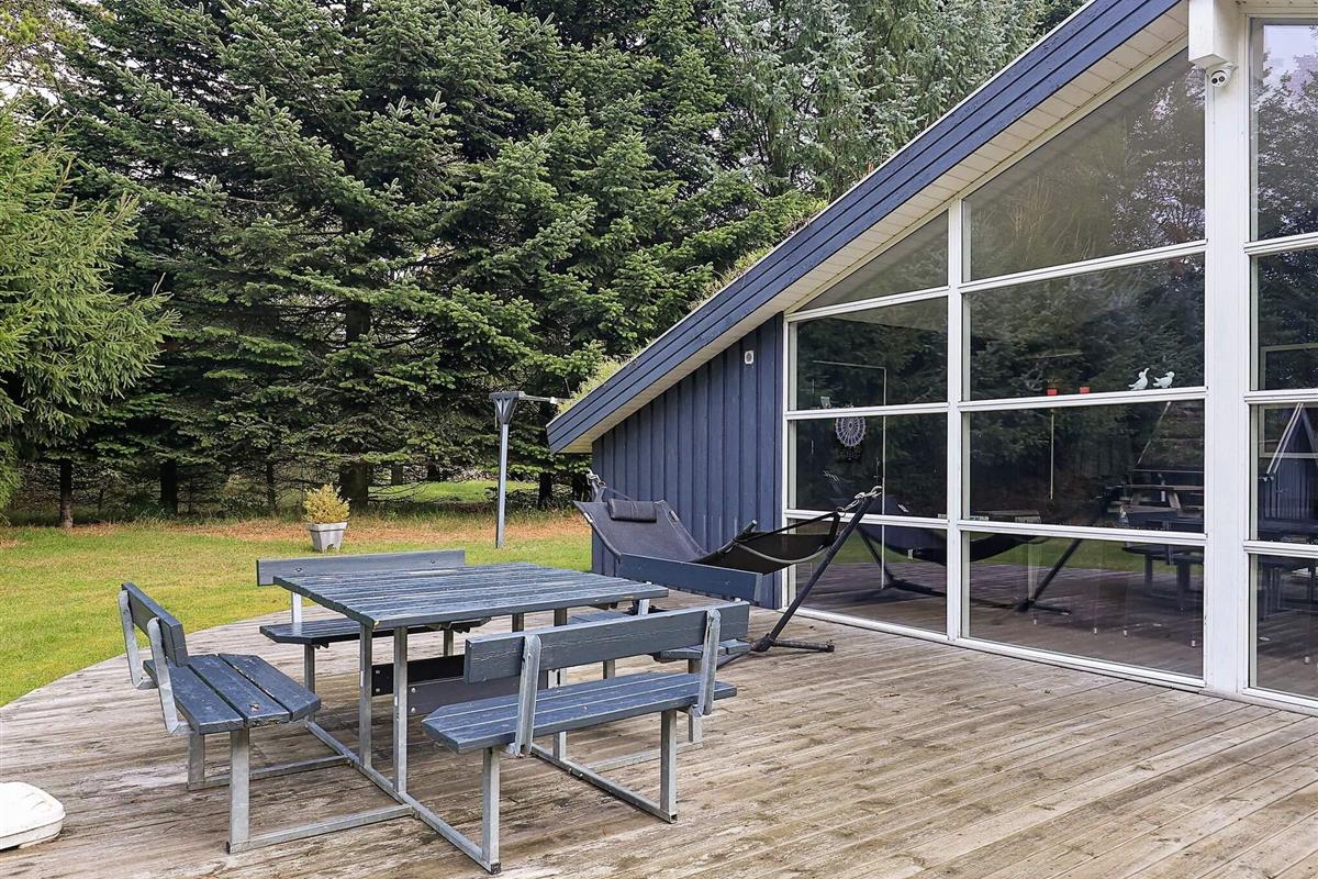 Geräumiges Ferienhaus in idyllischer Lage, ruhig am Ende einer Sackgasse in Hune bei Blokhus. Das Haus genießt eine herrliche Lage auf einem geschützten Rasengrundstück, umgeben von schützenden Bäumen, die eine private und ruhige Atmosphäre schaffen. Im Außenbereich finden Sie sowohl eine sonnige Holzterrasse als auch eine kleinere, überdachte Terrasse an einer Seite des Hauses, die viele Möglichkeiten zum Genießen der frischen Luft bietet. Der große Garten bietet Kindern viel Platz zum Spielen und Toben.