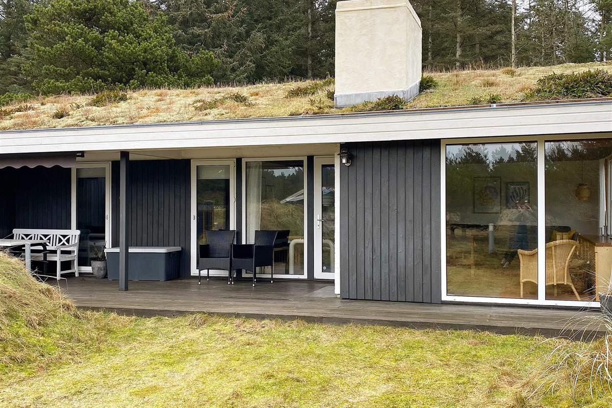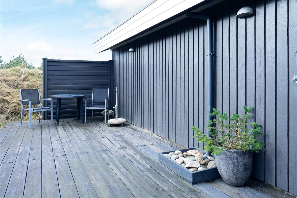 Rund um das Haus laden mehrere Holzterrassen dazu ein, je nach Tageszeit mit der Sonne zu wandern oder Schutz zu suchen. Die natürliche Umgebung und die private Lage laden zum Entspannen ein. Die nahegelegene Stadt und die Küste von Blokhus bieten zahlreiche Möglichkeiten für Aktivitäten, Restaurants und Erkundungen.