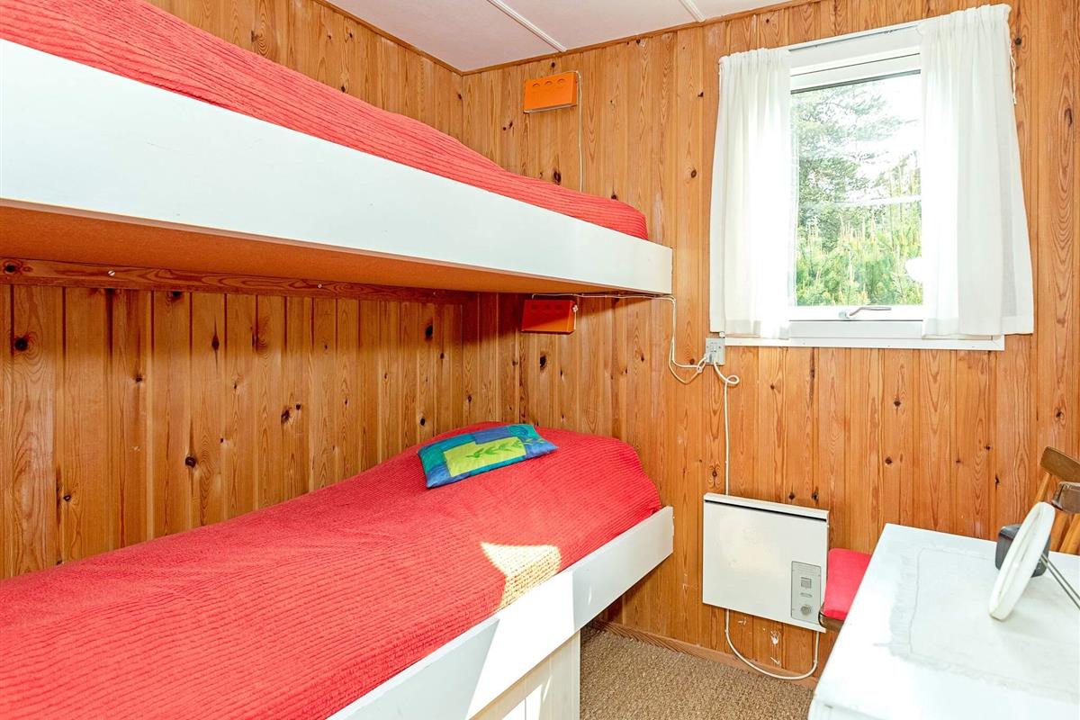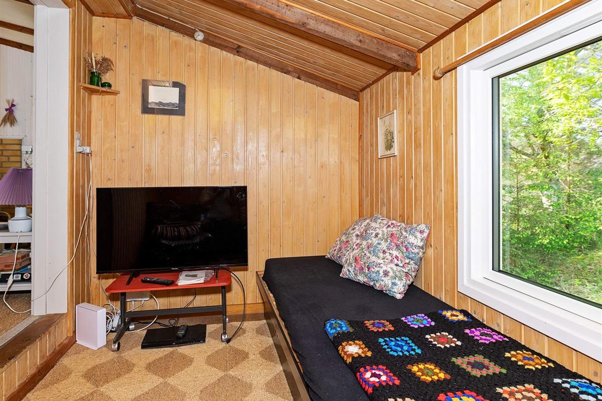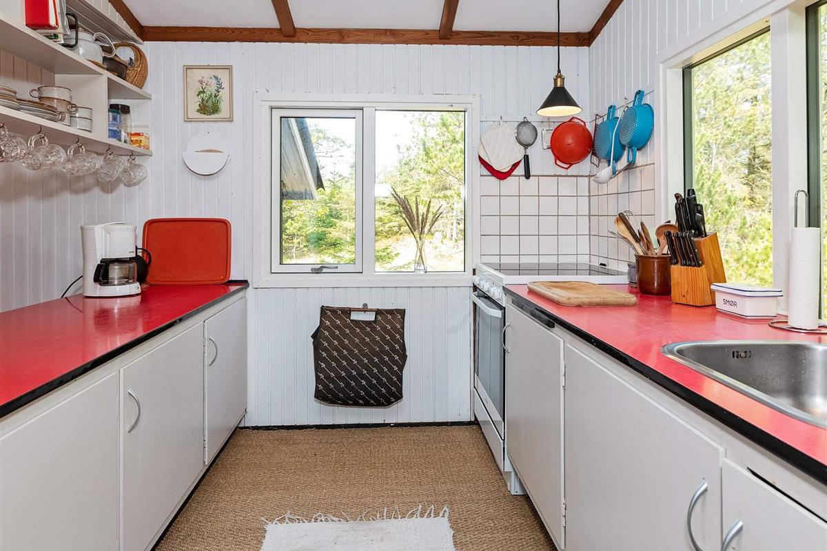 Das Ferienhaus bietet eine gemütliche, offene Wohnküche für das Familienleben mit einer offenen Schlafnische mit je einem Etagenbett in zwei abgetrennten Räumen und einem Bad. Eine einfache, aber komfortable Unterkunft, ideal für Familien oder Paare, die die Natur genießen möchten.